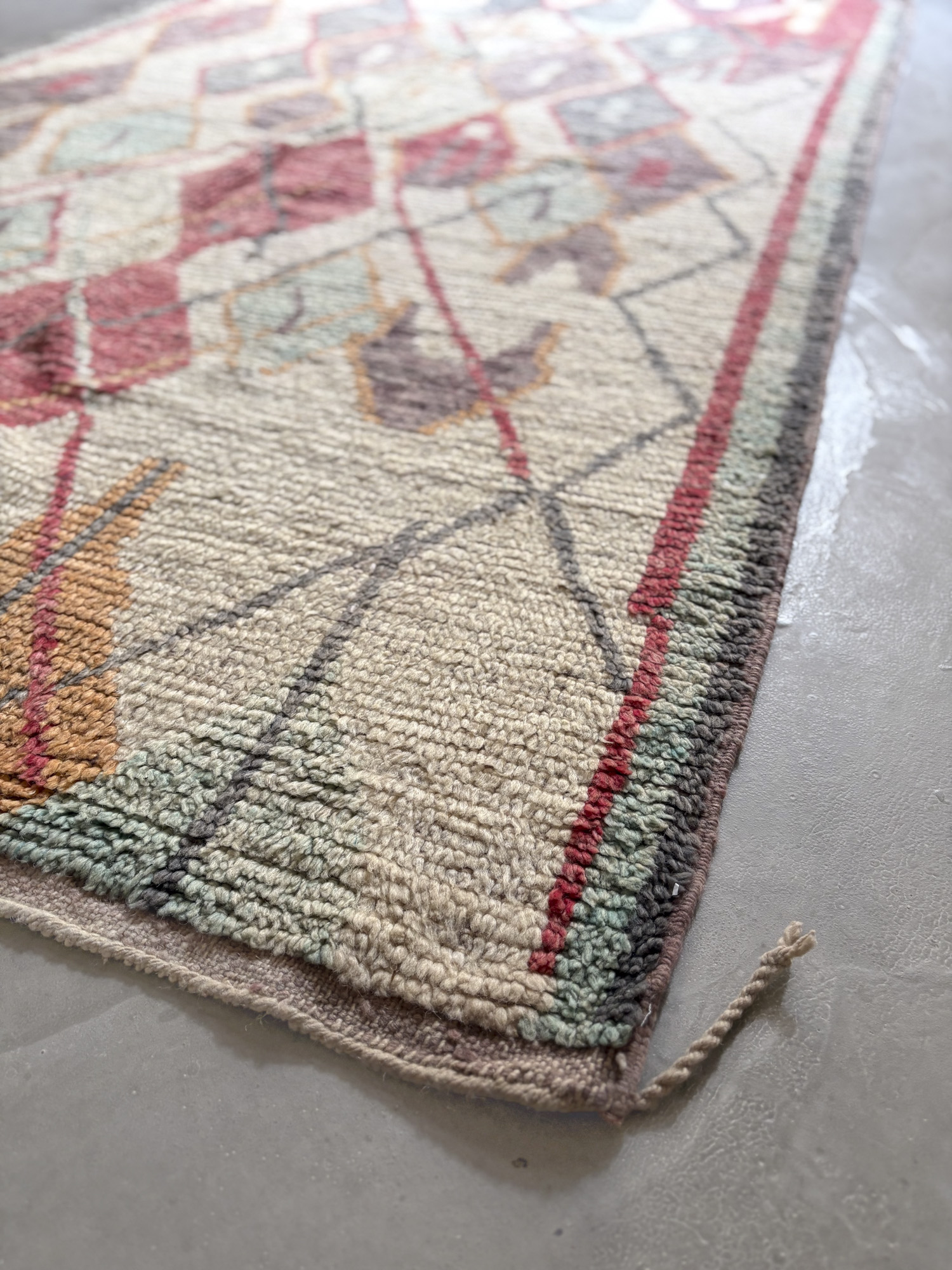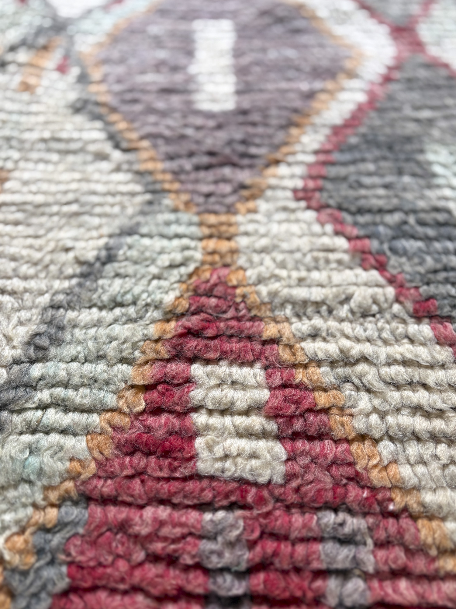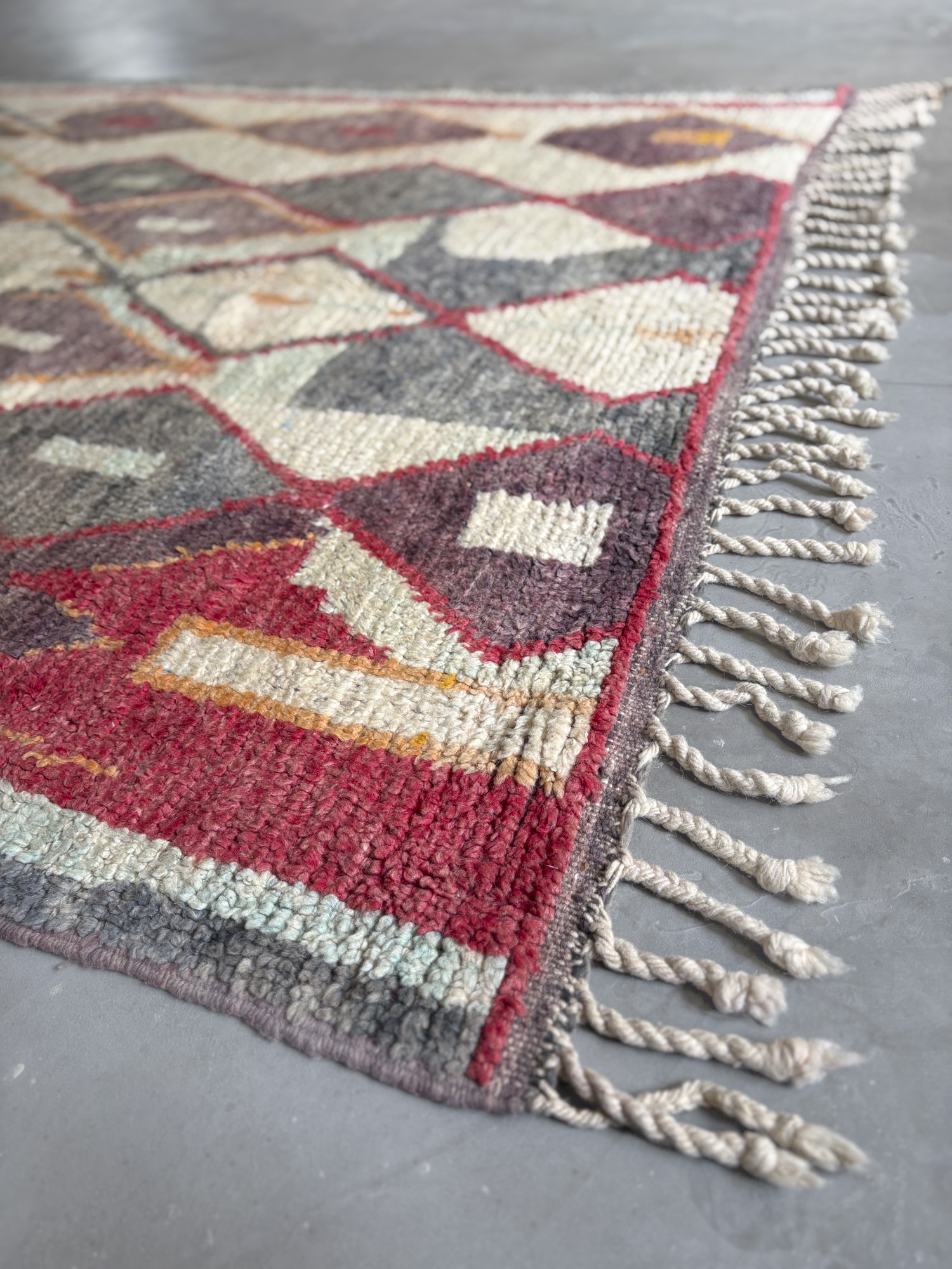 Se trata de alfombras realizadas hace algunos años dentro de la continuidad del tejido tradicional. Aunque no presentan el desgaste propio de las piezas vintage, conservan la libertad de composición, los colores intensos y el carácter espontáneo que definen estas alfombras.