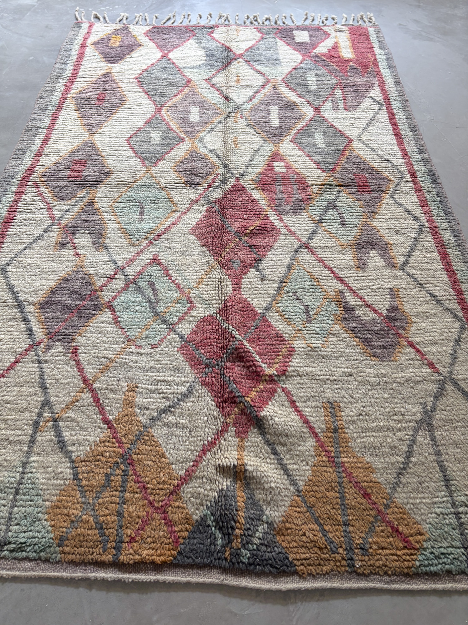 Esta alfombra forma parte de nuestra selección Archive, piezas tejidas a mano por artesanas amazigh siguiendo las técnicas tradicionales del Atlas.