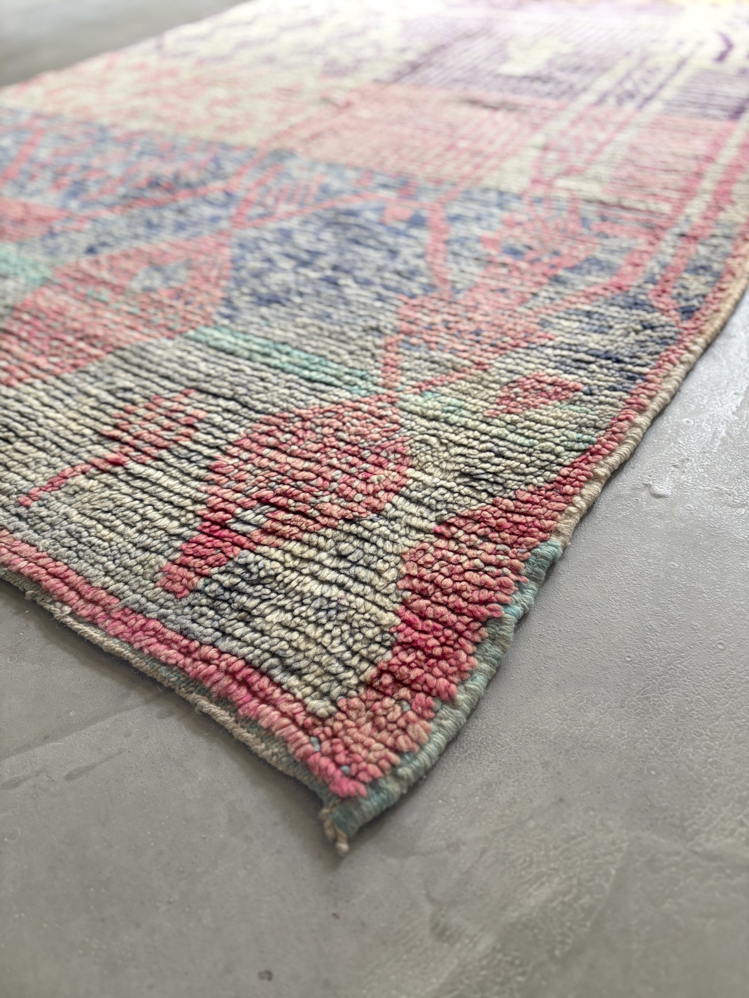 Esta alfombra forma parte de nuestra selección Archive, piezas tejidas a mano por artesanas amazigh siguiendo las técnicas tradicionales del Atlas.