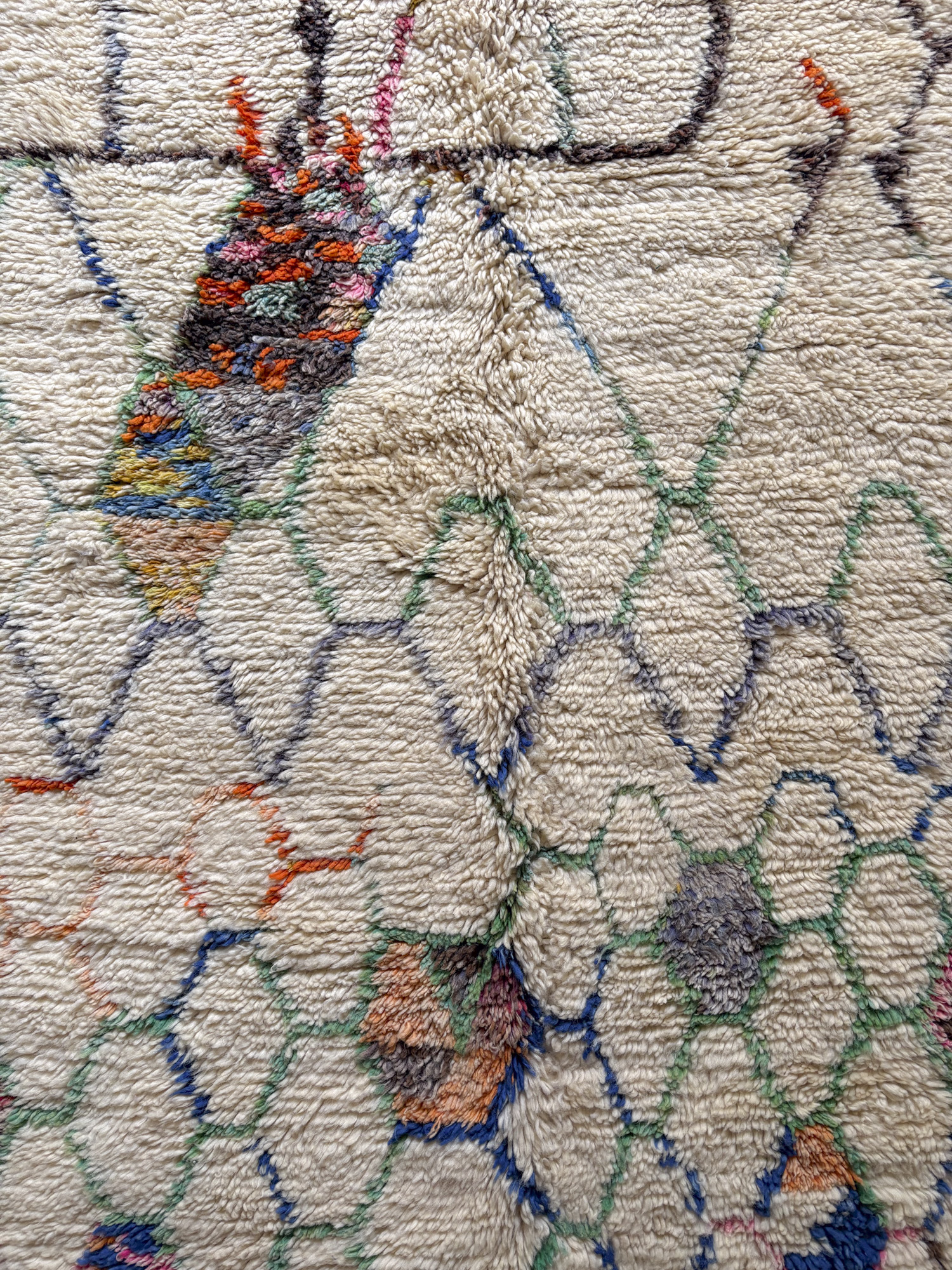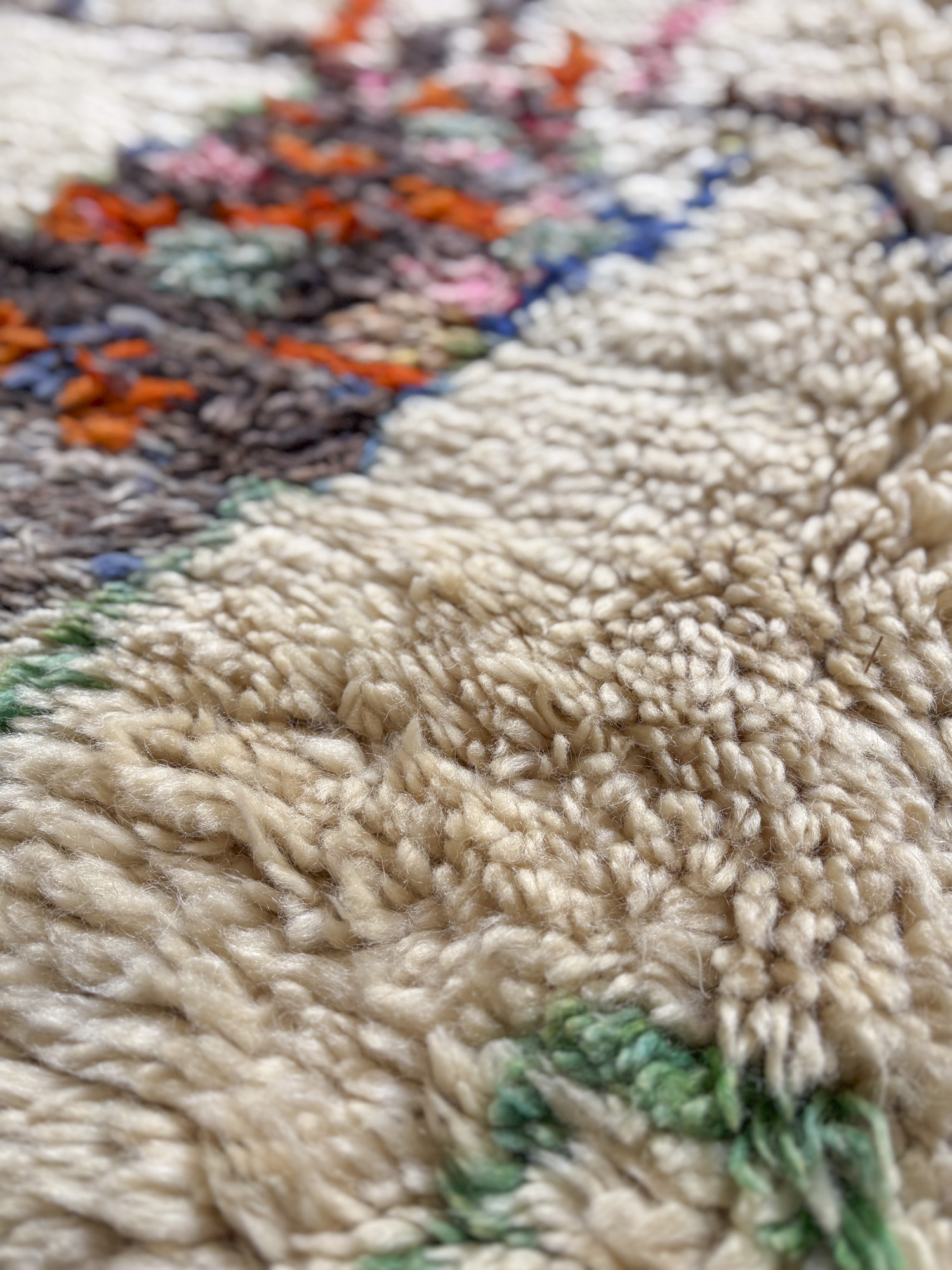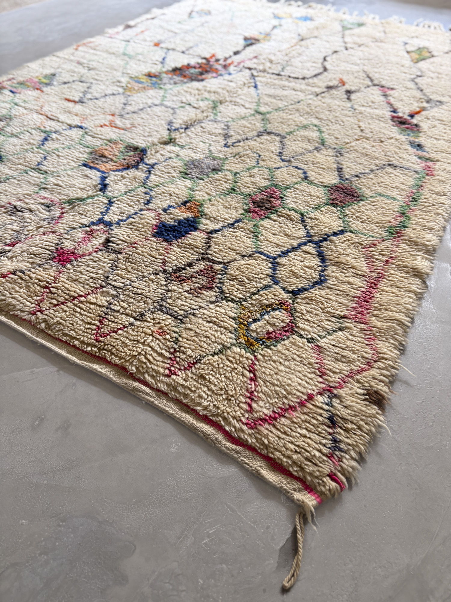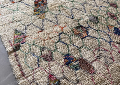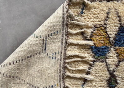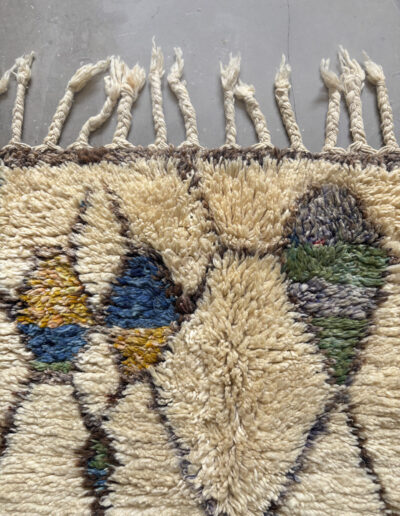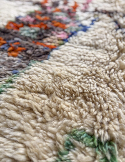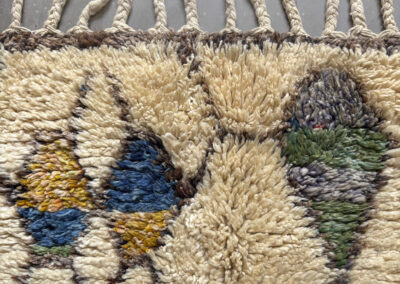 Esta alfombra está hecha a mano y es una pieza vintage, por lo que puede presentar irregularidades propias de su elaboración y del paso del tiempo. Las variaciones en el tejido, el grosor de la fibra o el color forman parte de su naturaleza artesanal y no deben considerarse defectos.
