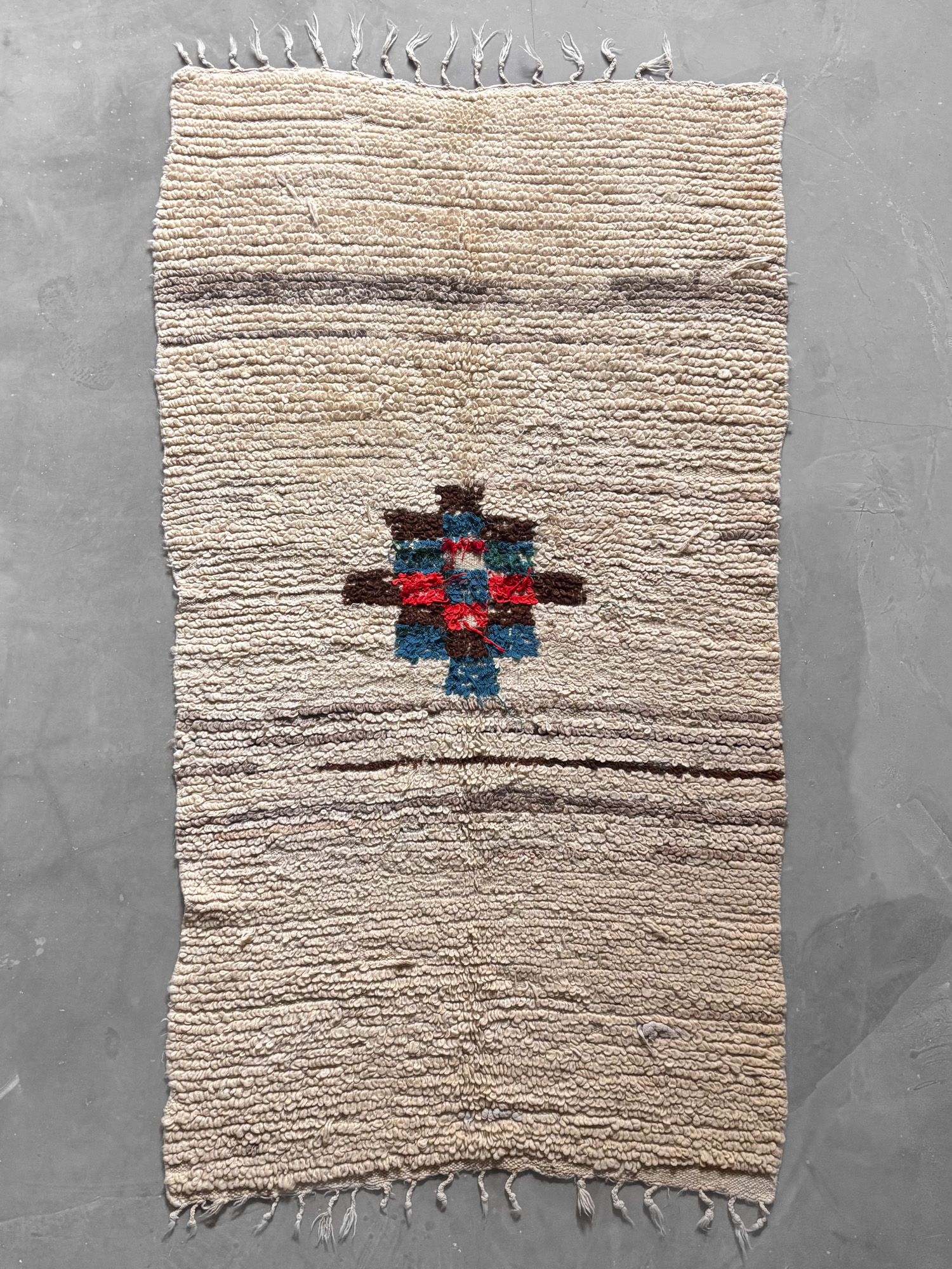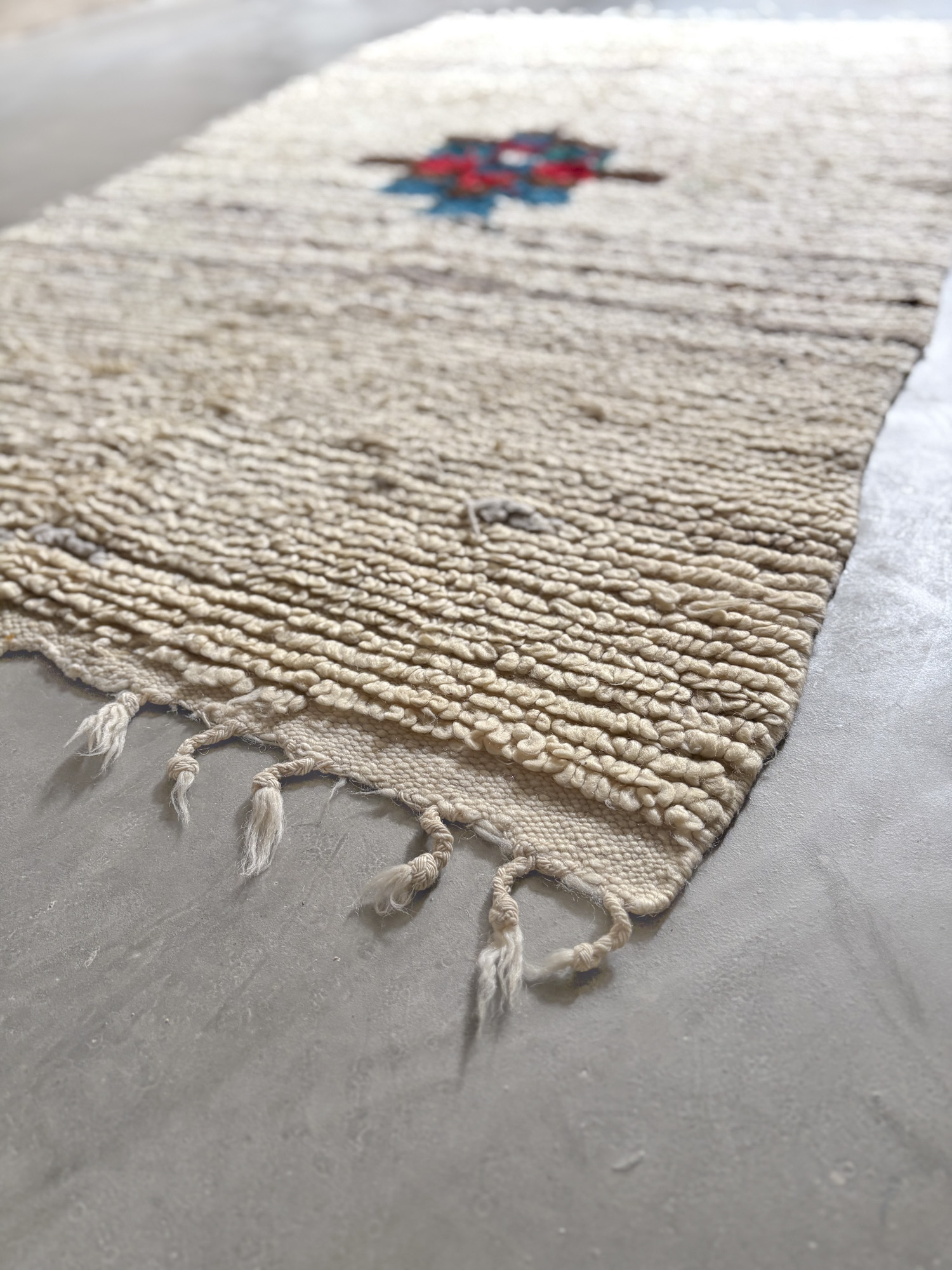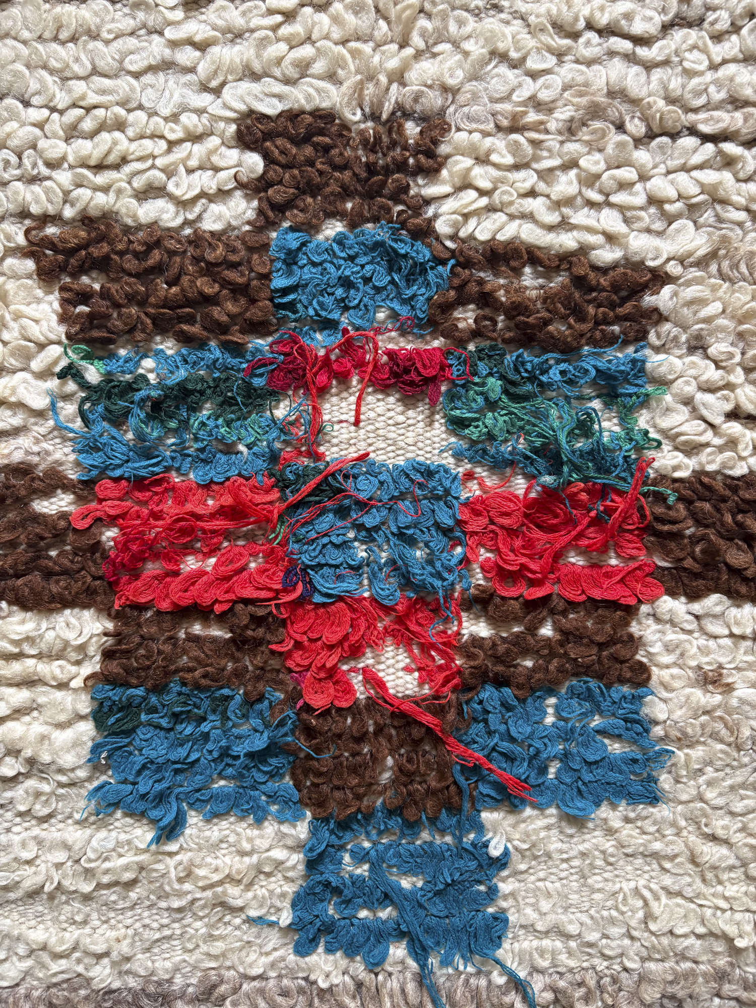 Esta alfombra está hecha a mano y es una pieza vintage, por lo que puede presentar irregularidades propias de su elaboración y del paso del tiempo. Las variaciones en el tejido, el grosor de la fibra o el color forman parte de su naturaleza artesanal y no deben considerarse defectos.