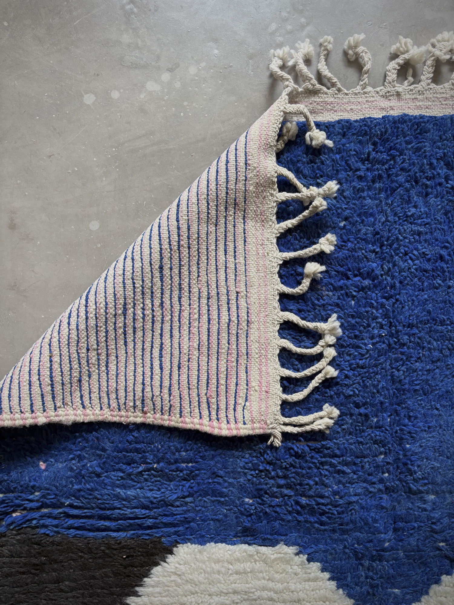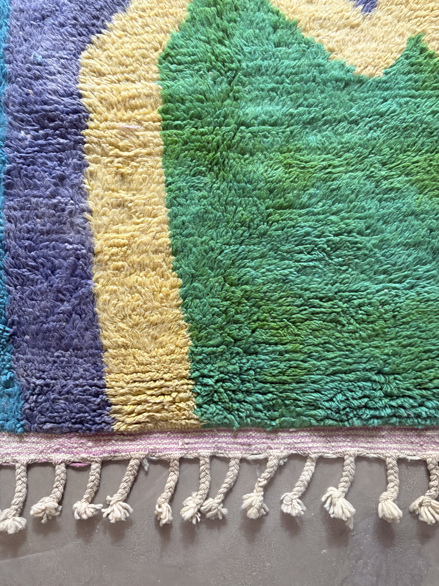 Esta alfombra está hecha a mano y es una pieza vintage, por lo que puede presentar irregularidades propias de su elaboración y del paso del tiempo. Las variaciones en el tejido, el grosor de la fibra o el color forman parte de su naturaleza artesanal y no deben considerarse defectos.