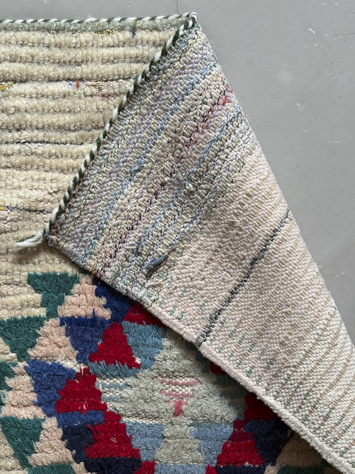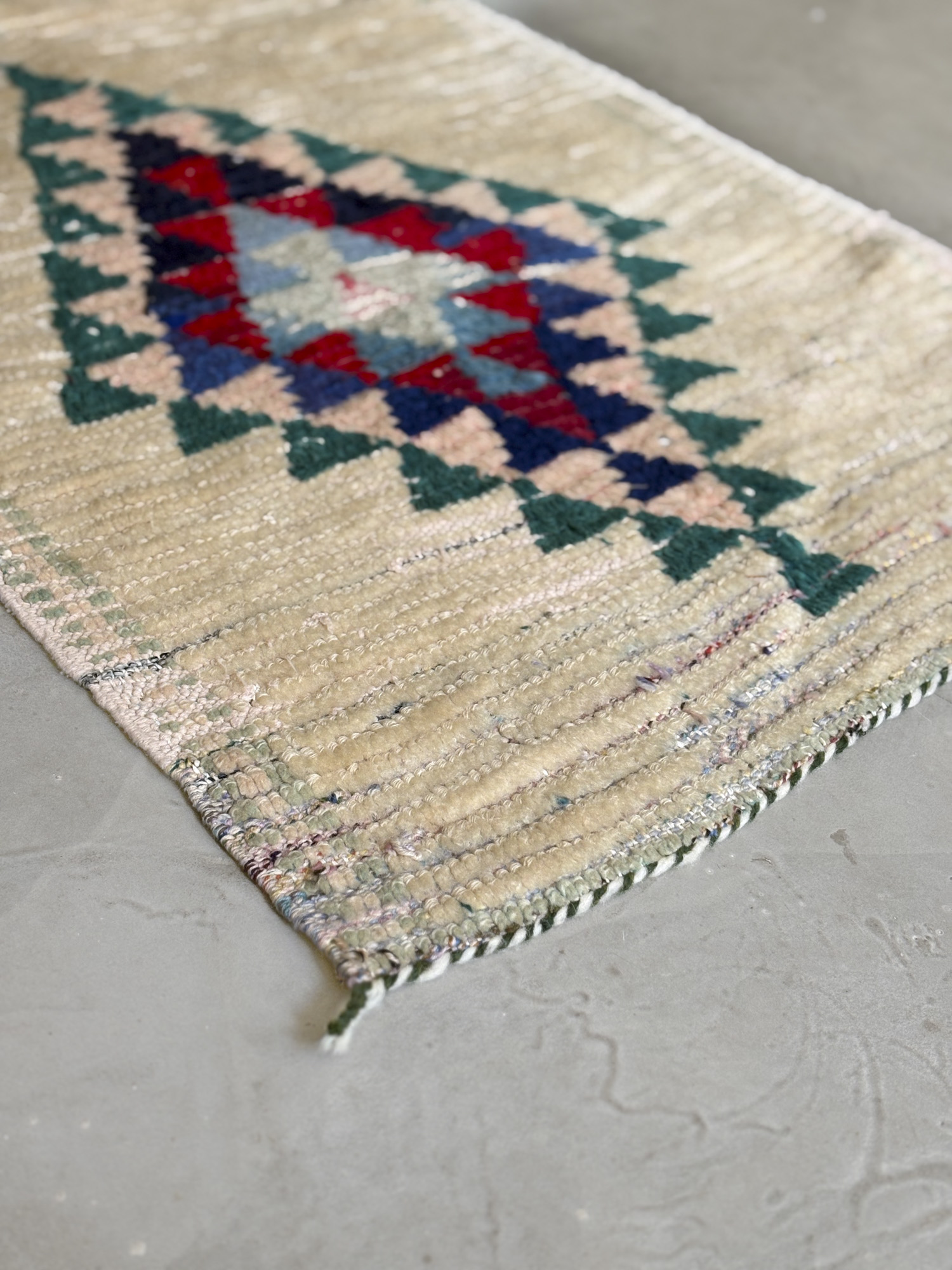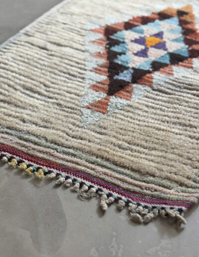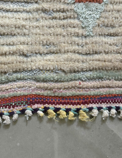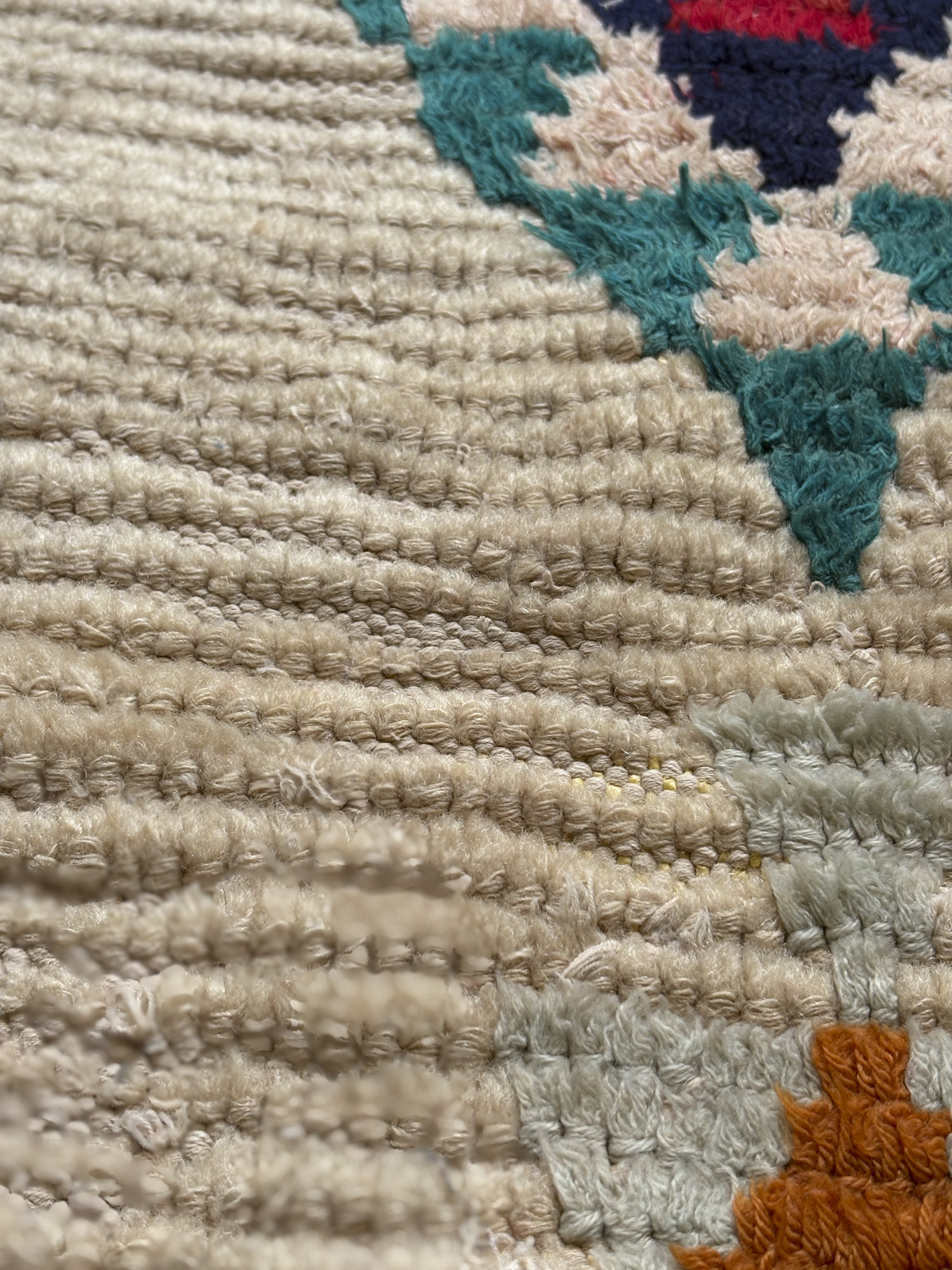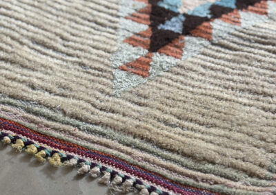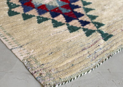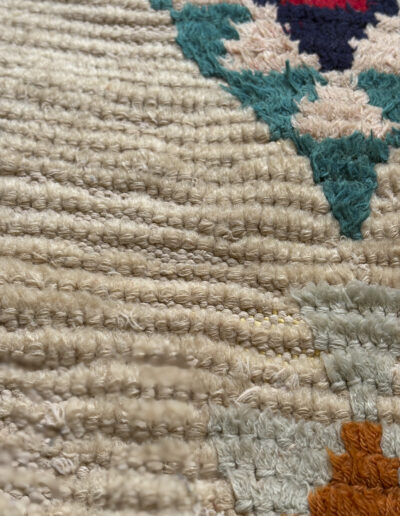Esta alfombra está hecha a mano y es una pieza vintage, por lo que puede presentar irregularidades propias de su elaboración y del paso del tiempo. Las variaciones en el tejido, el grosor de la fibra o el color forman parte de su naturaleza artesanal y no deben considerarse defectos.