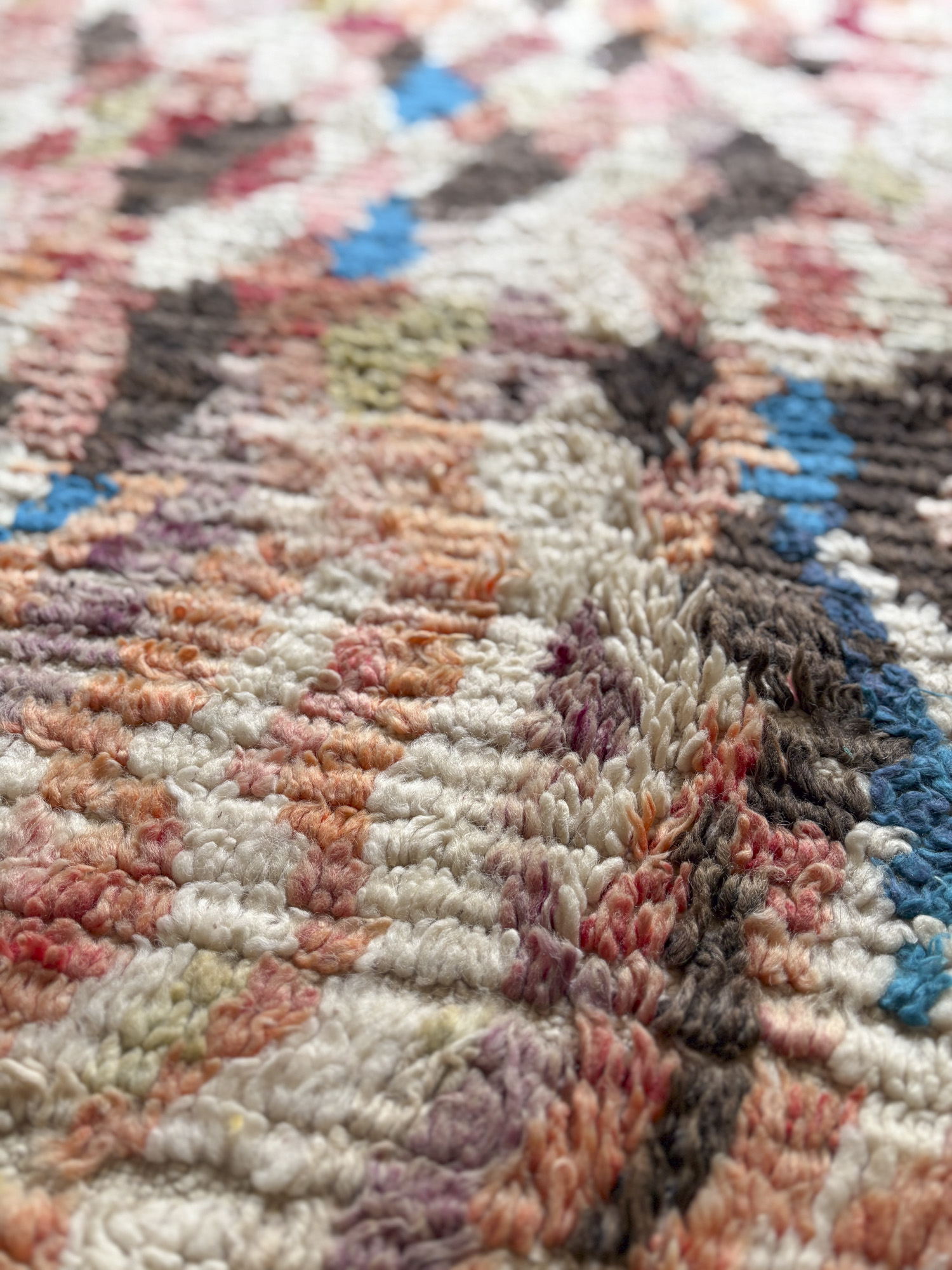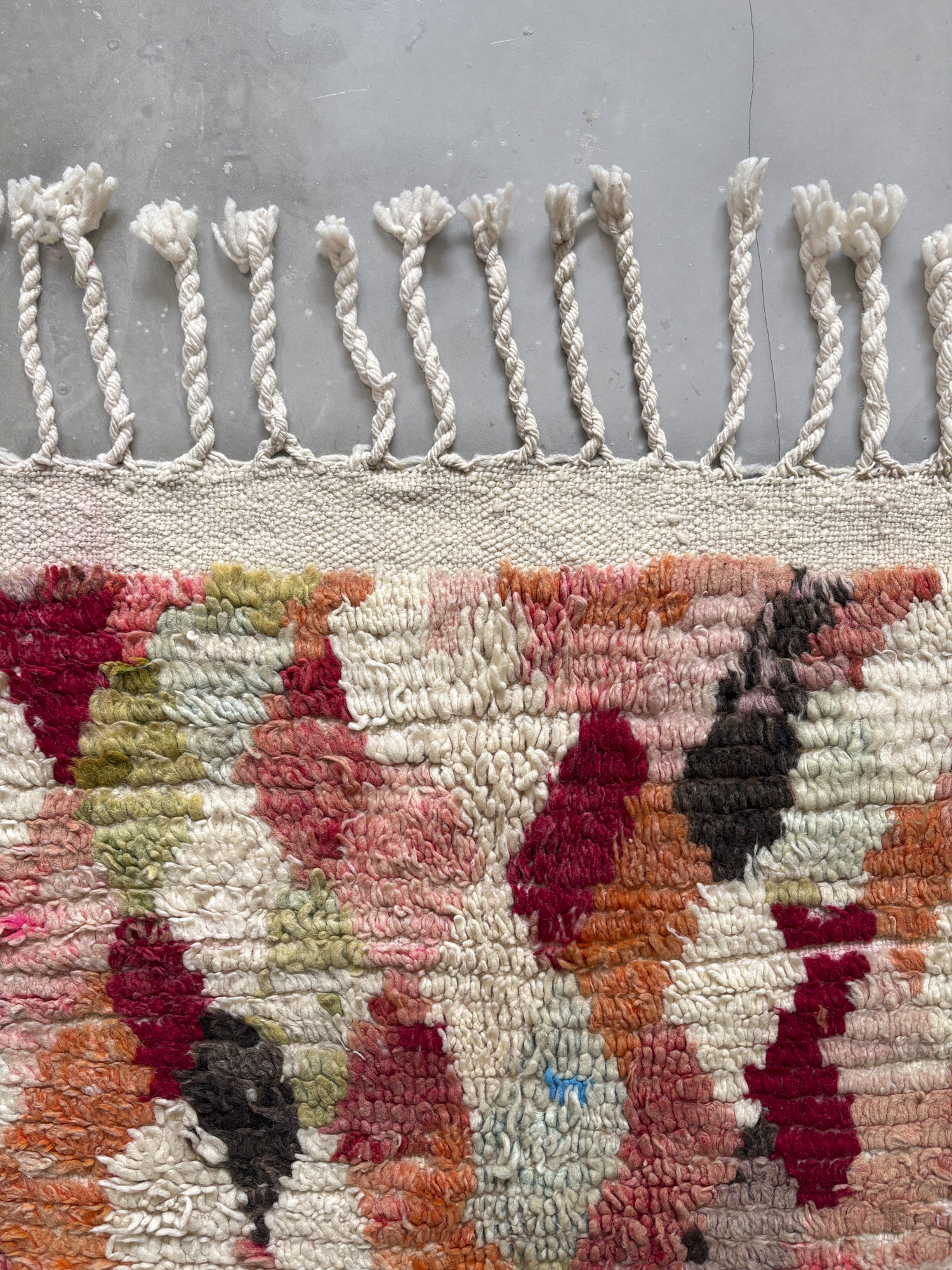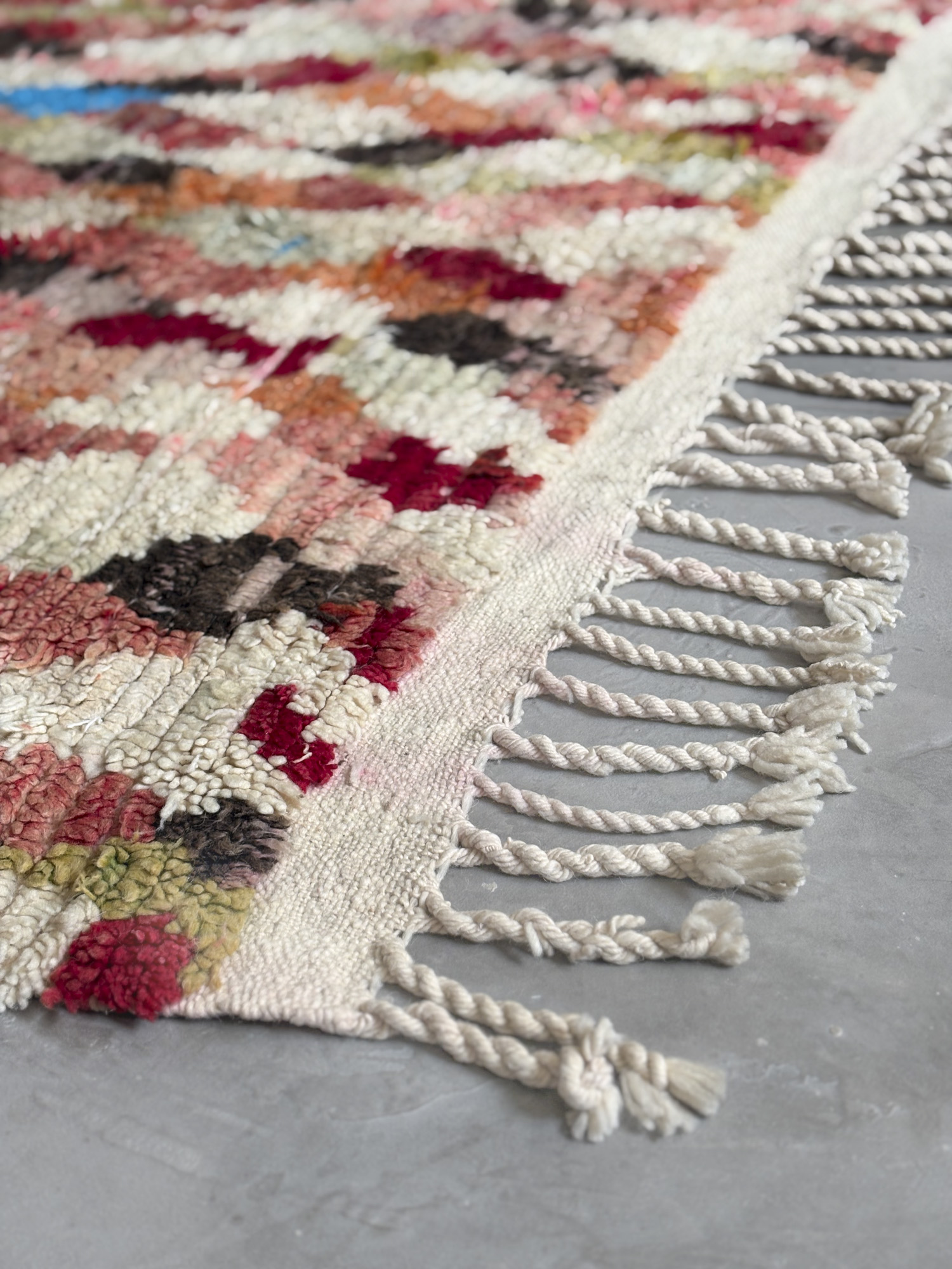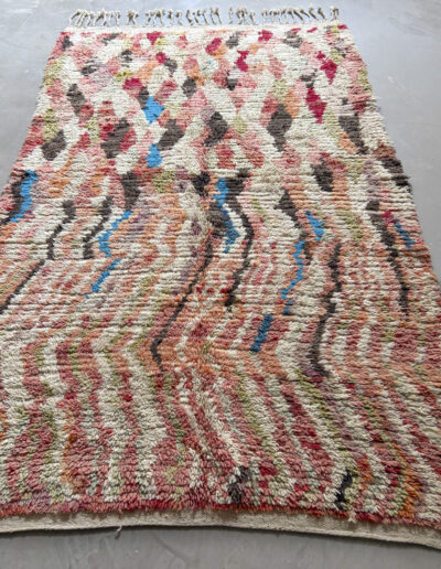 Se trata de alfombras realizadas hace algunos años dentro de la continuidad del tejido tradicional. Aunque no presentan el desgaste propio de las piezas vintage, conservan la libertad de composición, los colores intensos y el carácter espontáneo que definen estas alfombras.