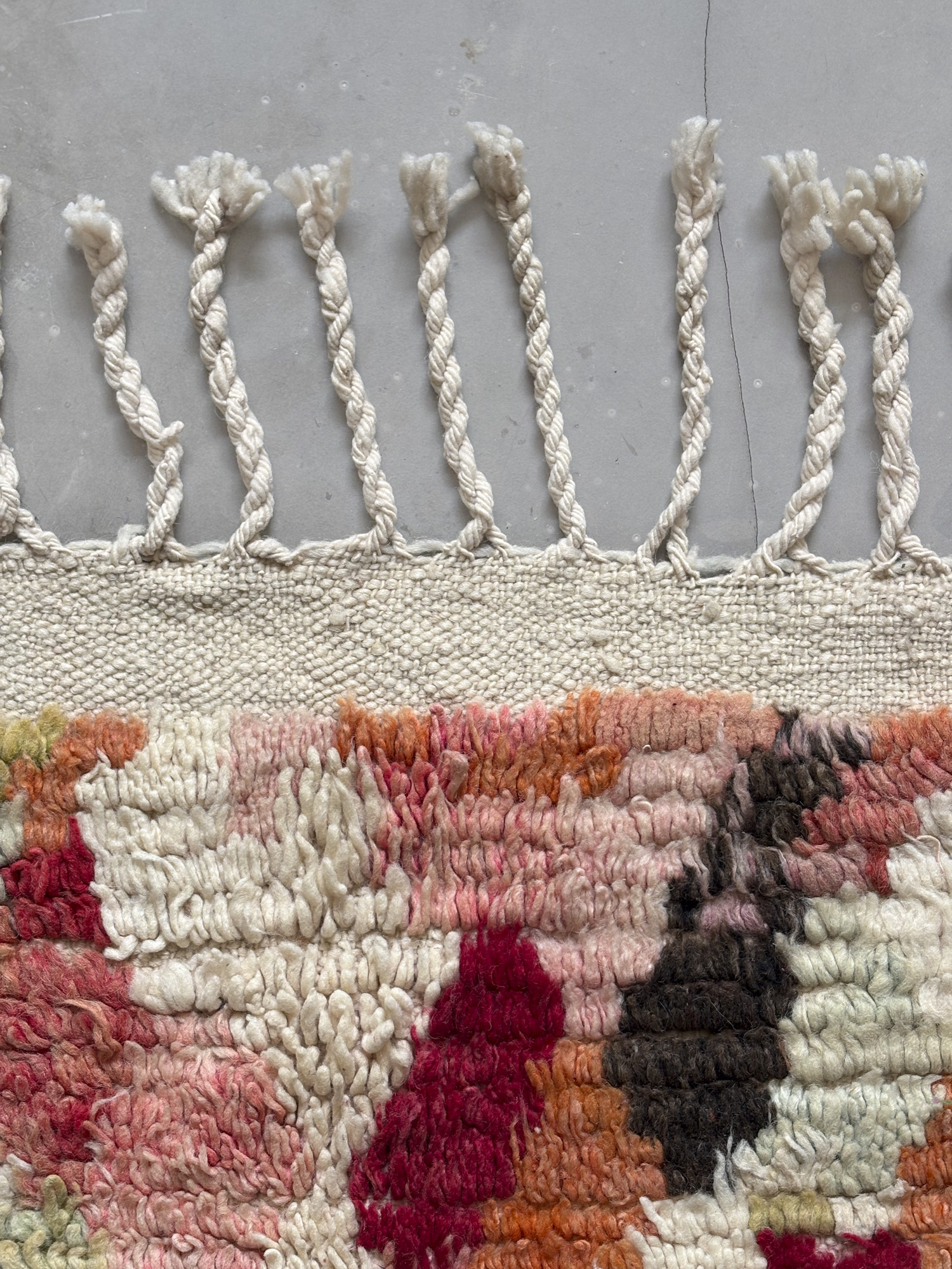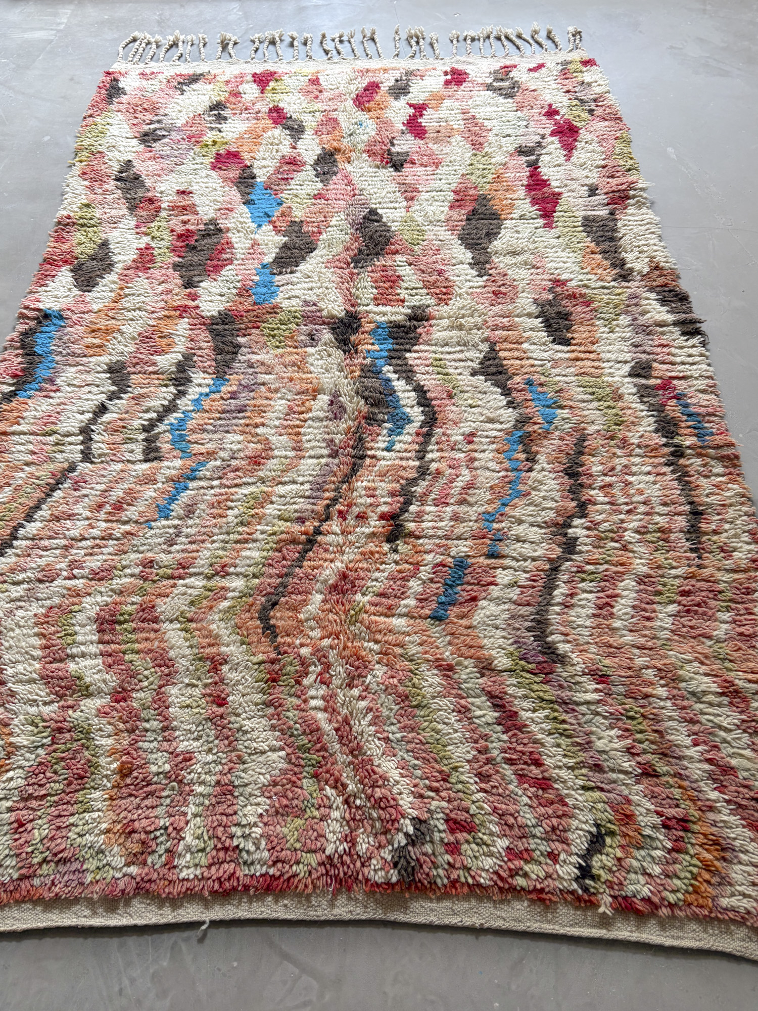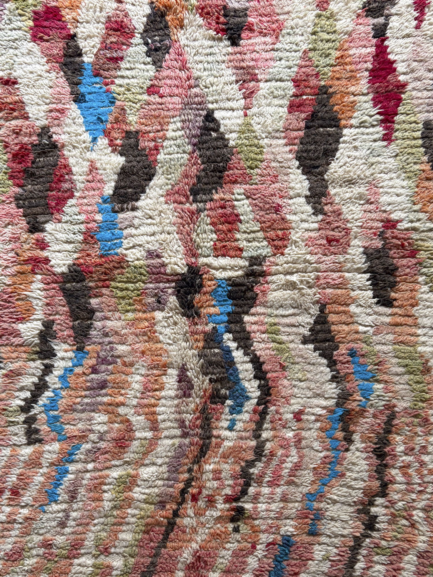 Se trata de alfombras realizadas hace algunos años dentro de la continuidad del tejido tradicional. Aunque no presentan el desgaste propio de las piezas vintage, conservan la libertad de composición, los colores intensos y el carácter espontáneo que definen estas alfombras.