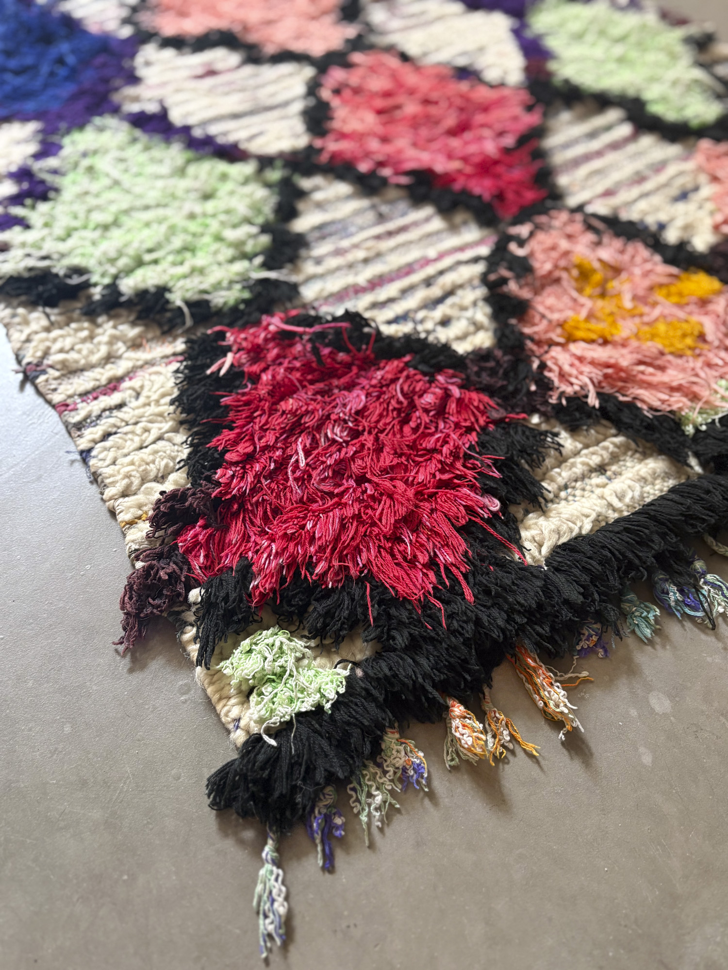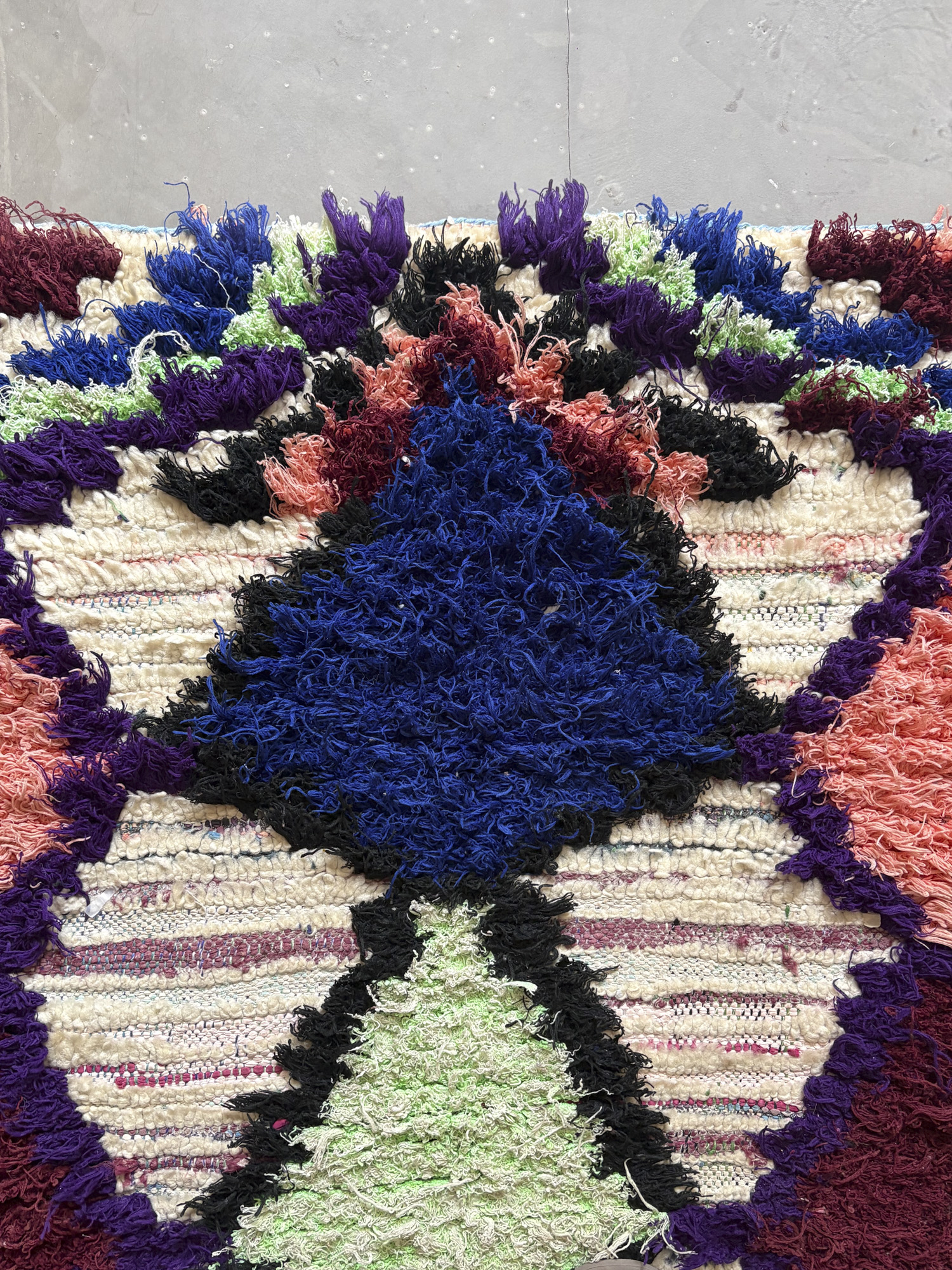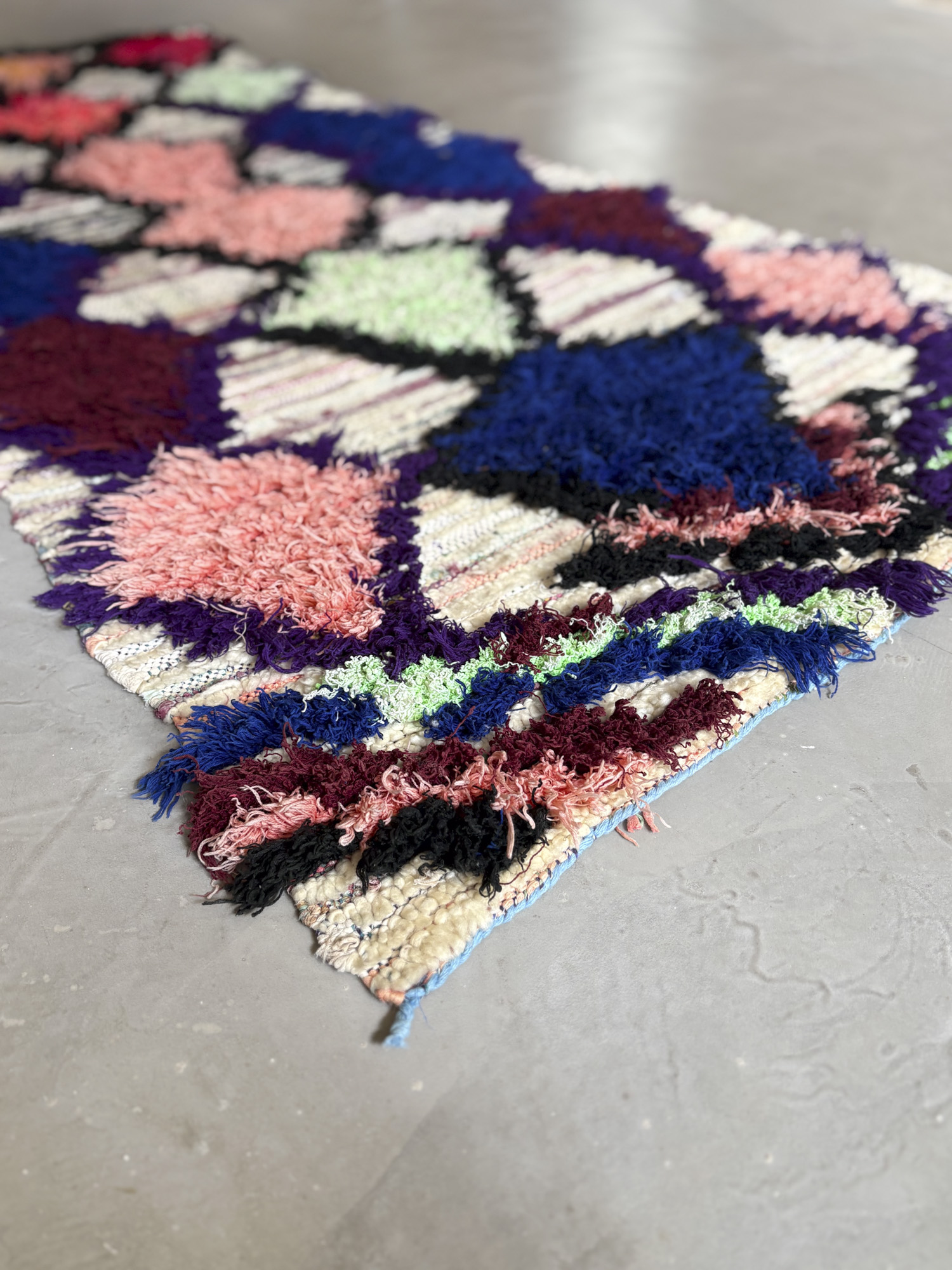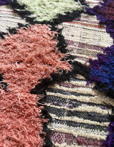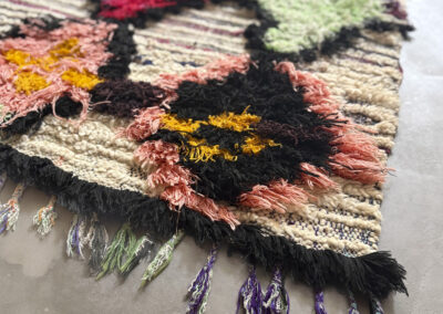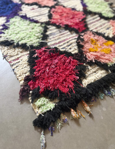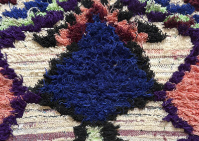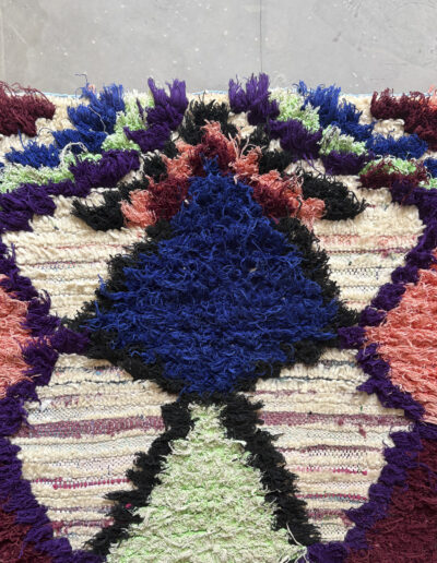 Esta alfombra está hecha a mano y es una pieza vintage, por lo que puede presentar irregularidades propias de su elaboración y del paso del tiempo. Las variaciones en el tejido, el grosor de la fibra o el color forman parte de su naturaleza artesanal y no deben considerarse defectos.