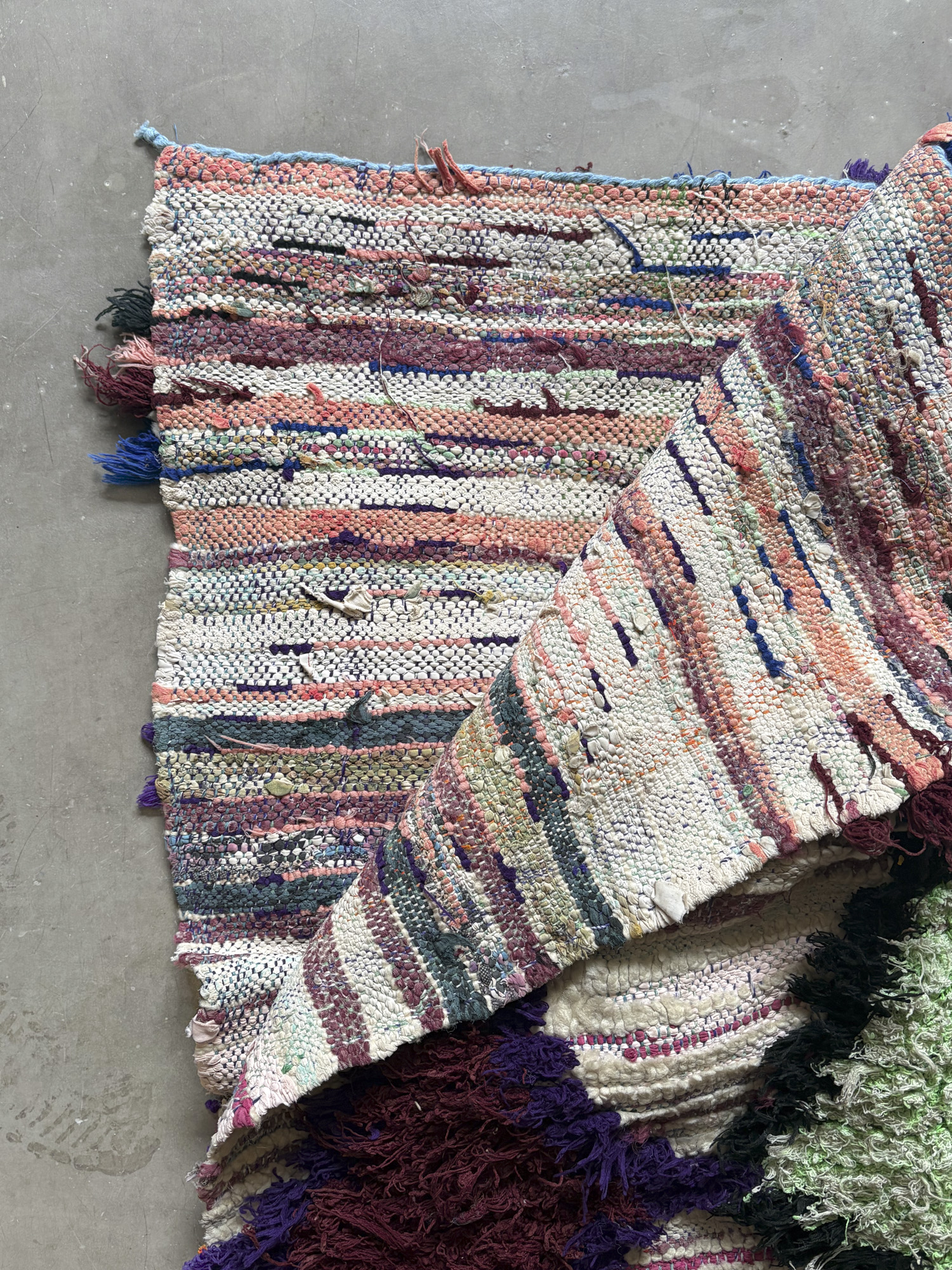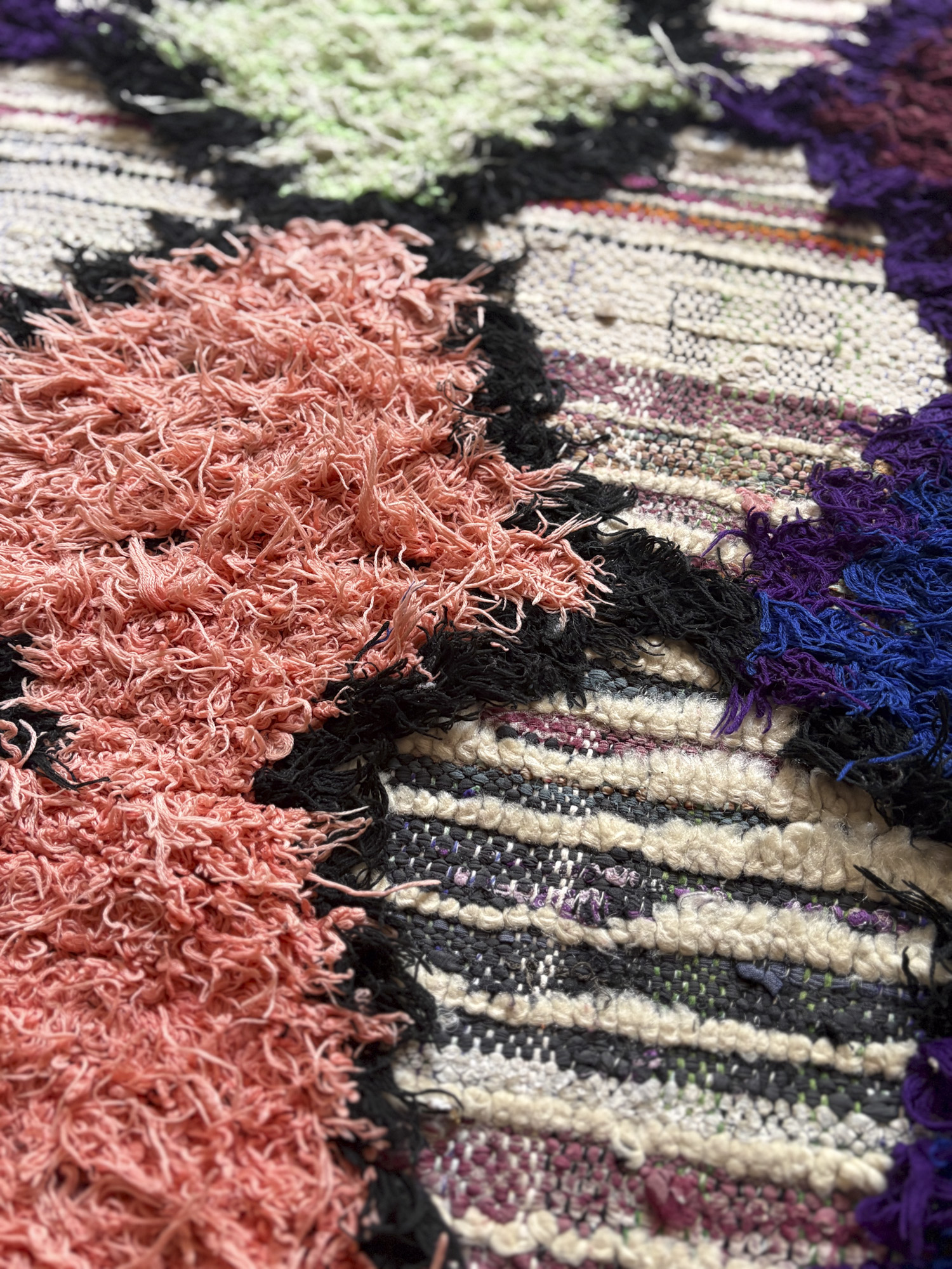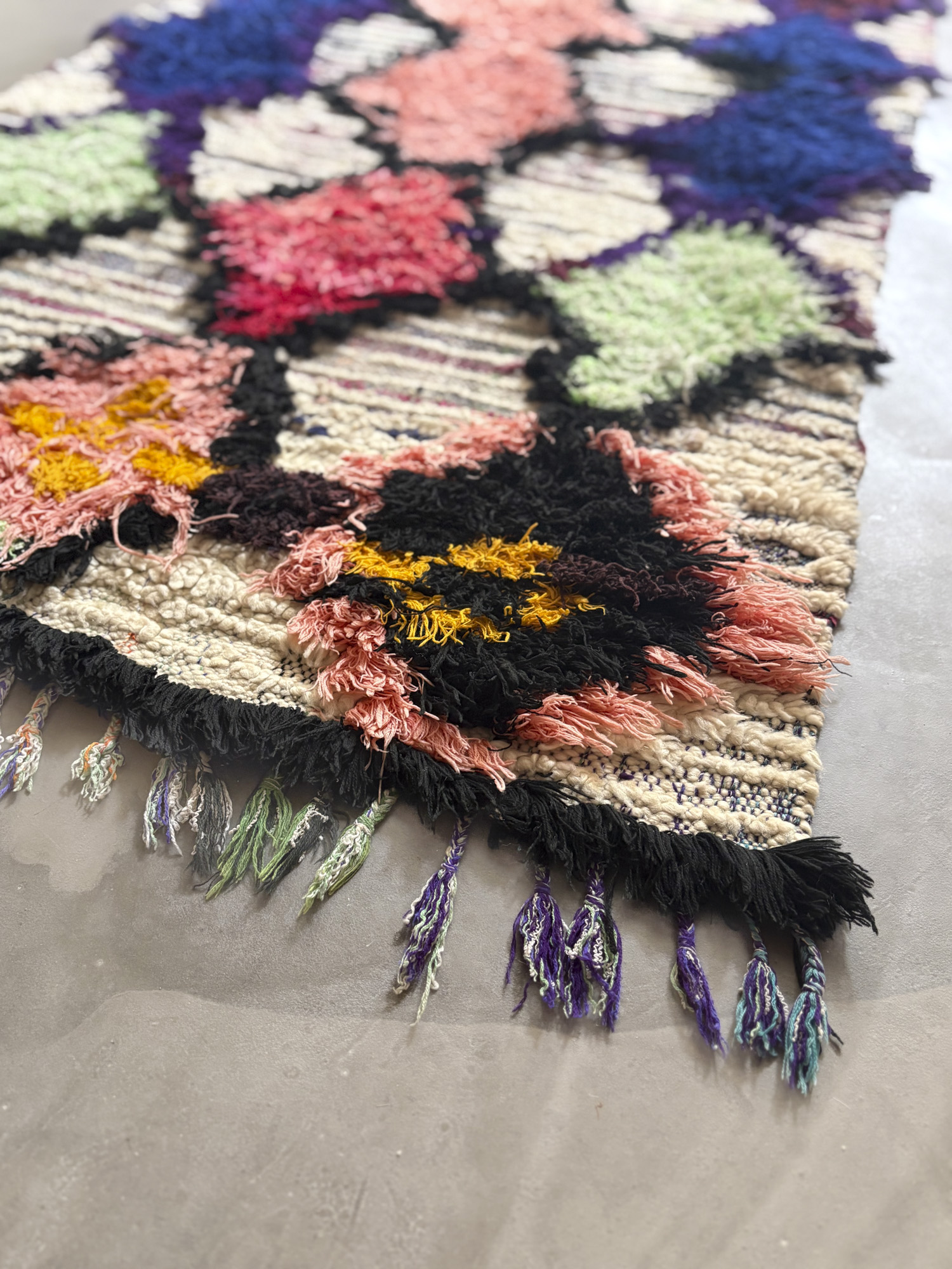 Esta alfombra está hecha a mano y es una pieza vintage, por lo que puede presentar irregularidades propias de su elaboración y del paso del tiempo. Las variaciones en el tejido, el grosor de la fibra o el color forman parte de su naturaleza artesanal y no deben considerarse defectos.