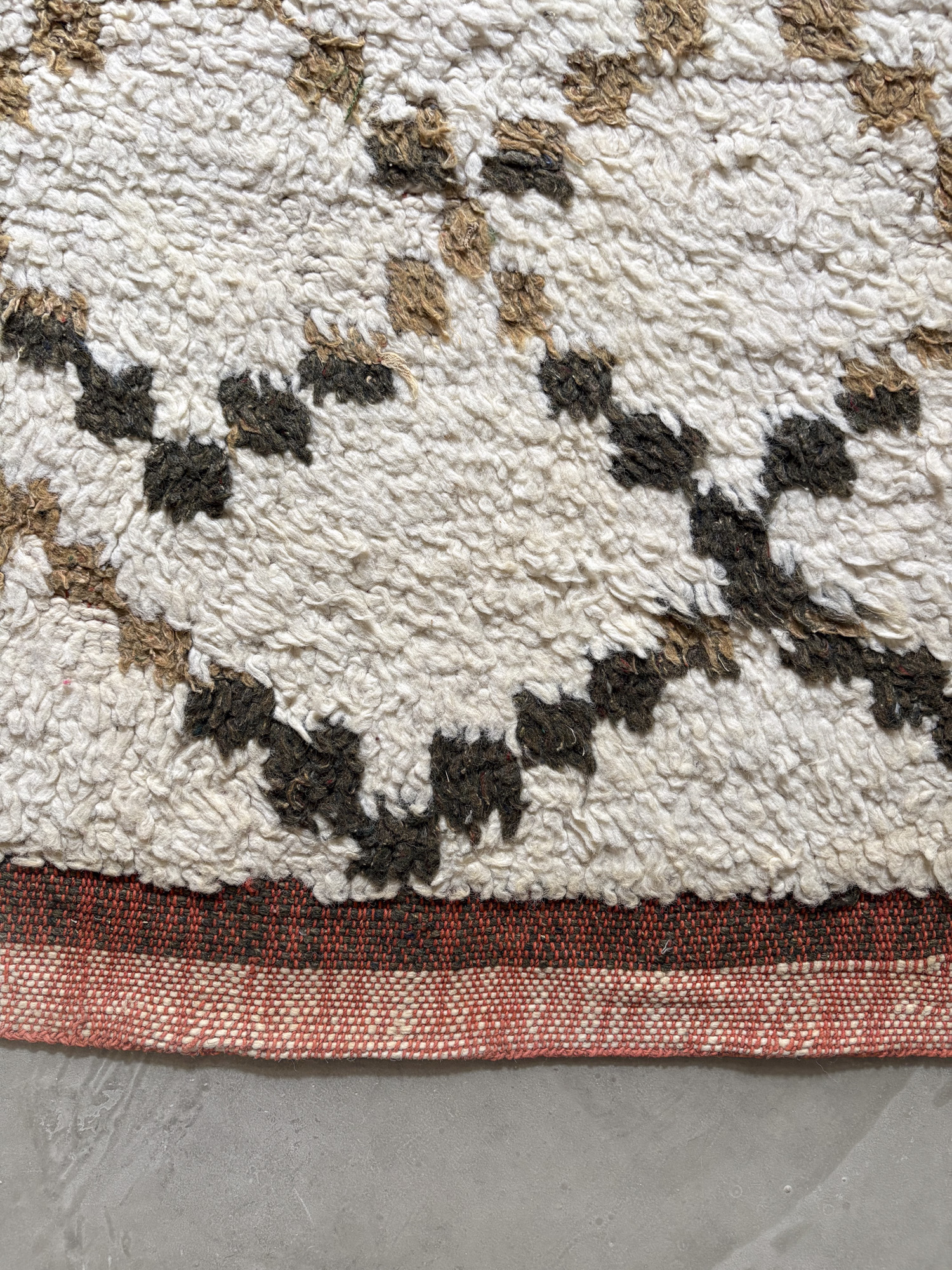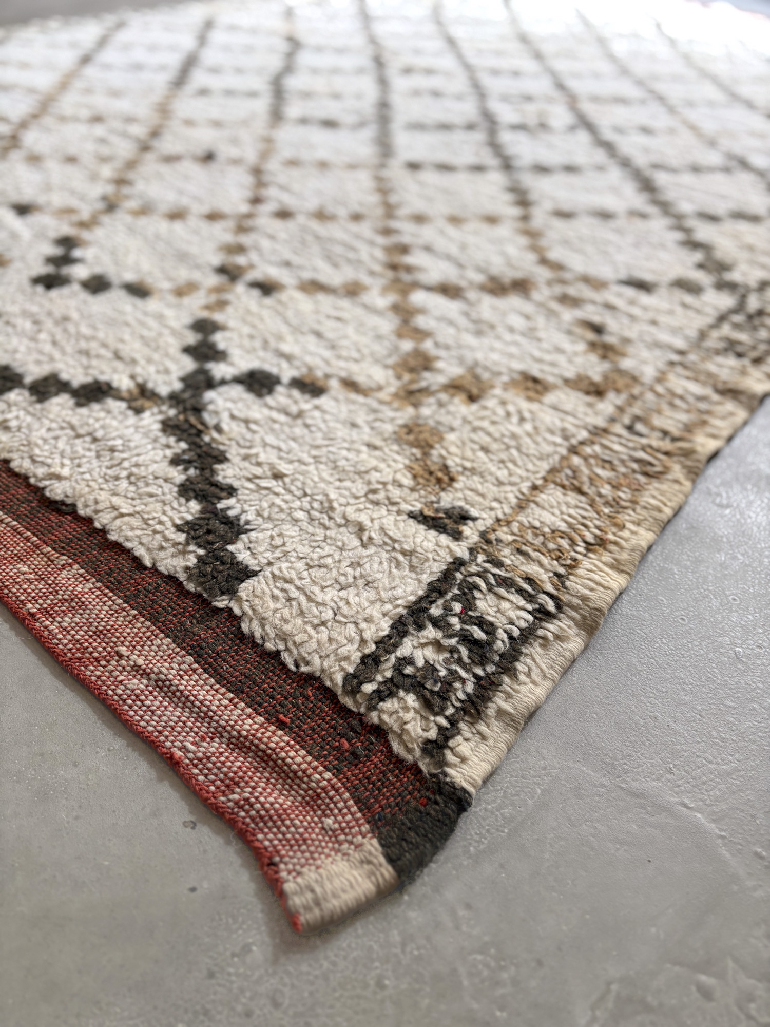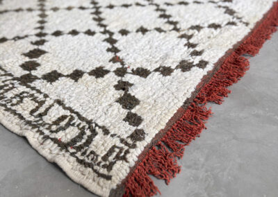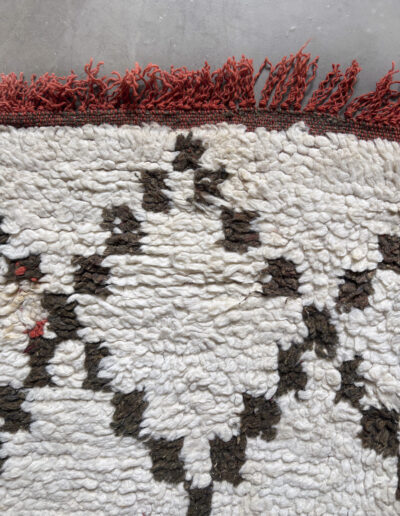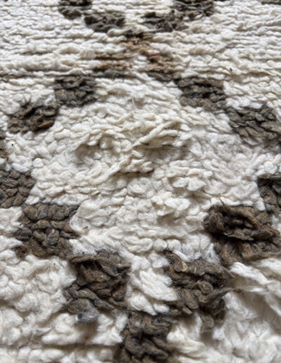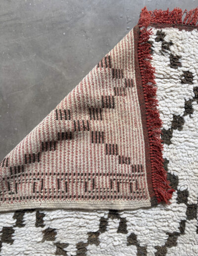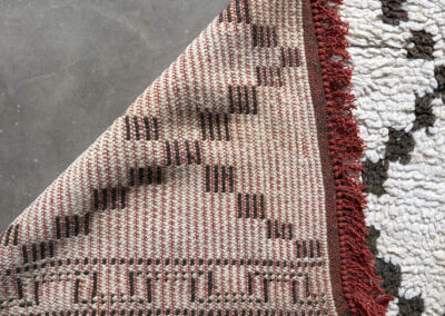 Esta alfombra está hecha a mano y es una pieza vintage, por lo que puede presentar irregularidades propias de su elaboración y del paso del tiempo. Las variaciones en el tejido, el grosor de la fibra o el color forman parte de su naturaleza artesanal y no deben considerarse defectos.