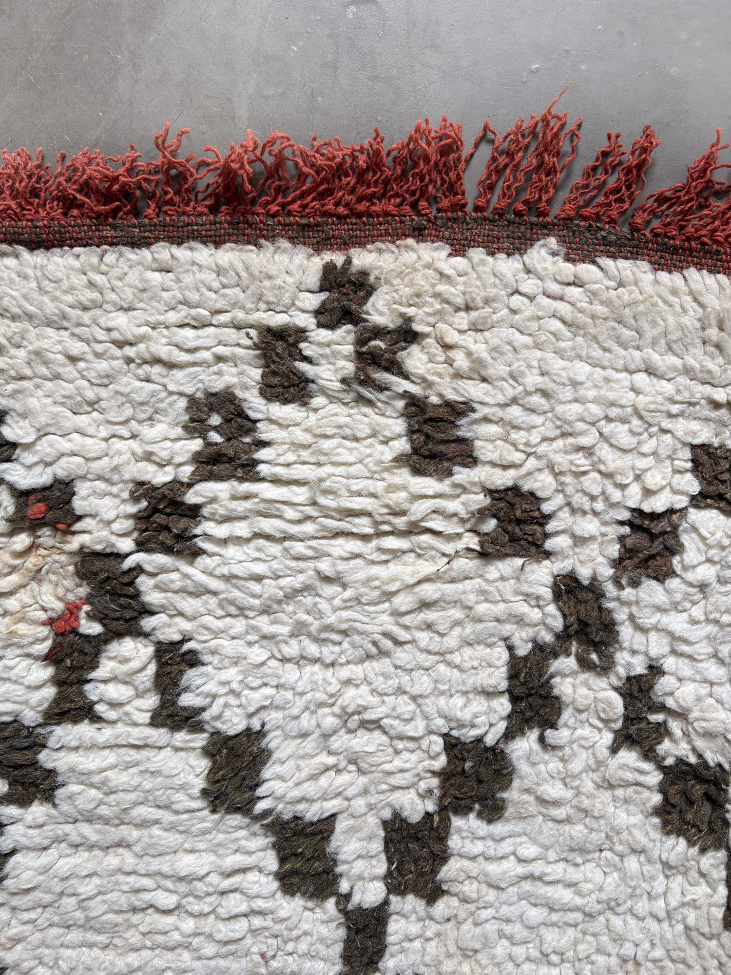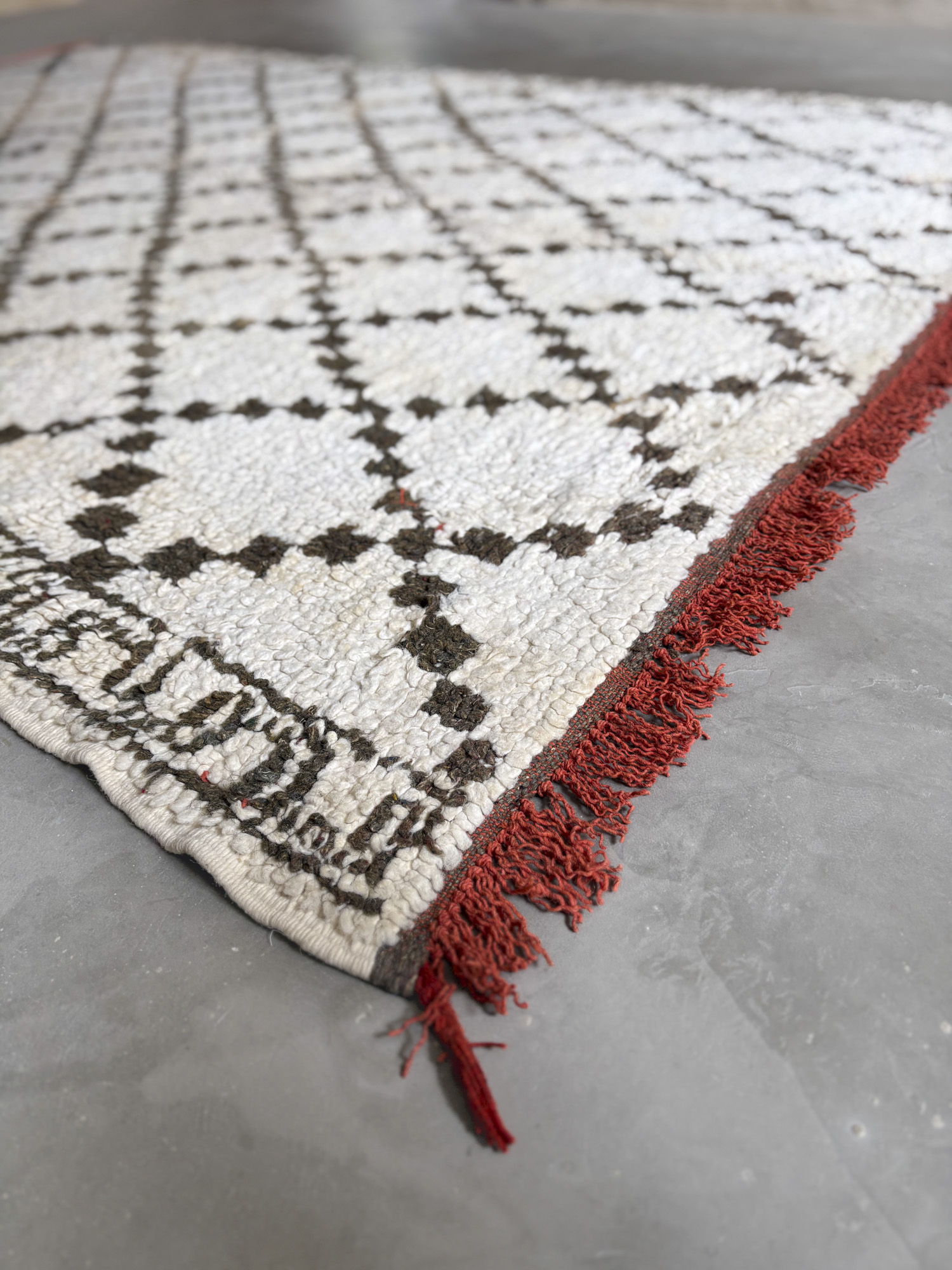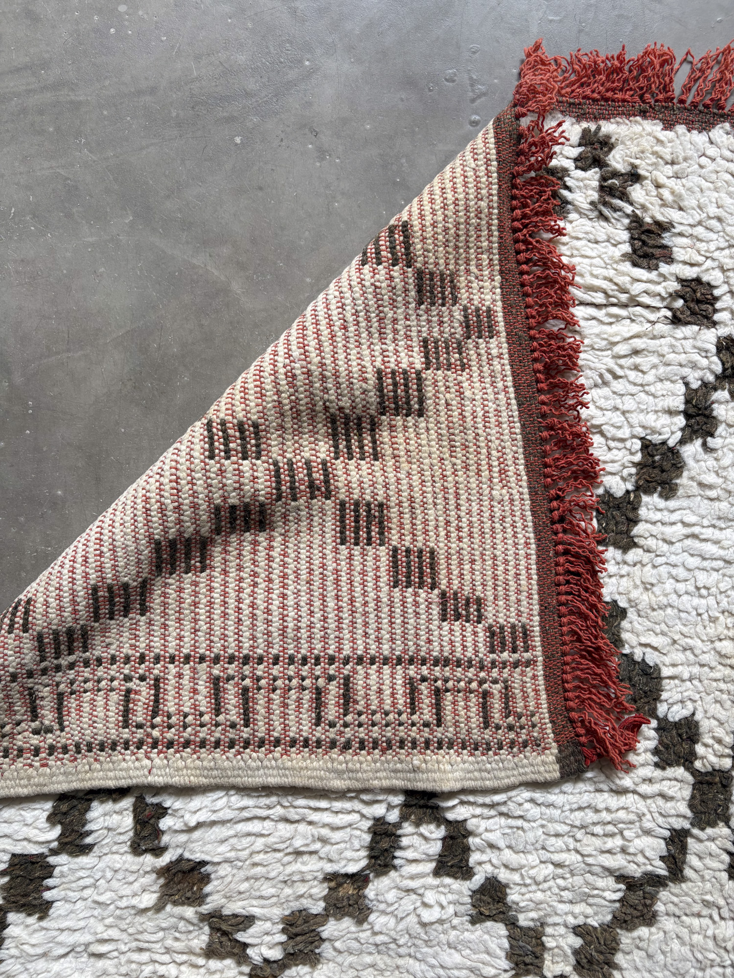 Esta alfombra está hecha a mano y es una pieza vintage, por lo que puede presentar irregularidades propias de su elaboración y del paso del tiempo. Las variaciones en el tejido, el grosor de la fibra o el color forman parte de su naturaleza artesanal y no deben considerarse defectos.