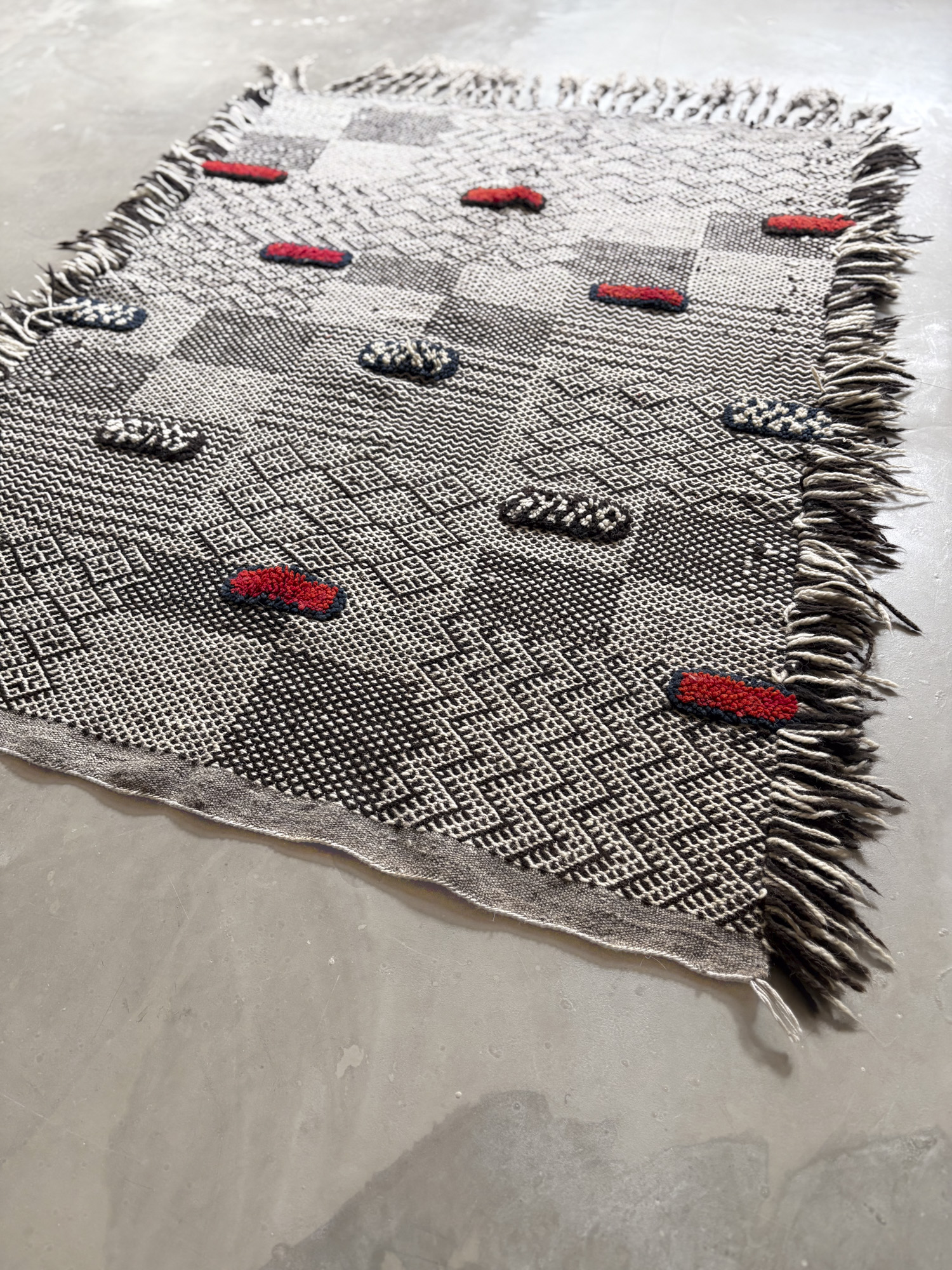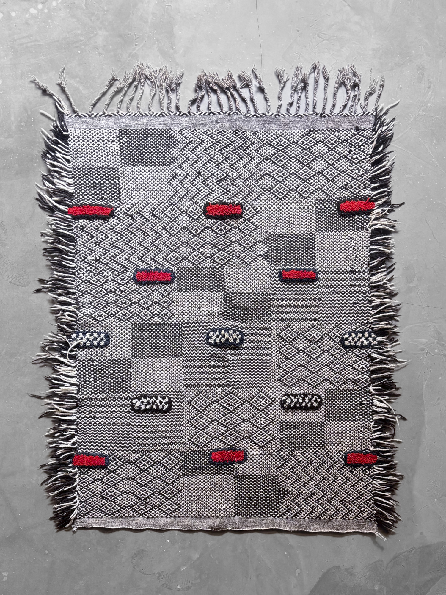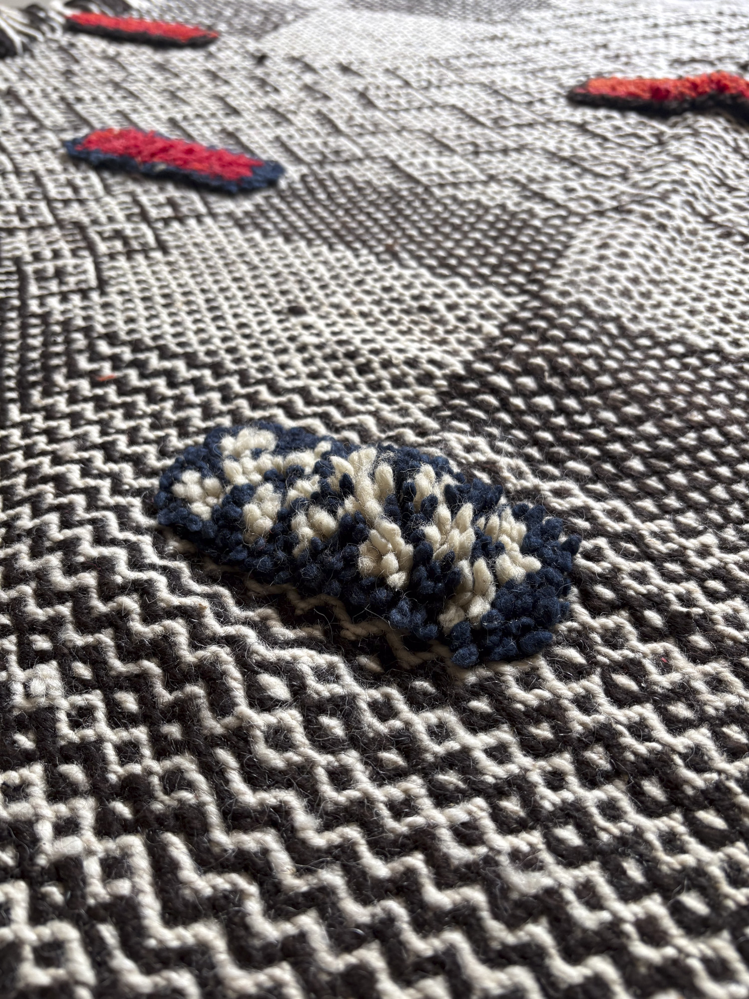 Esta alfombra está hecha a mano y es una pieza vintage, por lo que puede presentar irregularidades propias de su elaboración y del paso del tiempo. Las variaciones en el tejido, el grosor de la fibra o el color forman parte de su naturaleza artesanal y no deben considerarse defectos.