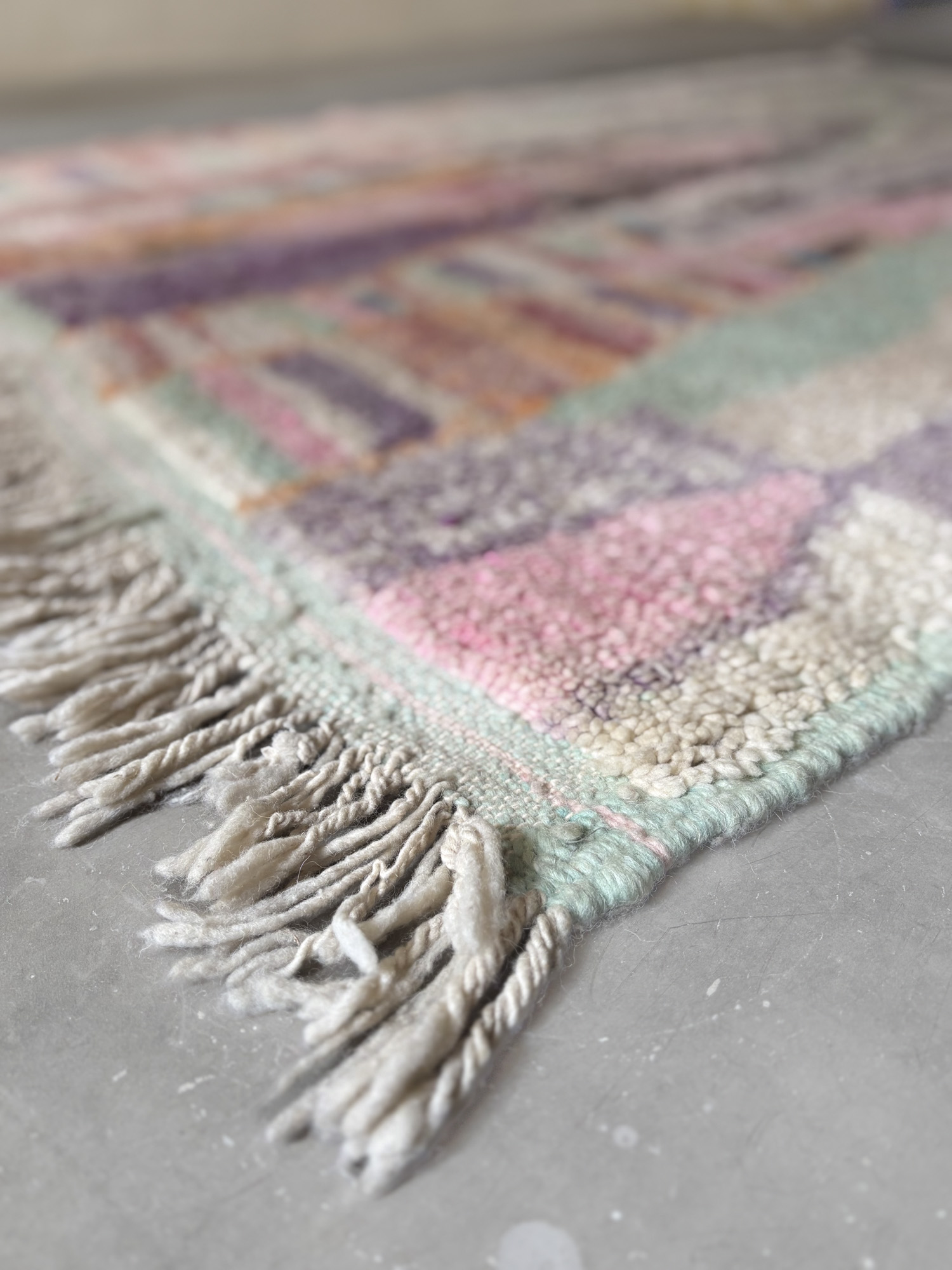 Se trata de alfombras realizadas hace algunos años dentro de la continuidad del tejido tradicional. Aunque no presentan el desgaste propio de las piezas vintage, conservan la libertad de composición, los colores intensos y el carácter espontáneo que definen estas alfombras.