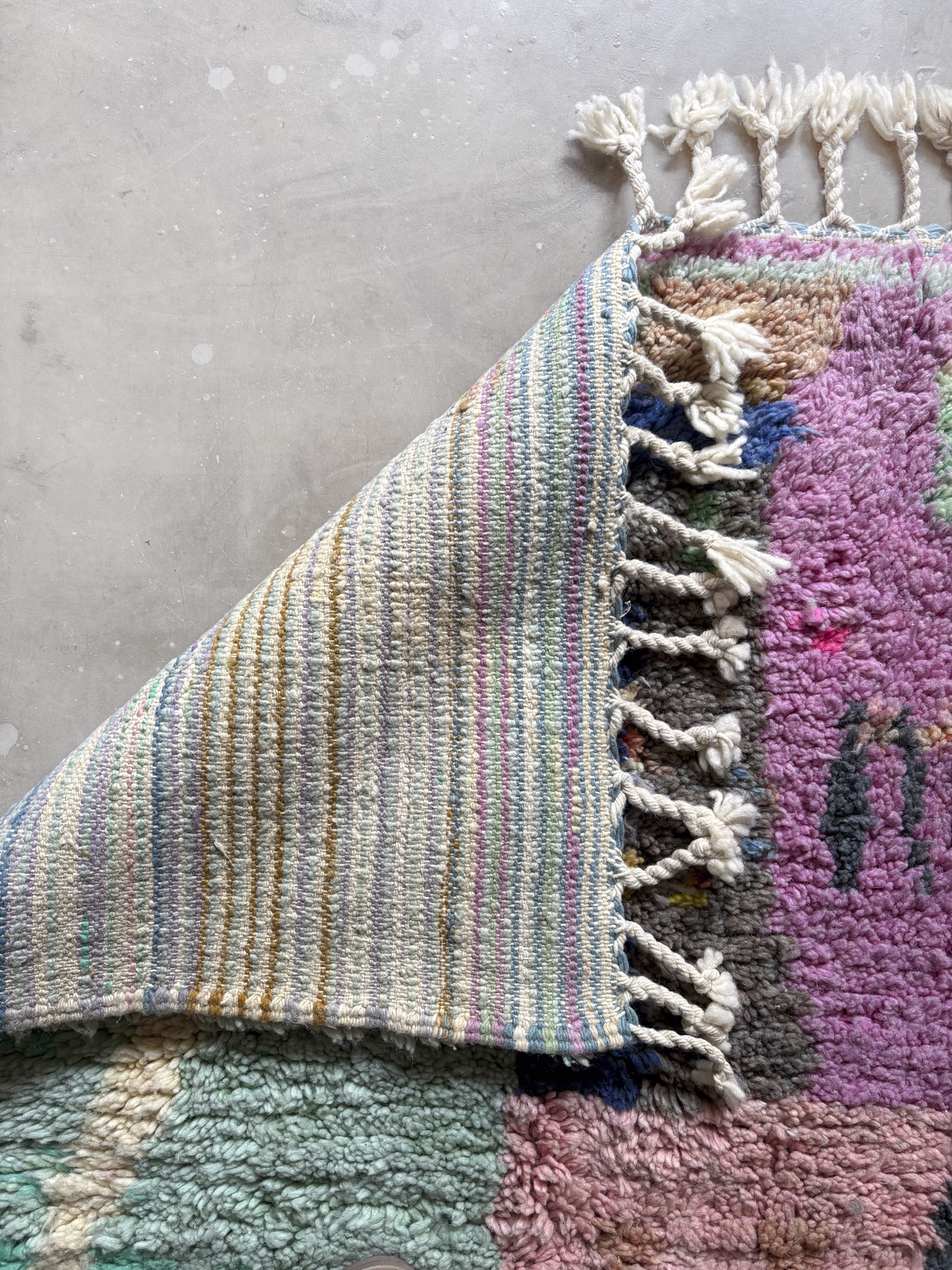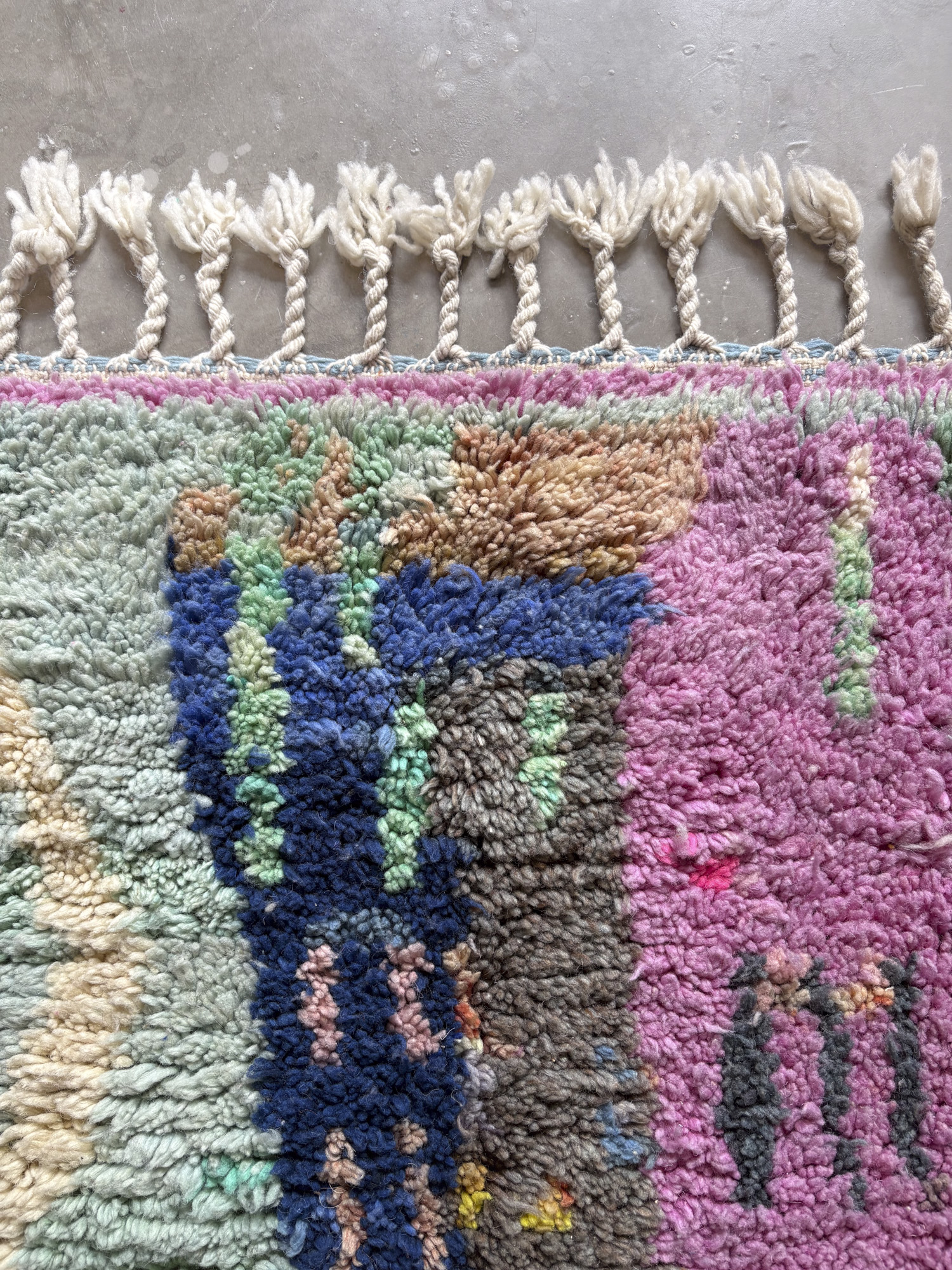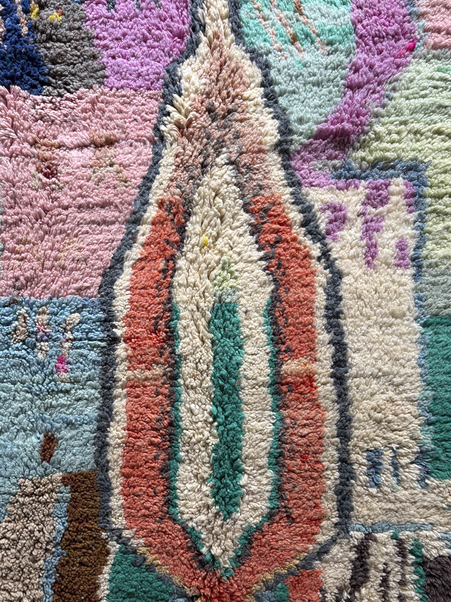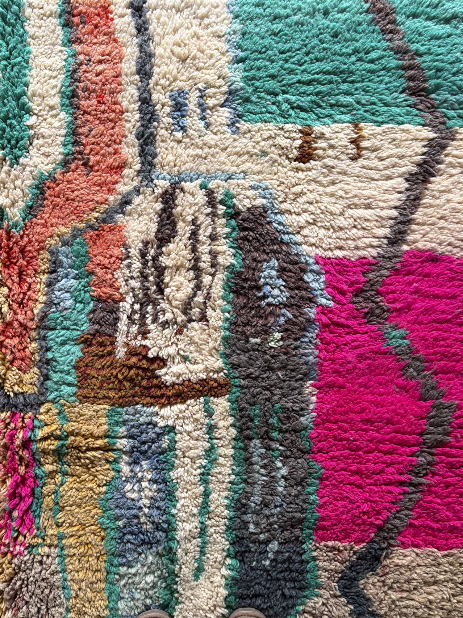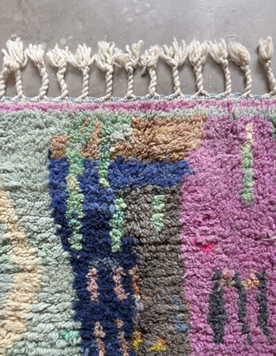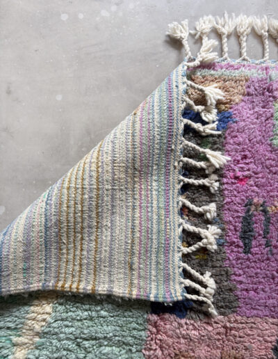 Esta alfombra está hecha a mano y es una pieza vintage, por lo que puede presentar irregularidades propias de su elaboración y del paso del tiempo. Las variaciones en el tejido, el grosor de la fibra o el color forman parte de su naturaleza artesanal y no deben considerarse defectos.
