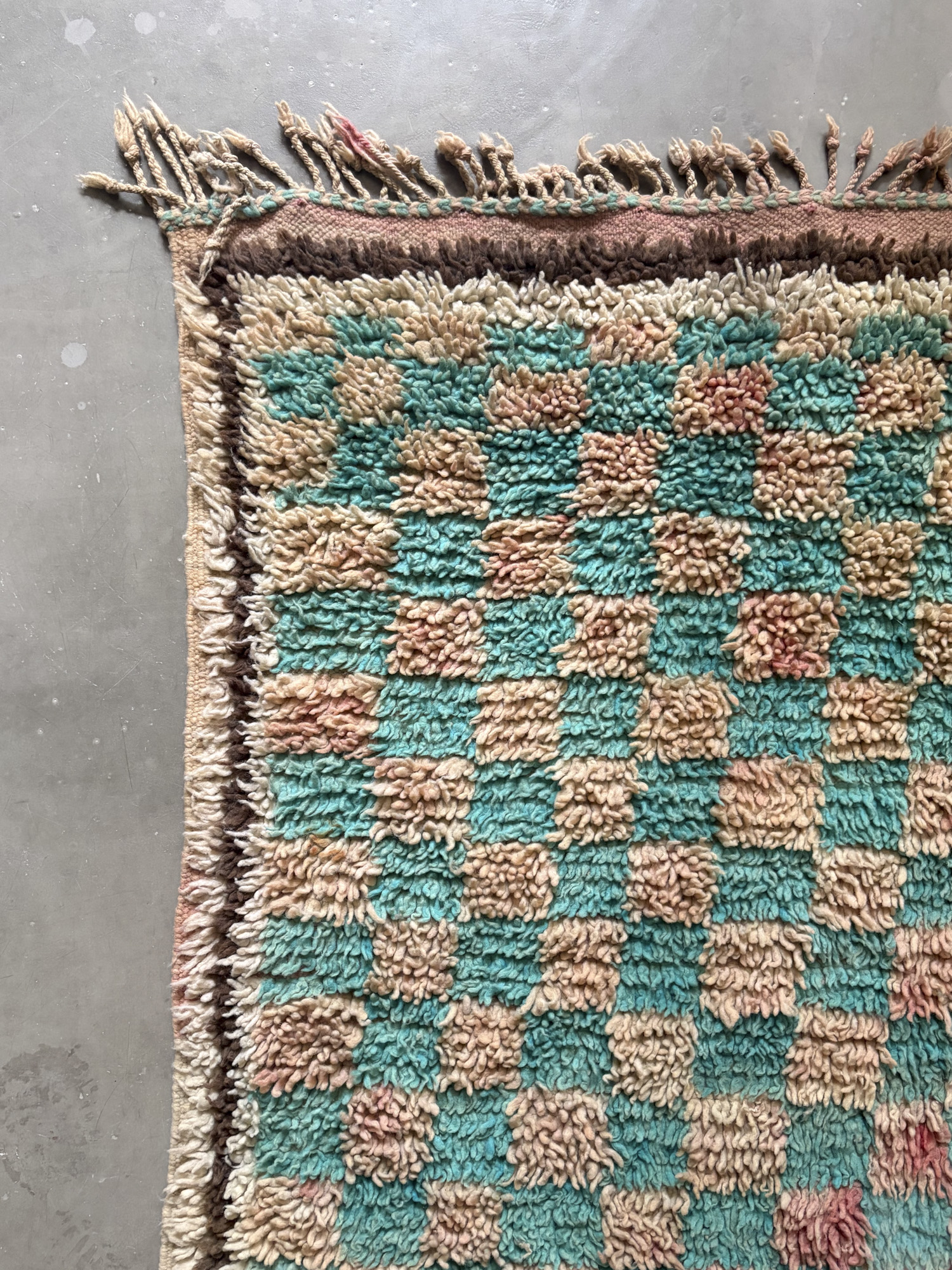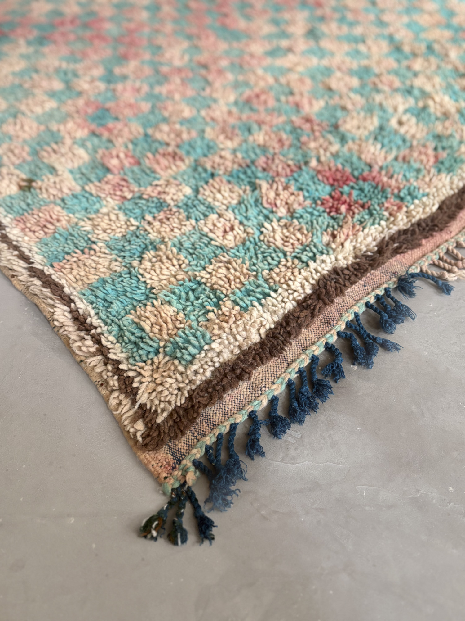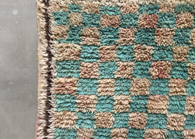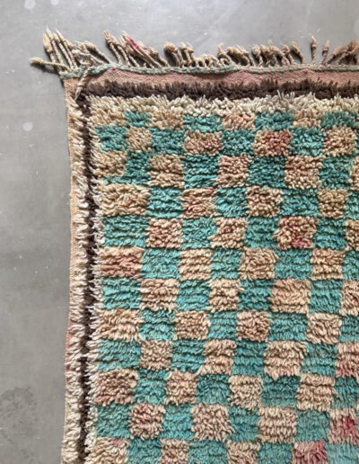 Esta alfombra está hecha a mano y es una pieza vintage, por lo que puede presentar irregularidades propias de su elaboración y del paso del tiempo. Las variaciones en el tejido, el grosor de la fibra o el color forman parte de su naturaleza artesanal y no deben considerarse defectos.