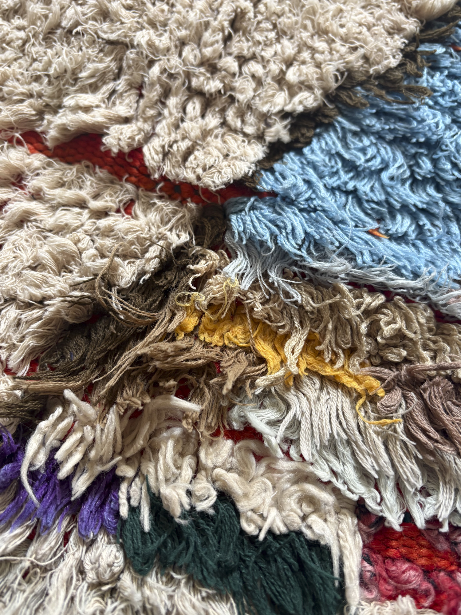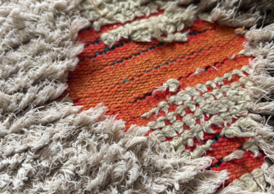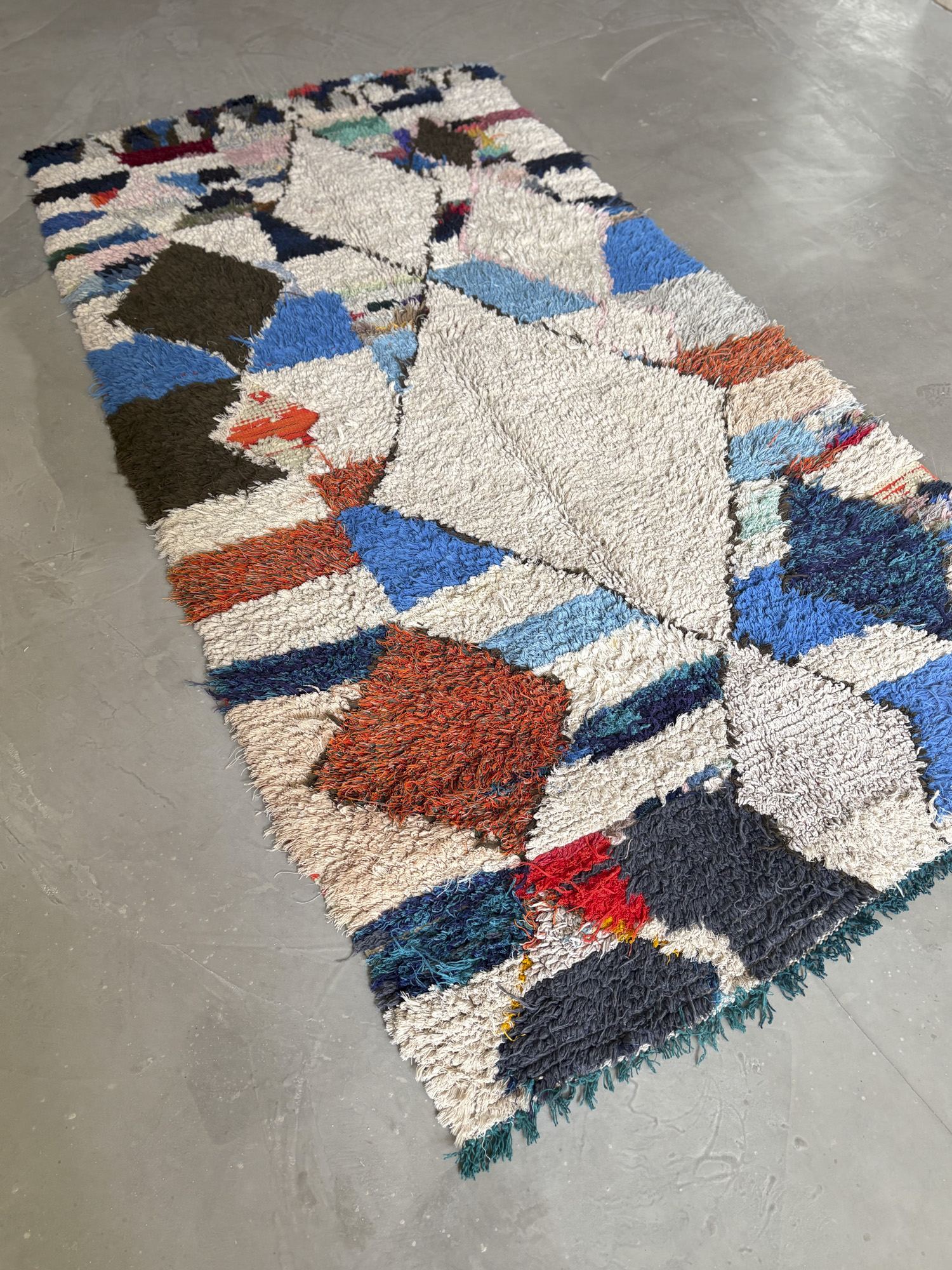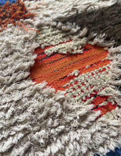 Esta alfombra está hecha a mano y es una pieza vintage, por lo que puede presentar irregularidades propias de su elaboración y del paso del tiempo. Las variaciones en el tejido, el grosor de la fibra o el color forman parte de su naturaleza artesanal y no deben considerarse defectos.