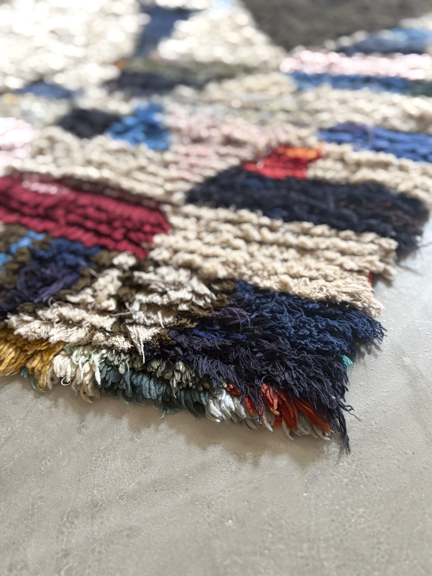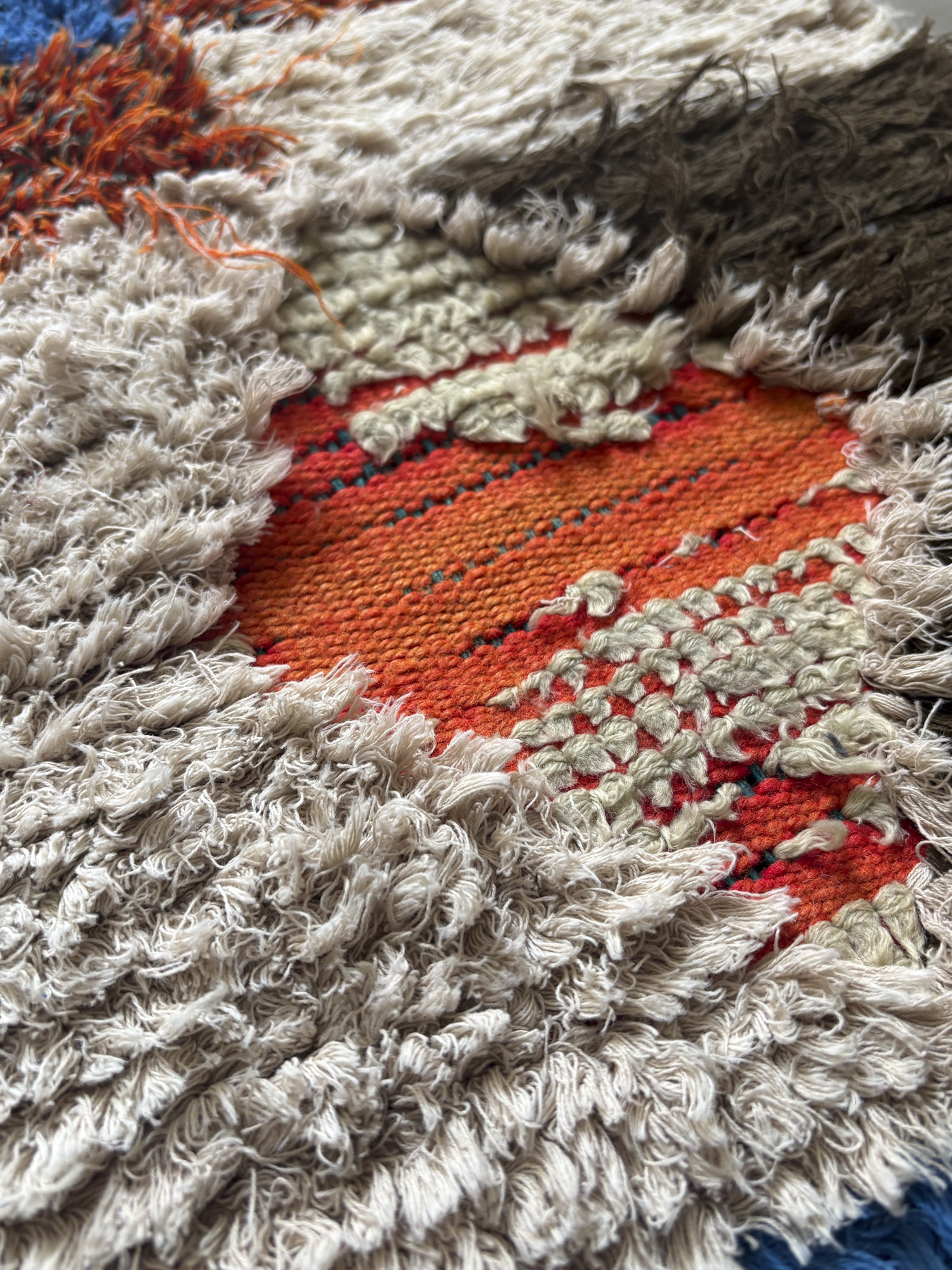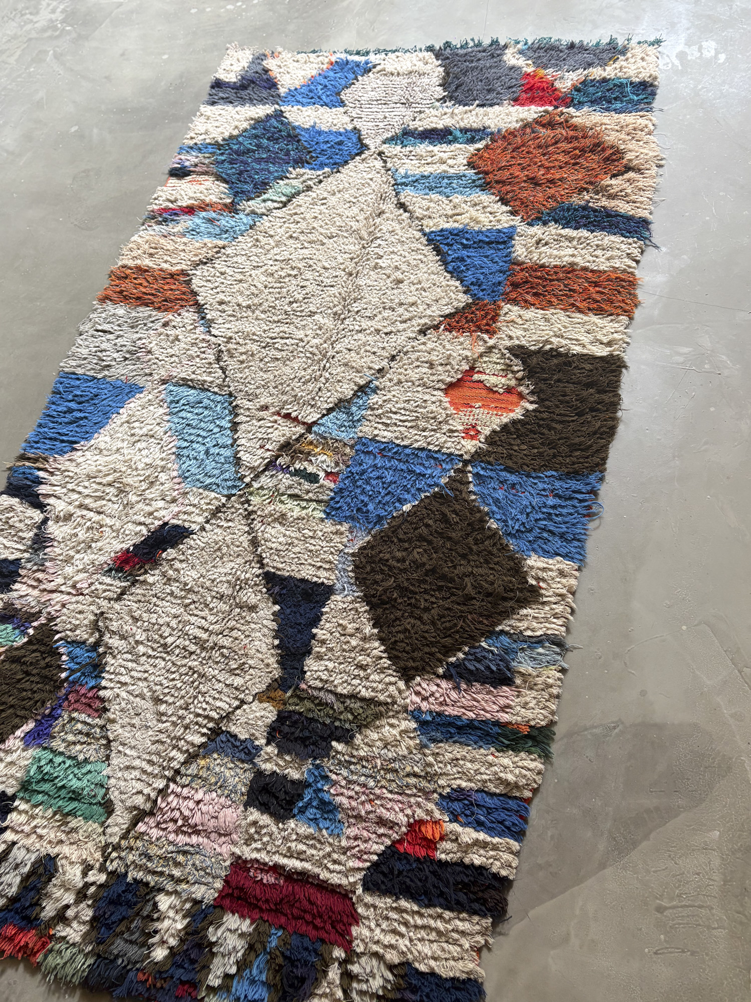 Esta alfombra está hecha a mano y es una pieza vintage, por lo que puede presentar irregularidades propias de su elaboración y del paso del tiempo. Las variaciones en el tejido, el grosor de la fibra o el color forman parte de su naturaleza artesanal y no deben considerarse defectos.