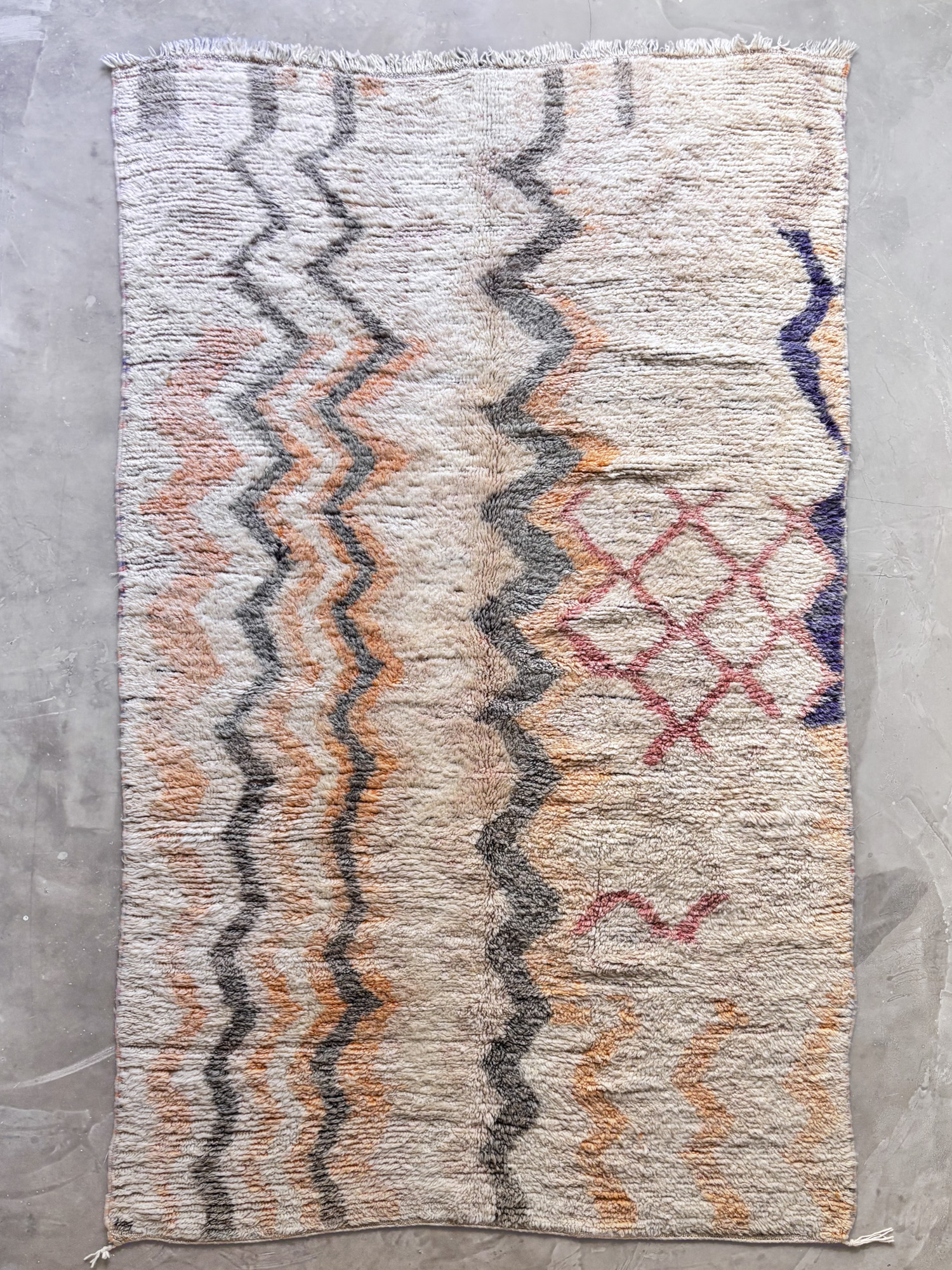 Esta alfombra forma parte de nuestra selección Archive, piezas tejidas a mano por artesanas amazigh siguiendo las técnicas tradicionales del Atlas.