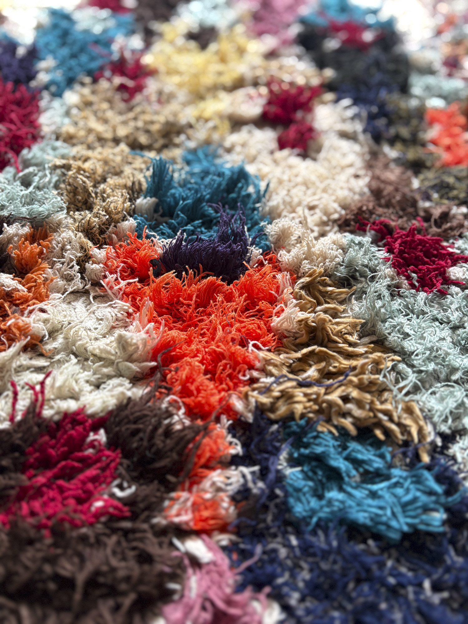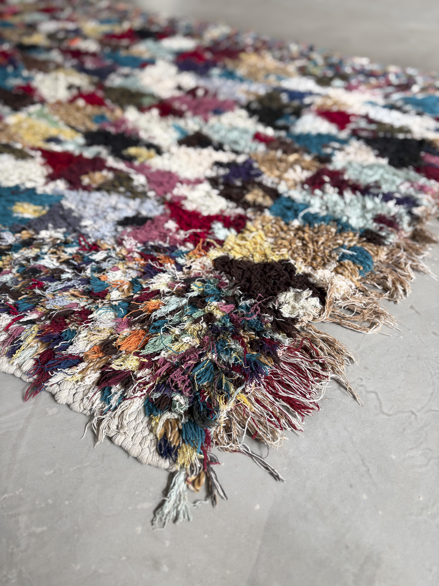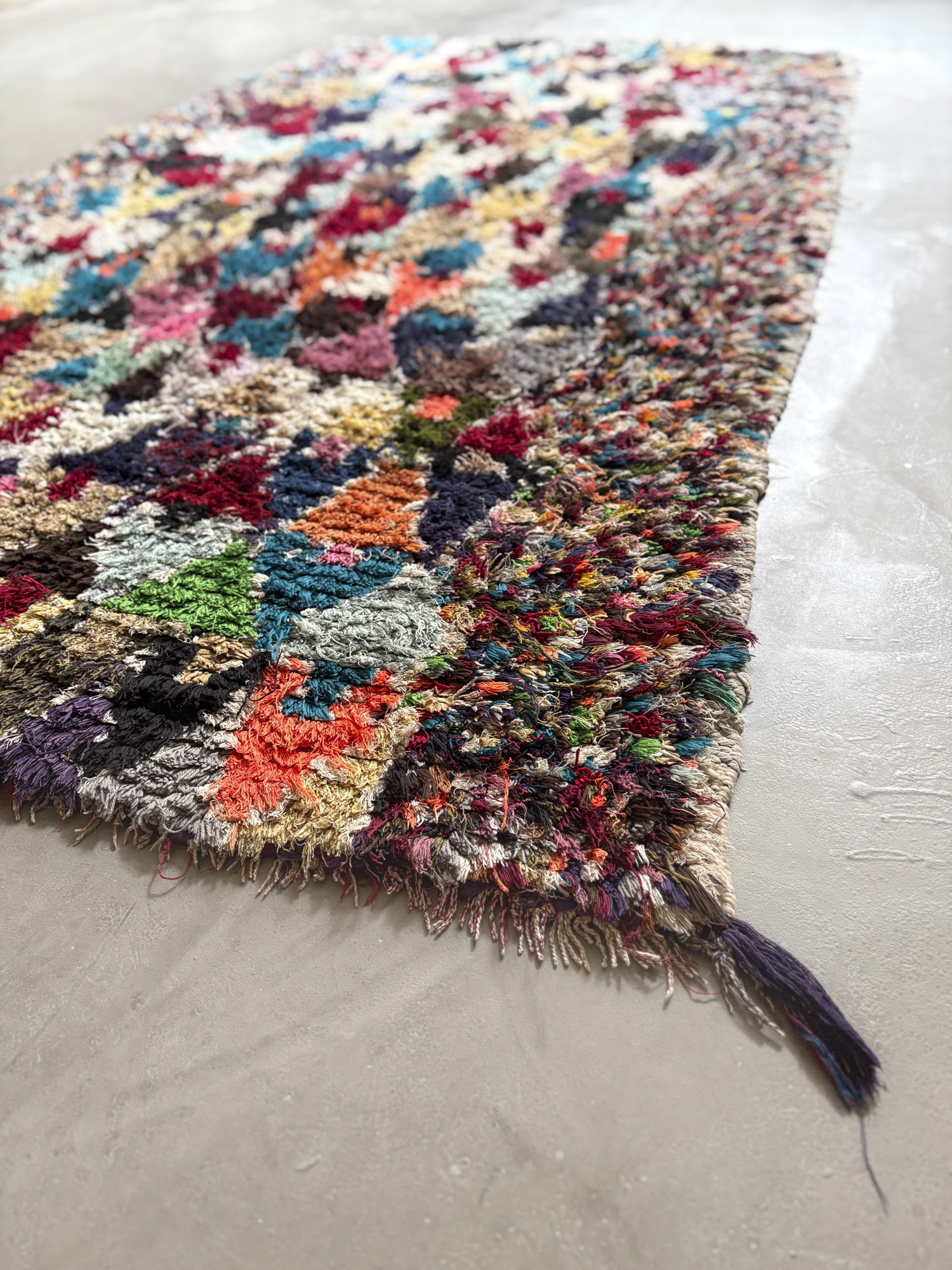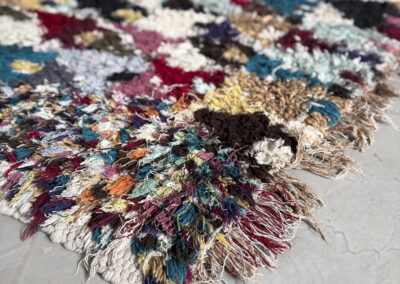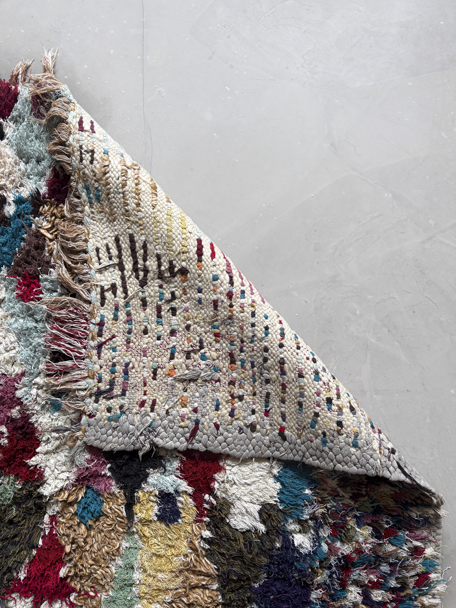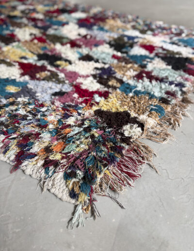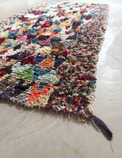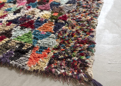 Esta alfombra está hecha a mano y es una pieza vintage, por lo que puede presentar irregularidades propias de su elaboración y del paso del tiempo. Las variaciones en el tejido, el grosor de la fibra o el color forman parte de su naturaleza artesanal y no deben considerarse defectos.