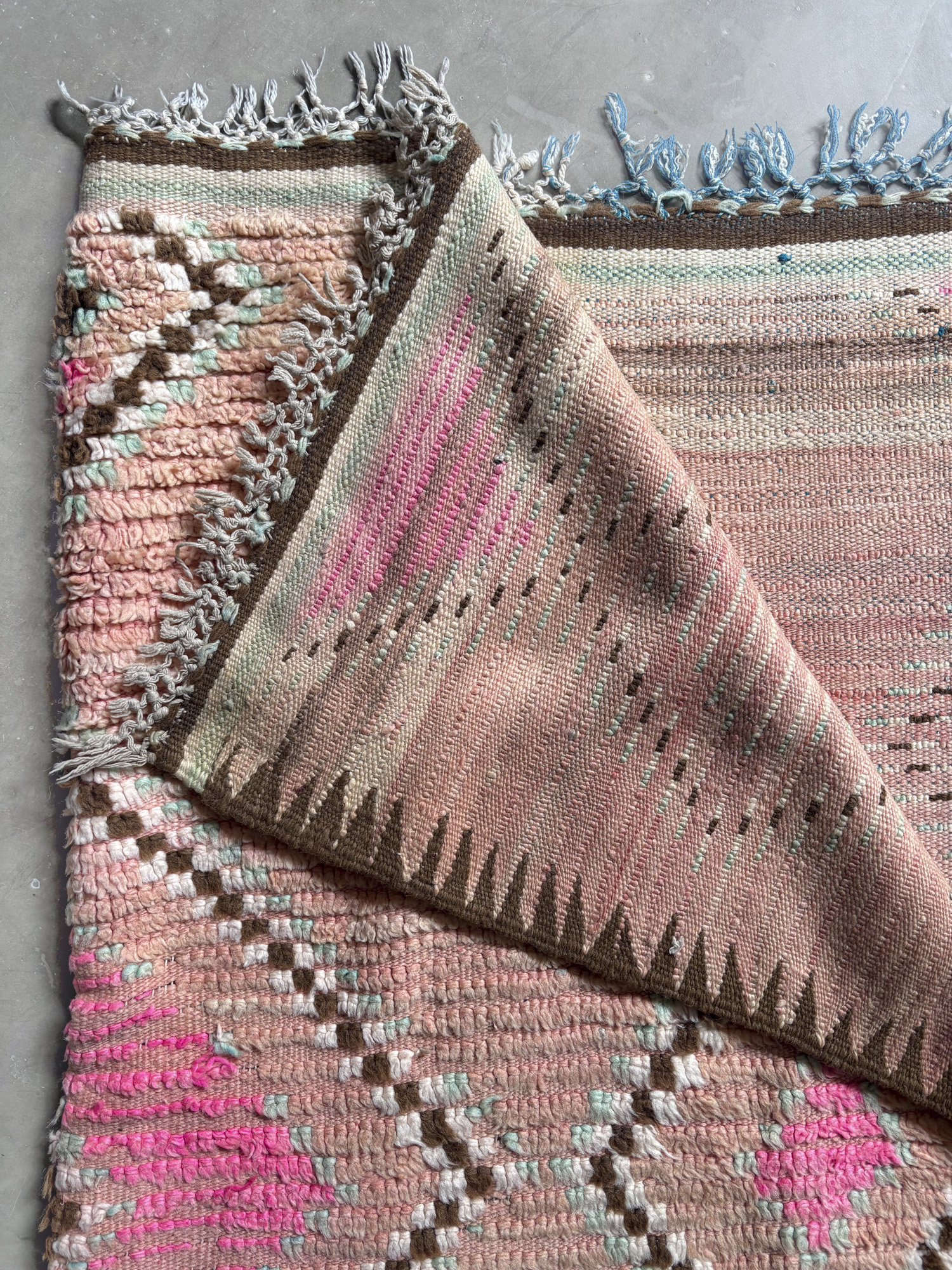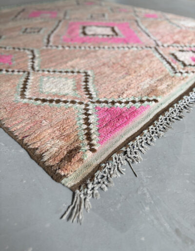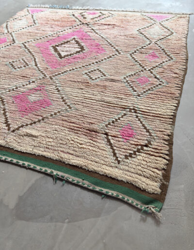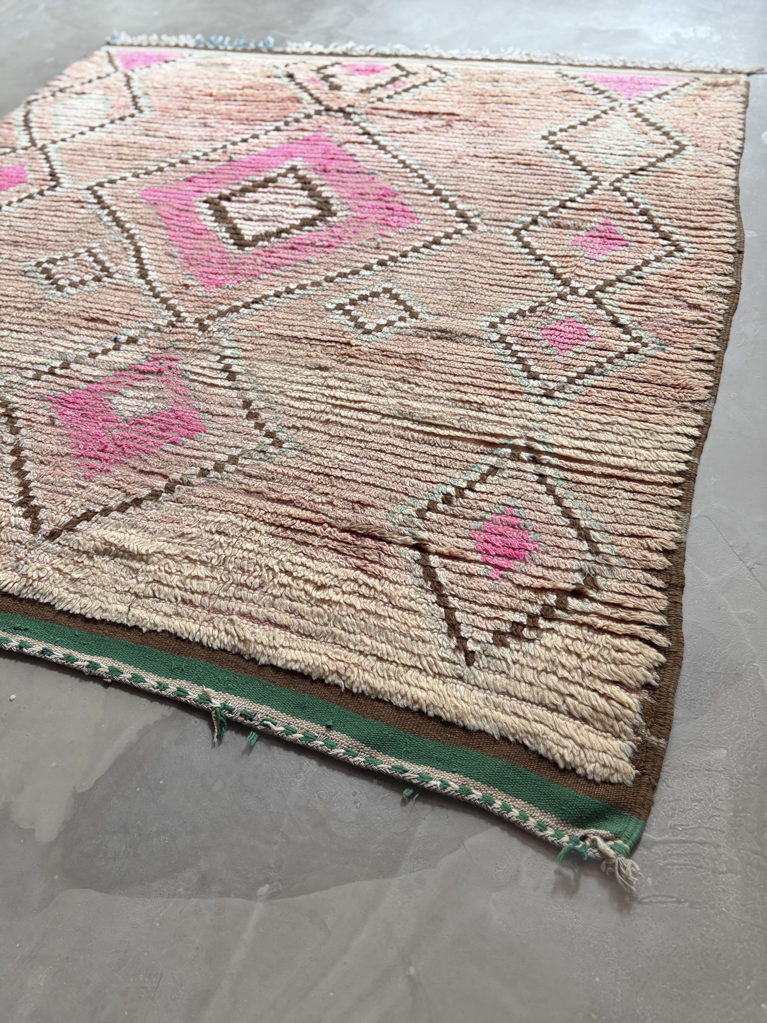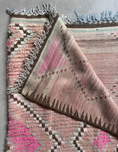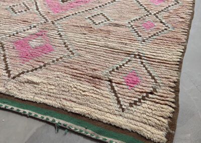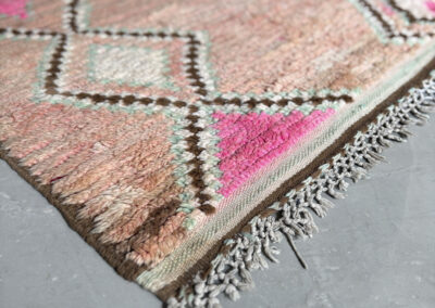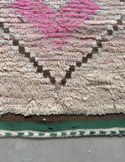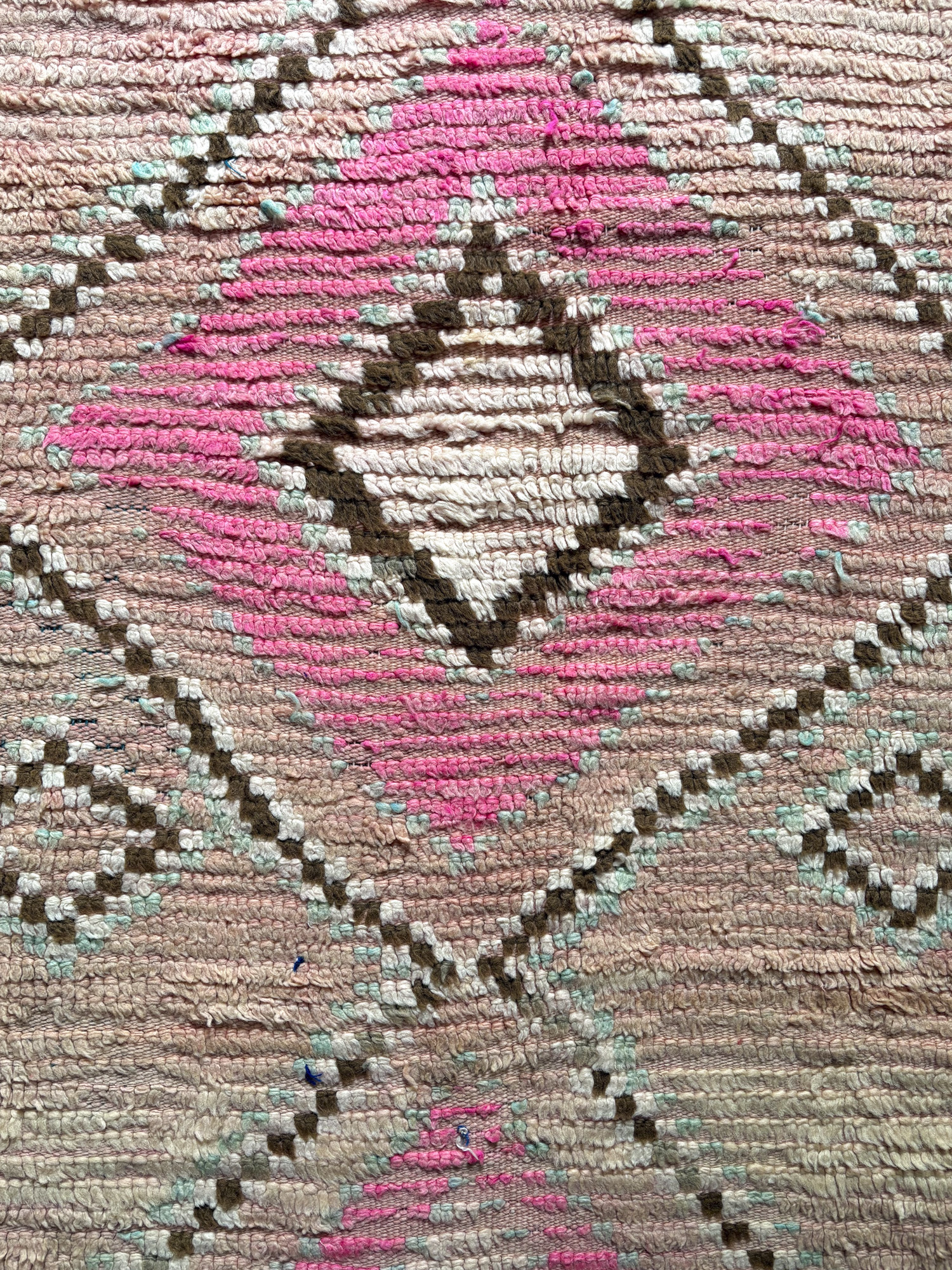 Esta alfombra está hecha a mano y es una pieza vintage, por lo que puede presentar irregularidades propias de su elaboración y del paso del tiempo. Las variaciones en el tejido, el grosor de la fibra o el color forman parte de su naturaleza artesanal y no deben considerarse defectos.