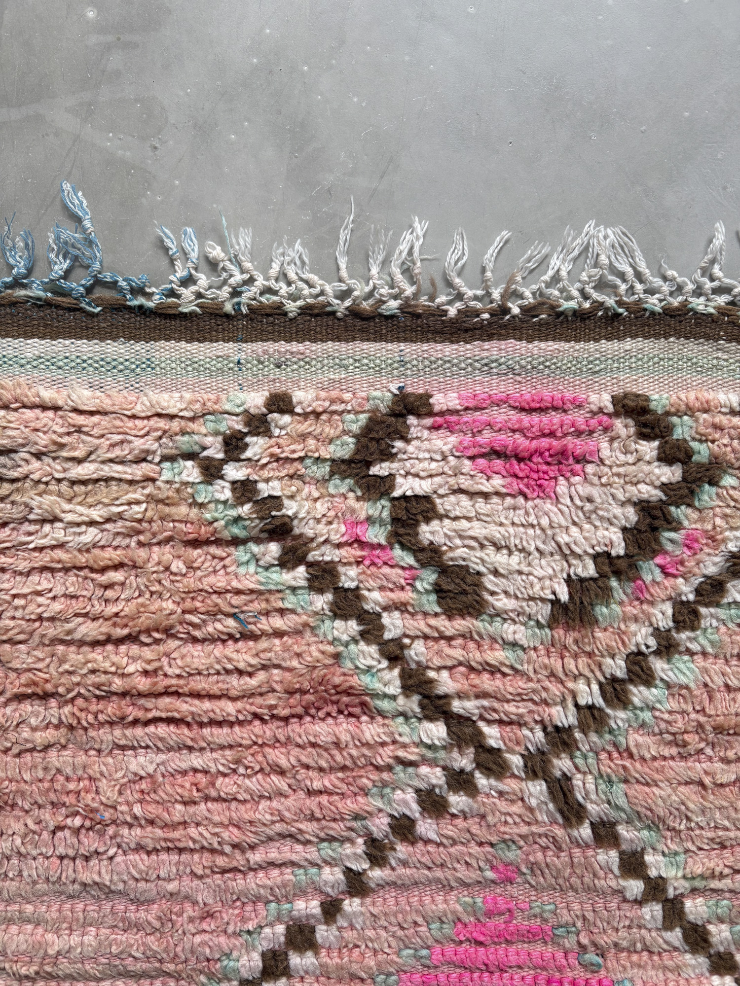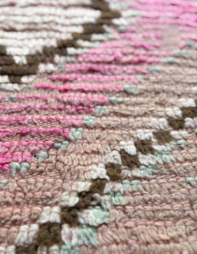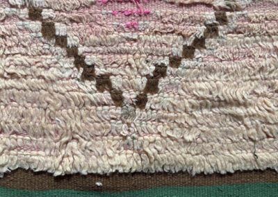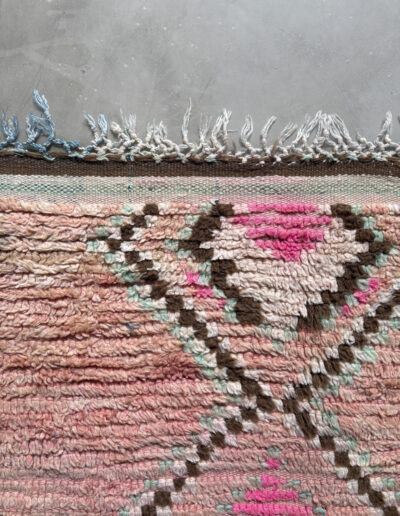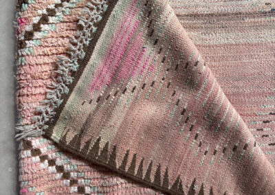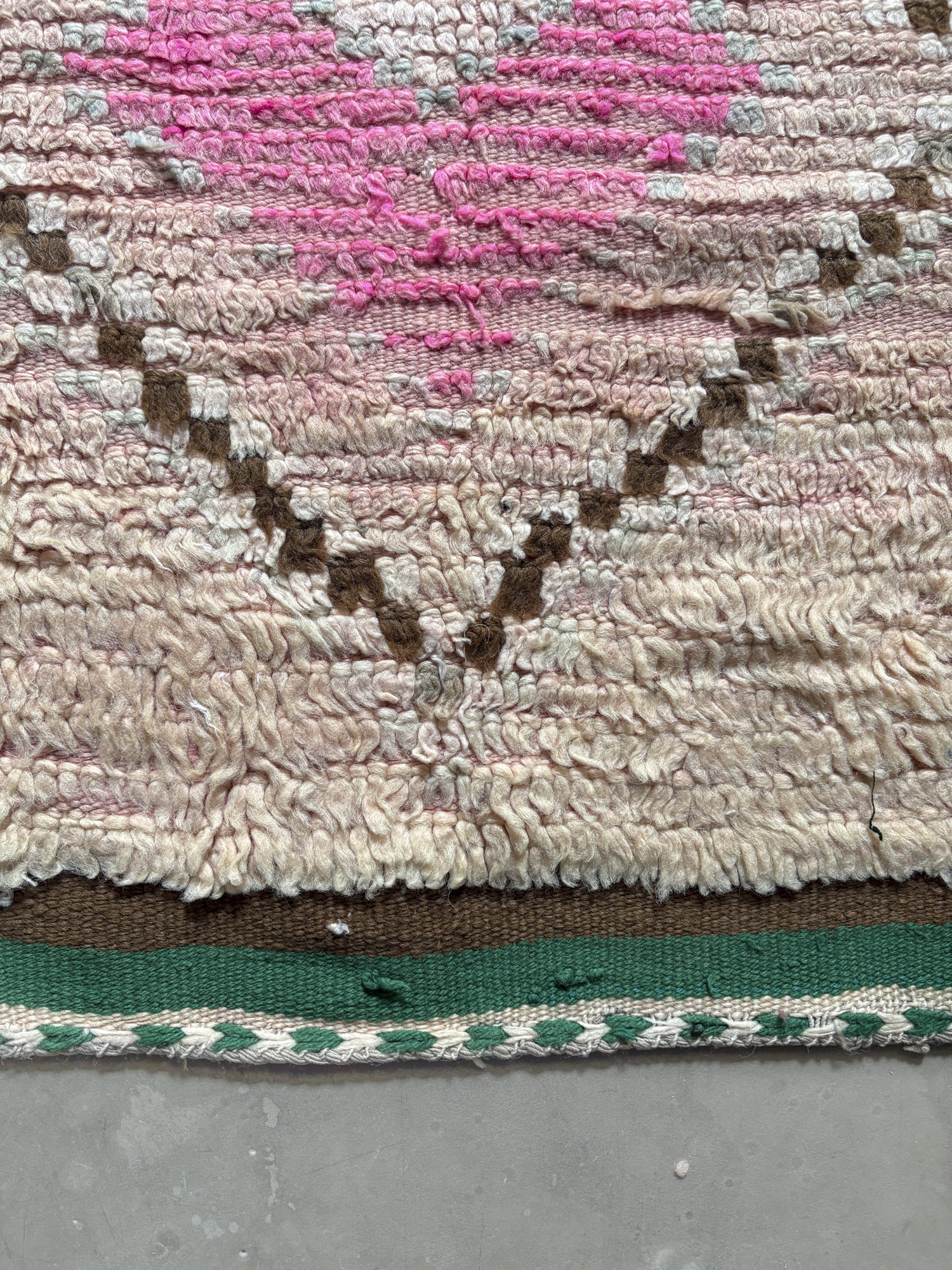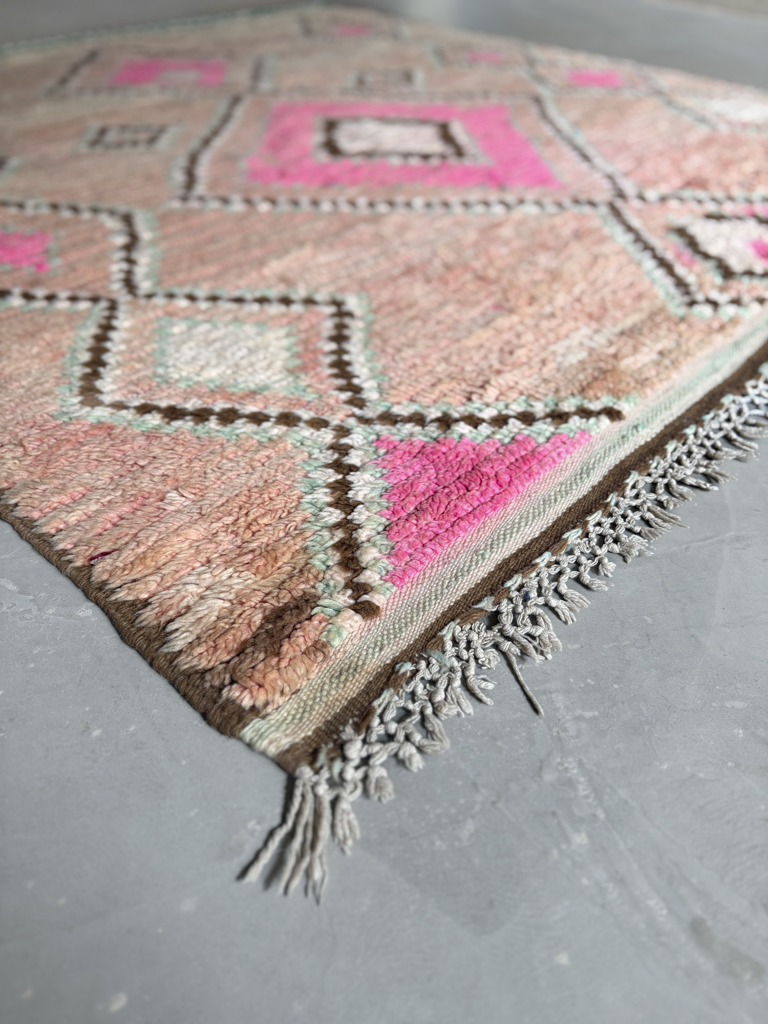 Esta alfombra está hecha a mano y es una pieza vintage, por lo que puede presentar irregularidades propias de su elaboración y del paso del tiempo. Las variaciones en el tejido, el grosor de la fibra o el color forman parte de su naturaleza artesanal y no deben considerarse defectos.