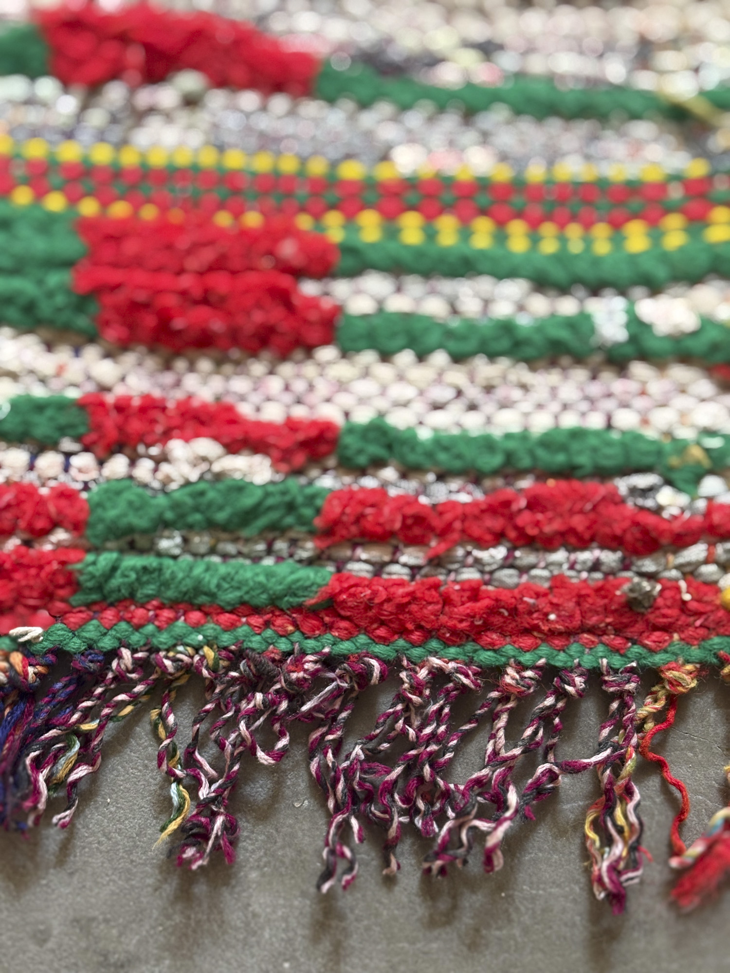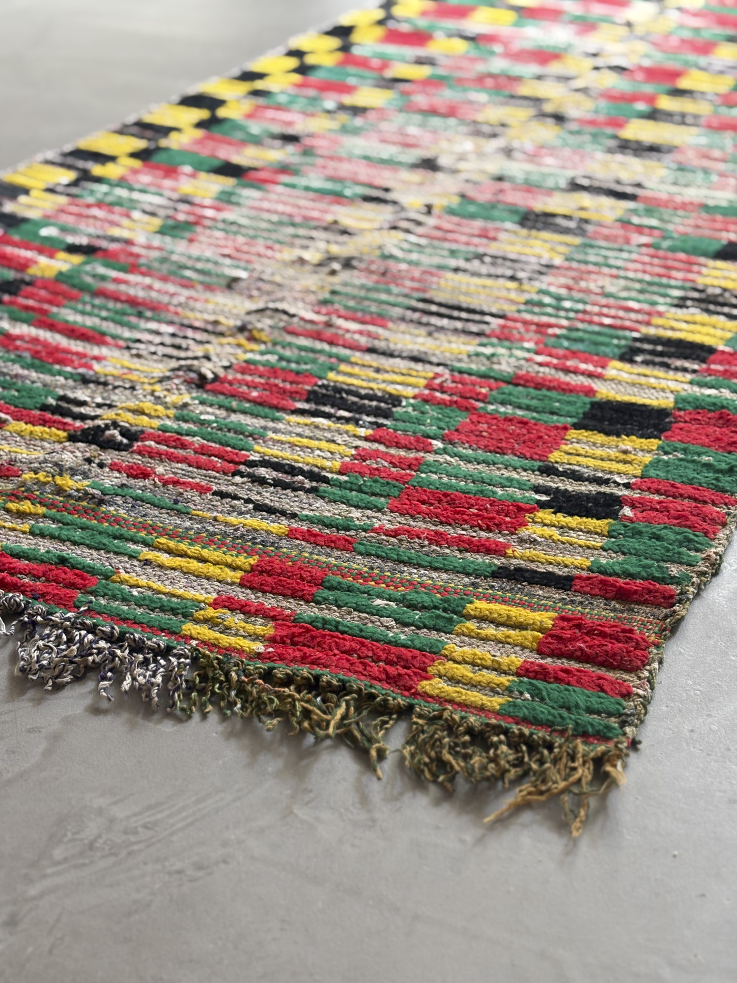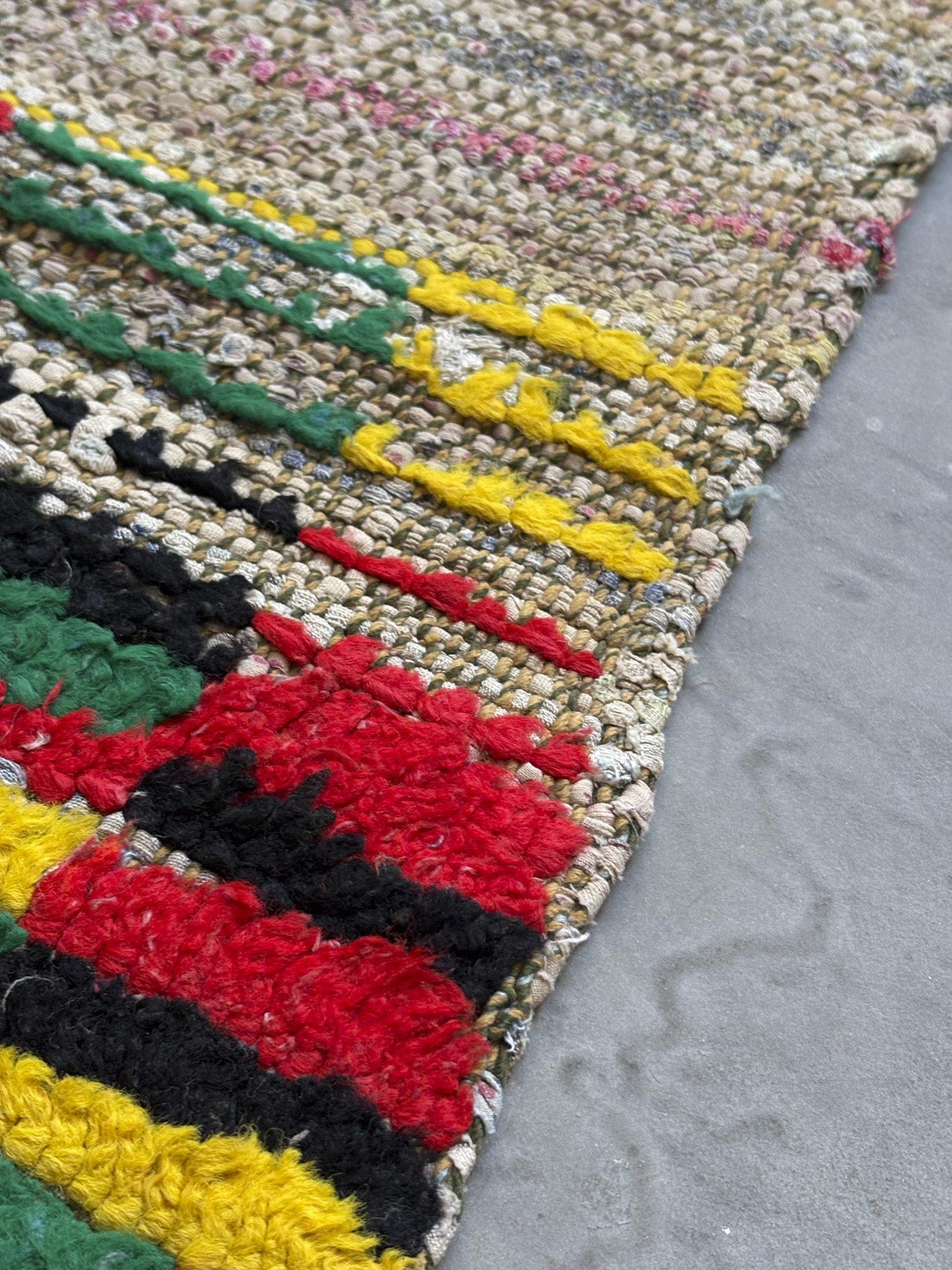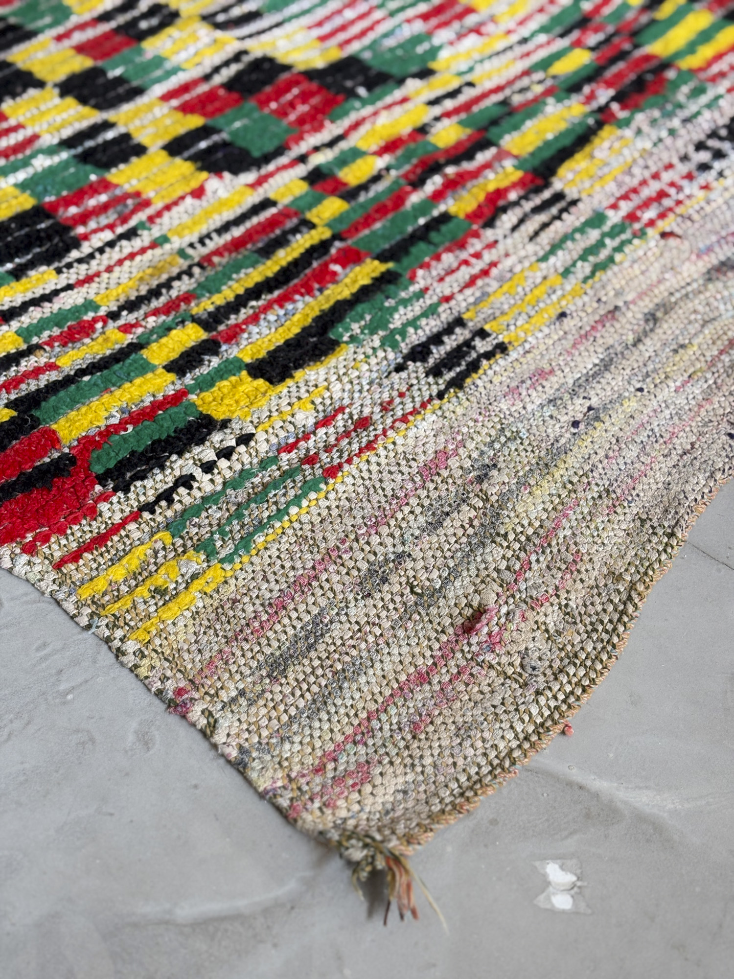 Esta alfombra está hecha a mano y es una pieza vintage, por lo que puede presentar irregularidades propias de su elaboración y del paso del tiempo. Las variaciones en el tejido, el grosor de la fibra o el color forman parte de su naturaleza artesanal y no deben considerarse defectos.