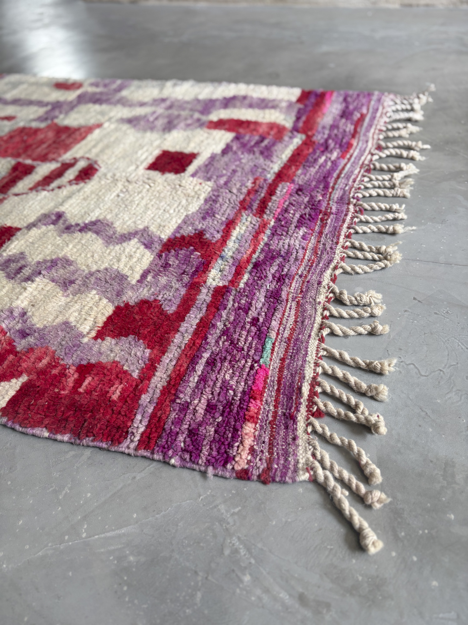 Esta alfombra forma parte de nuestra selección Archive, piezas tejidas a mano por artesanas amazigh siguiendo las técnicas tradicionales del Atlas.
