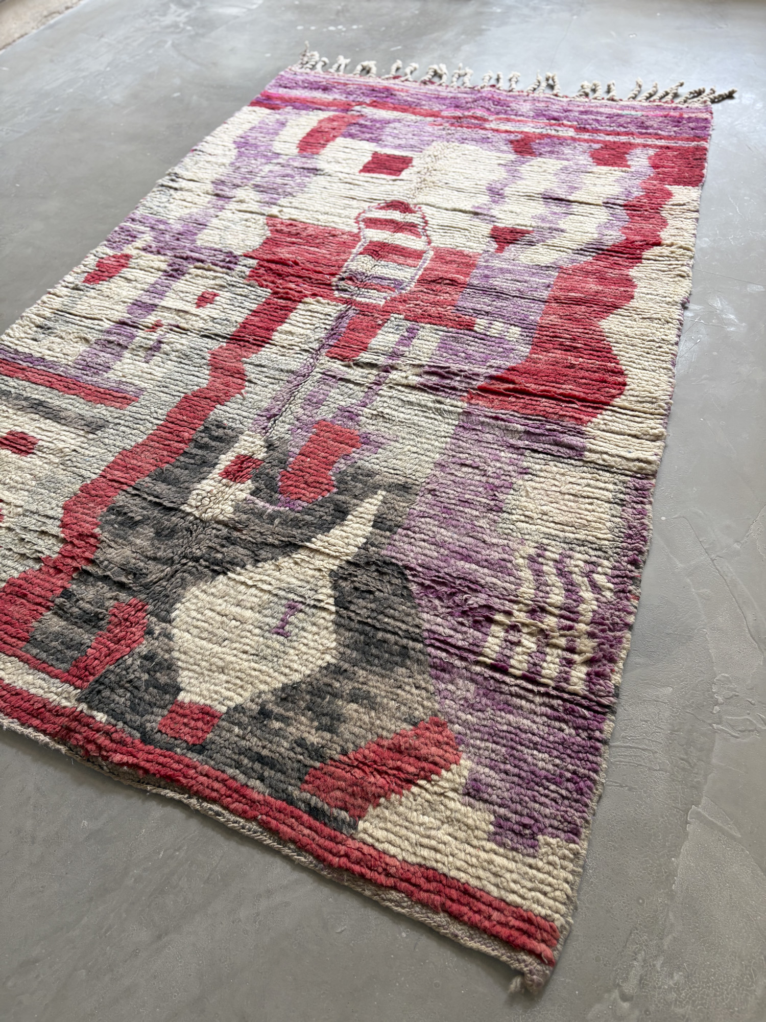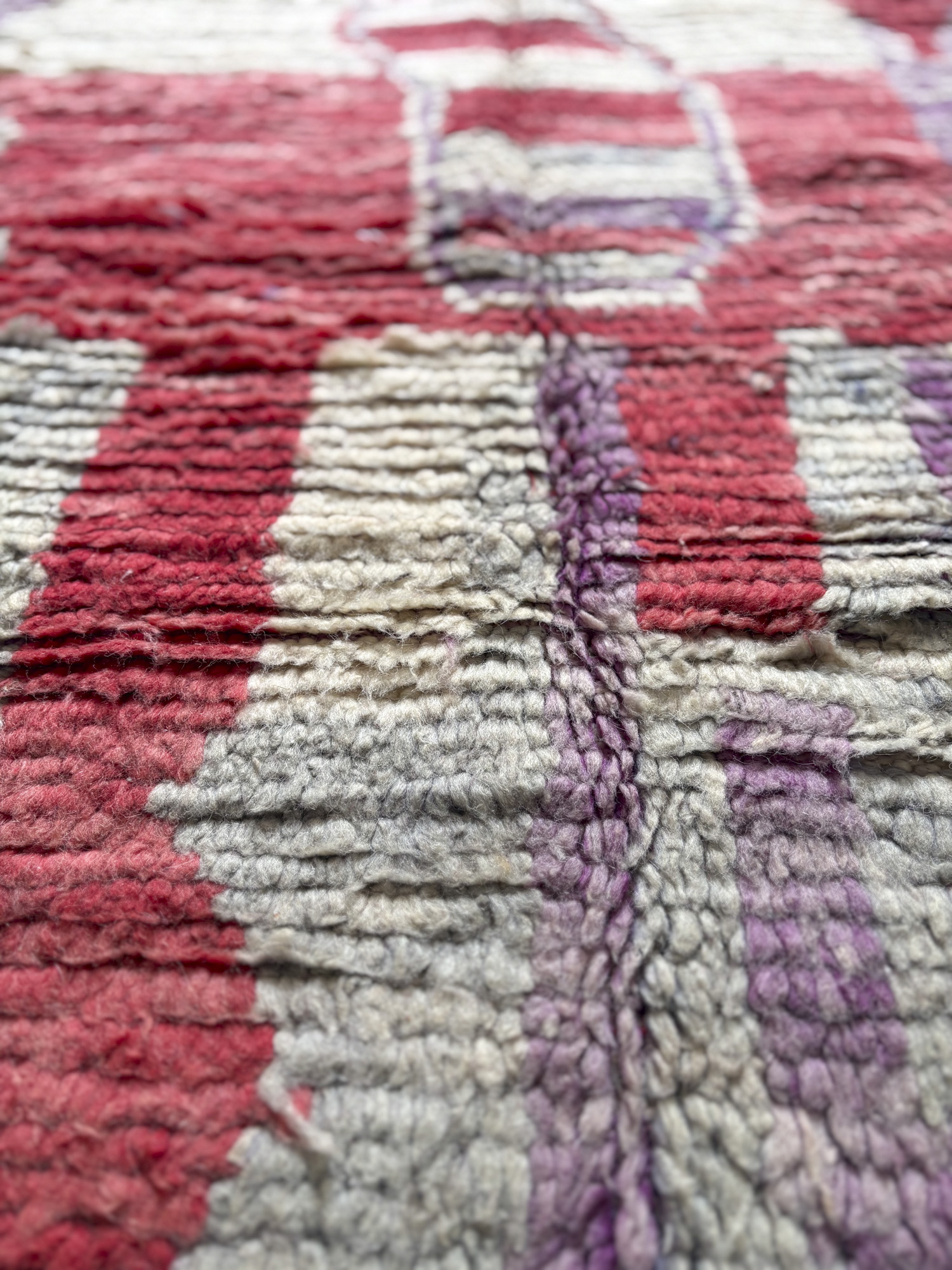 Se trata de alfombras realizadas hace algunos años dentro de la continuidad del tejido tradicional. Aunque no presentan el desgaste propio de las piezas vintage, conservan la libertad de composición, los colores intensos y el carácter espontáneo que definen estas alfombras.