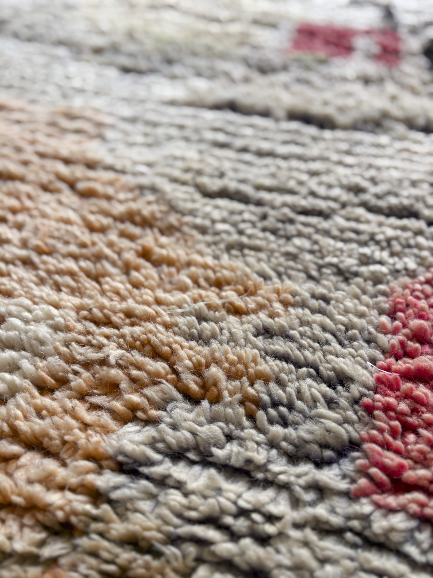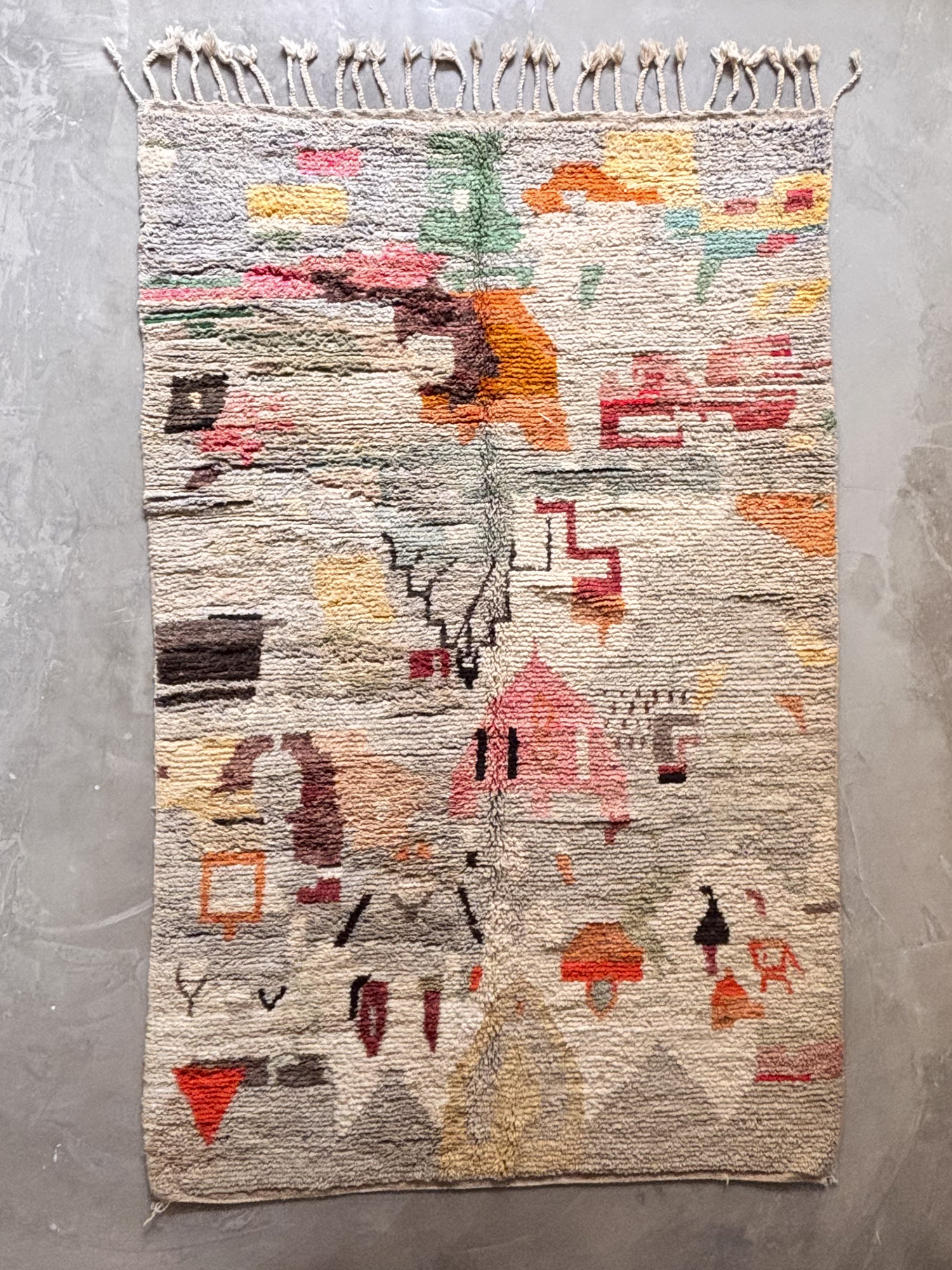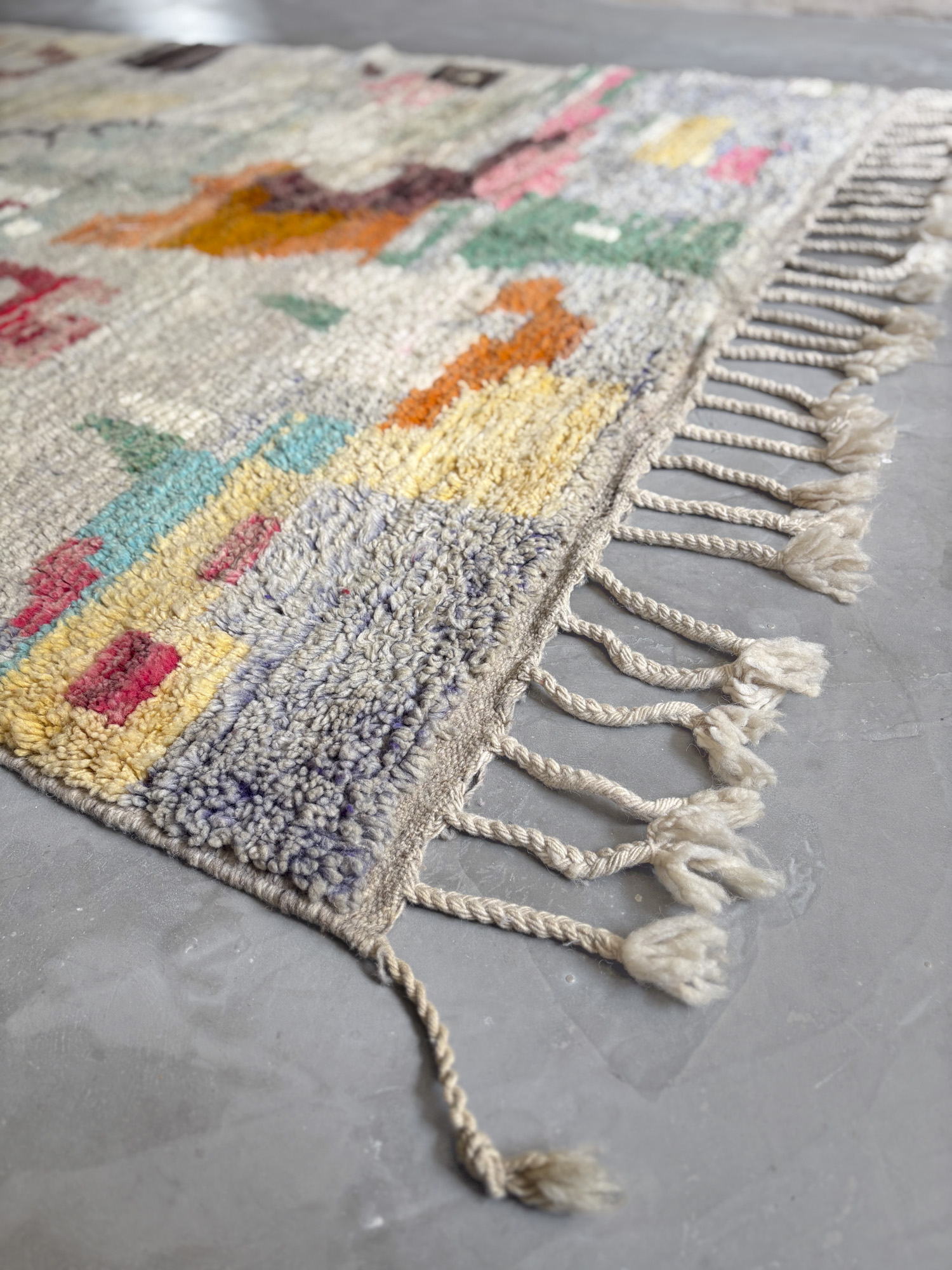 Se trata de alfombras realizadas hace algunos años dentro de la continuidad del tejido tradicional. Aunque no presentan el desgaste propio de las piezas vintage, conservan la libertad de composición, los colores intensos y el carácter espontáneo que definen estas alfombras.