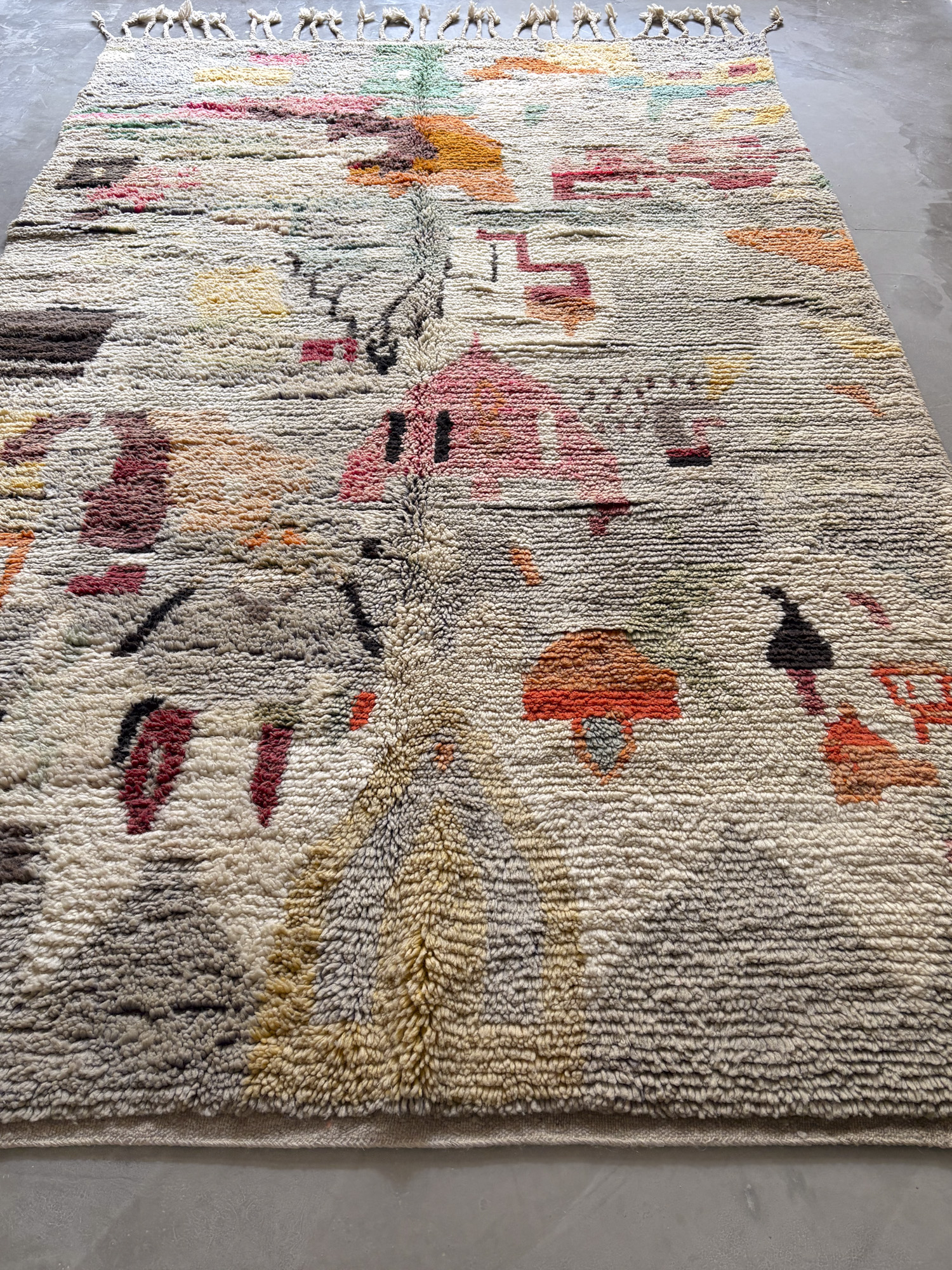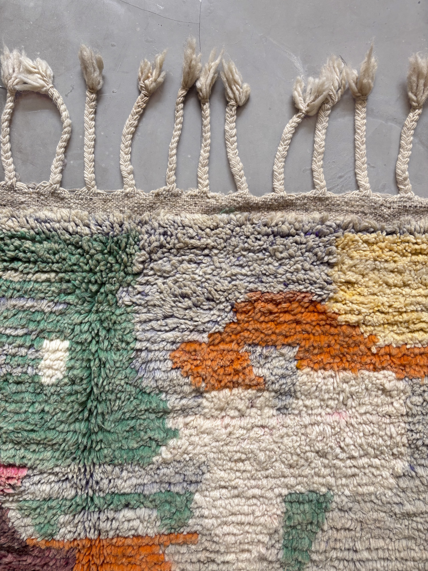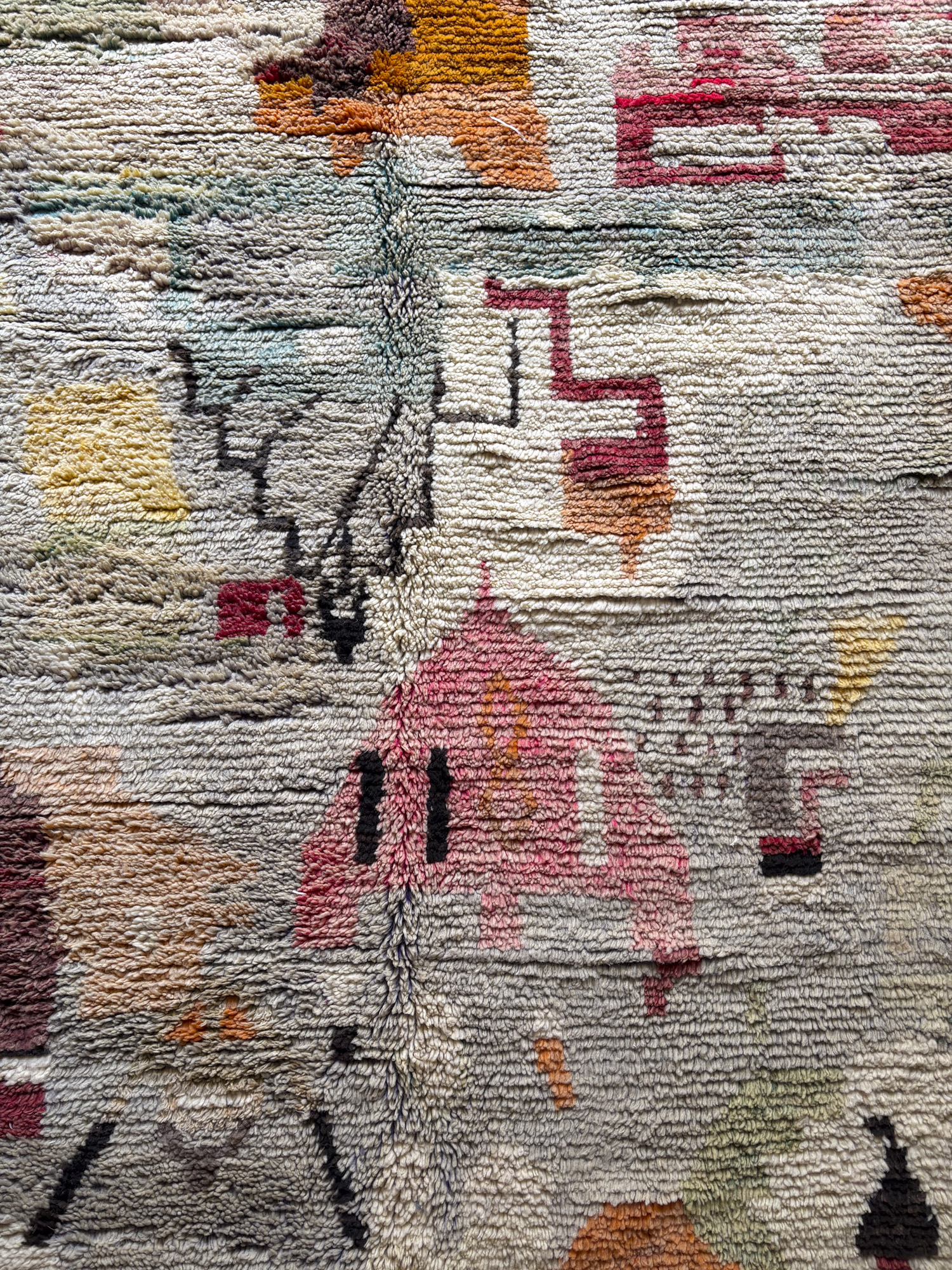 Se trata de alfombras realizadas hace algunos años dentro de la continuidad del tejido tradicional. Aunque no presentan el desgaste propio de las piezas vintage, conservan la libertad de composición, los colores intensos y el carácter espontáneo que definen estas alfombras.