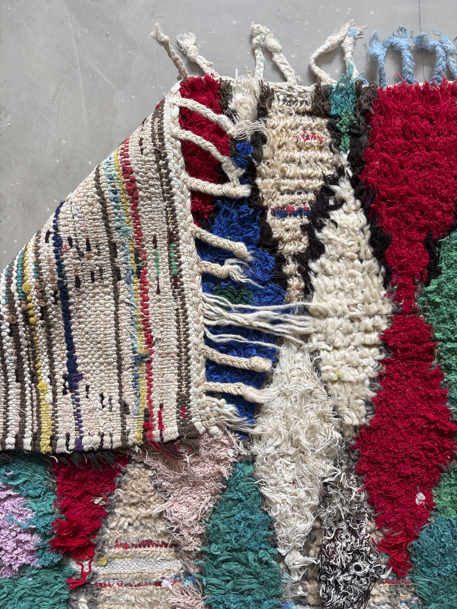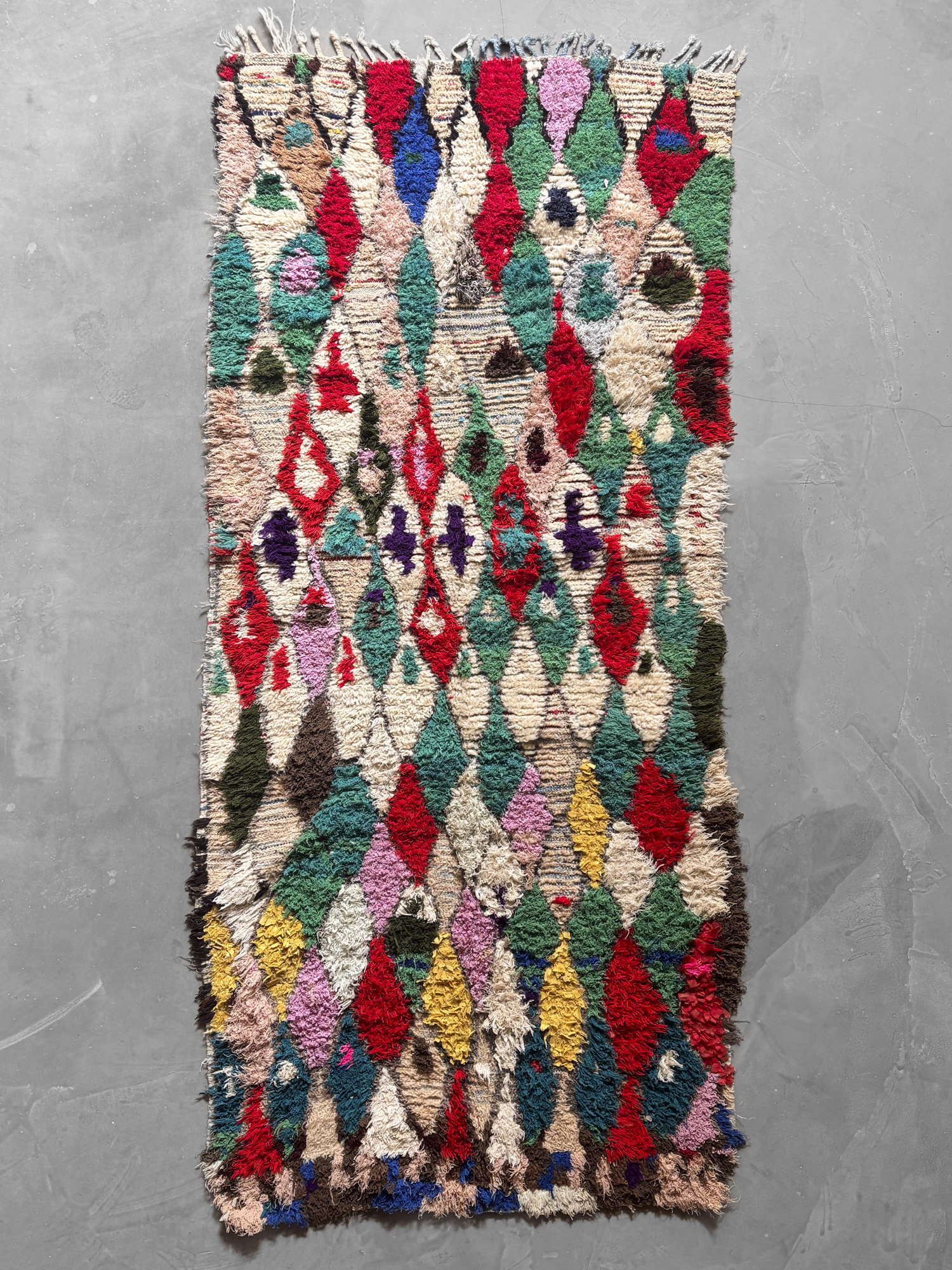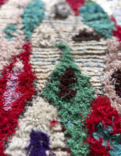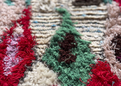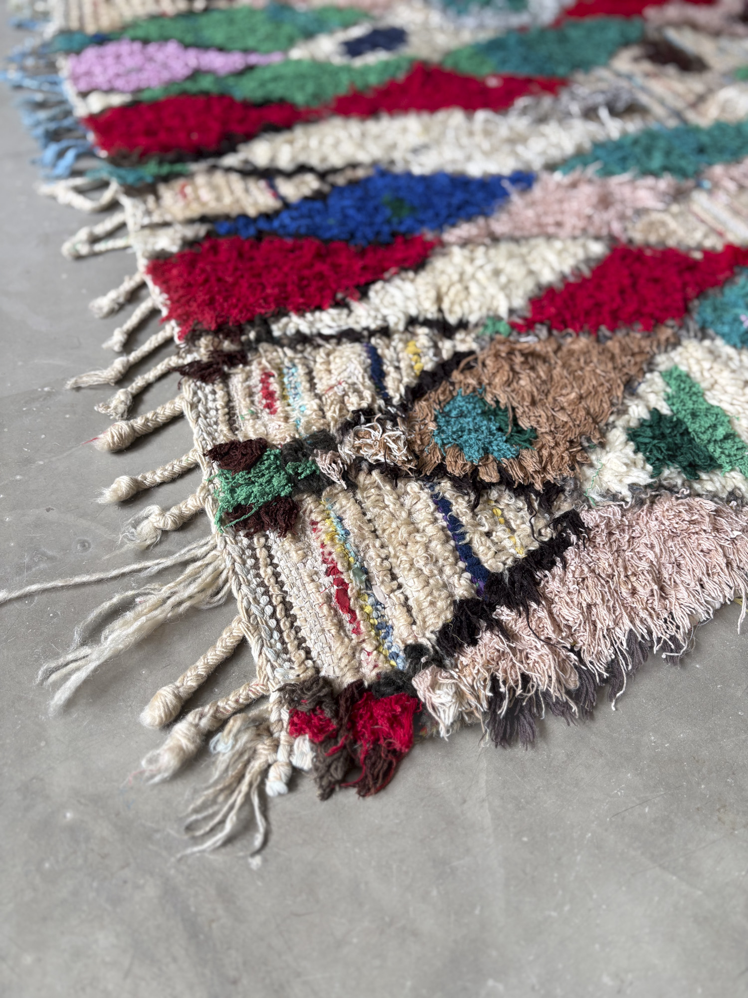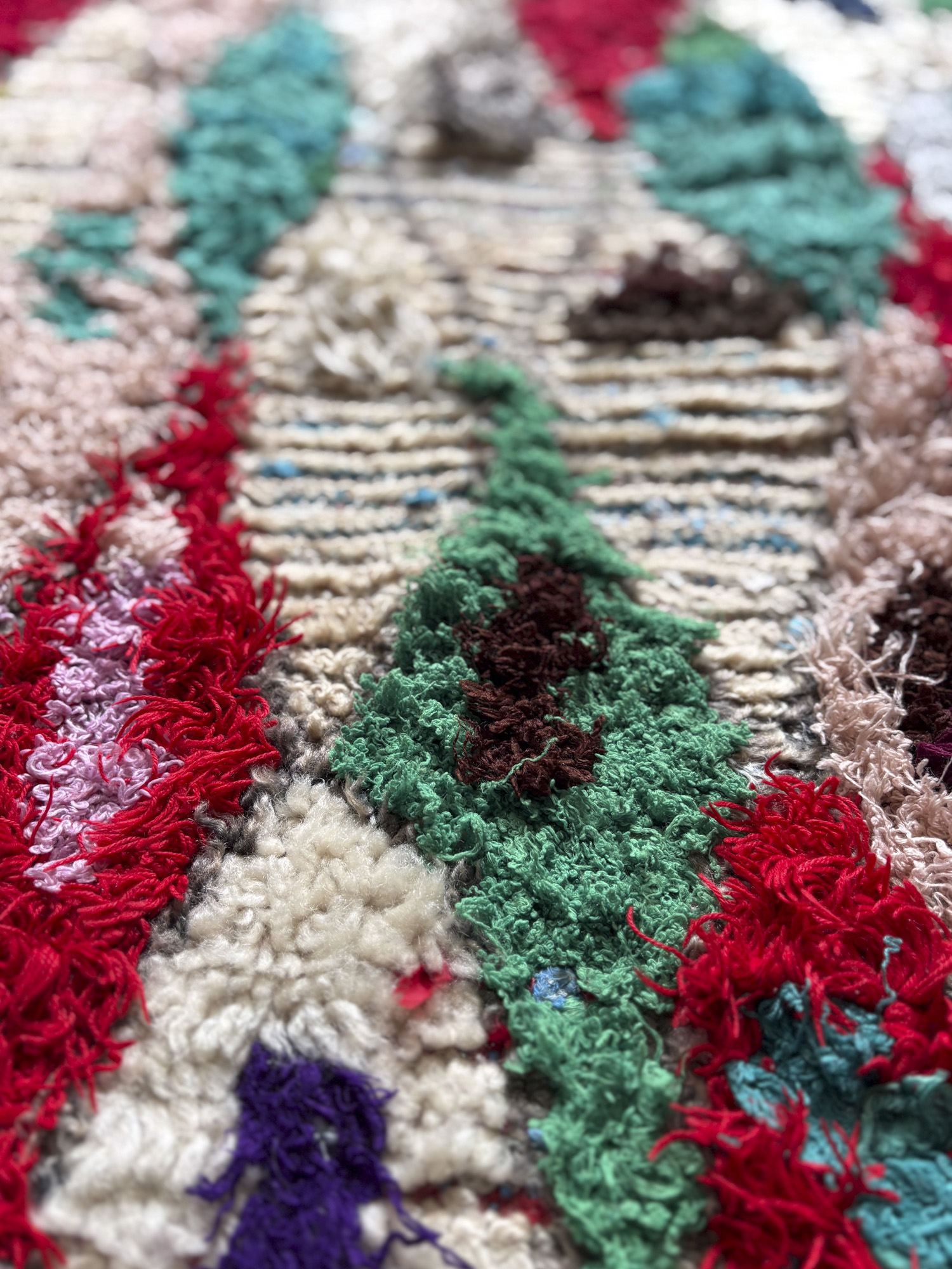 Esta alfombra está hecha a mano y es una pieza vintage, por lo que puede presentar irregularidades propias de su elaboración y del paso del tiempo. Las variaciones en el tejido, el grosor de la fibra o el color forman parte de su naturaleza artesanal y no deben considerarse defectos.