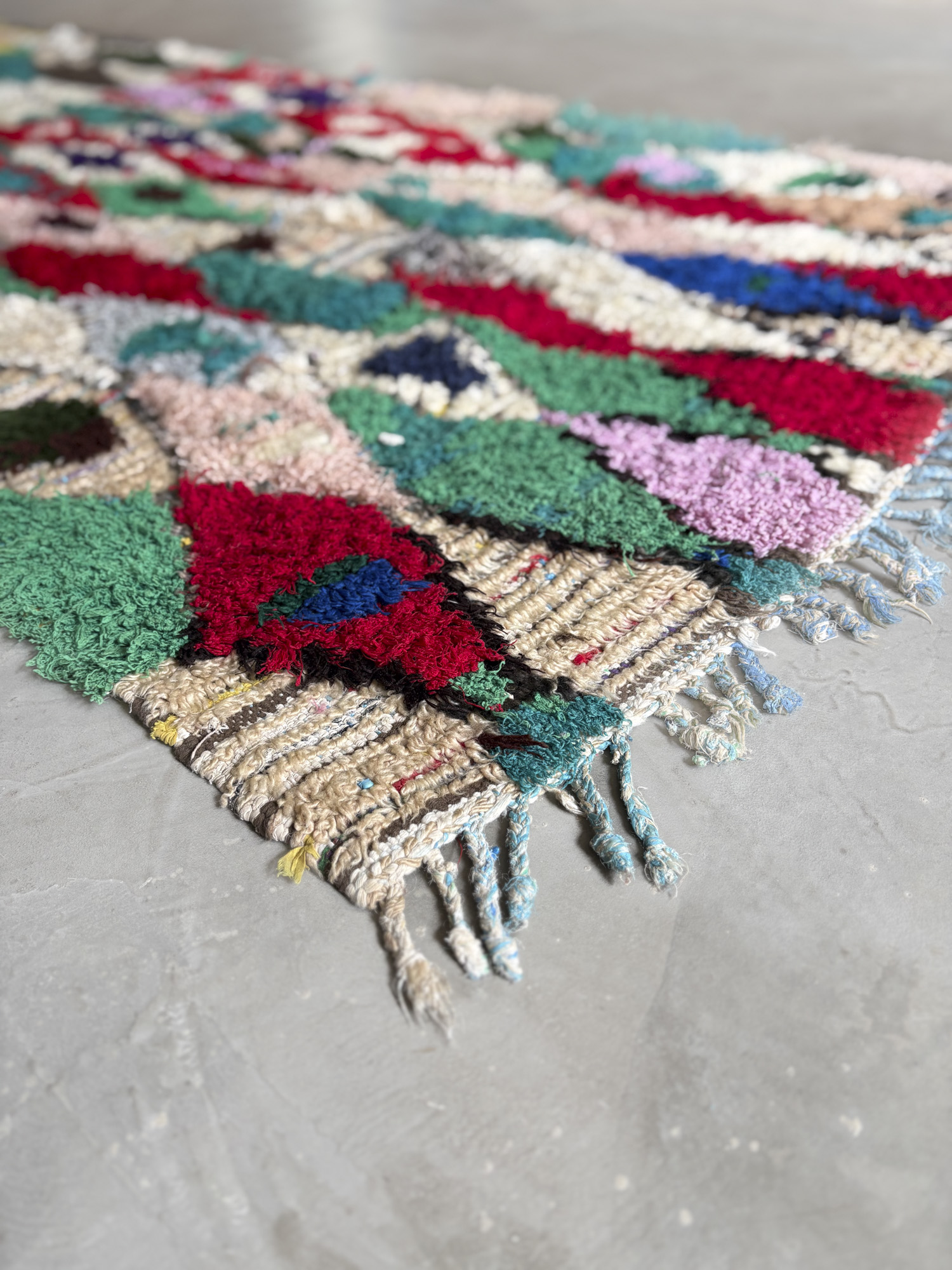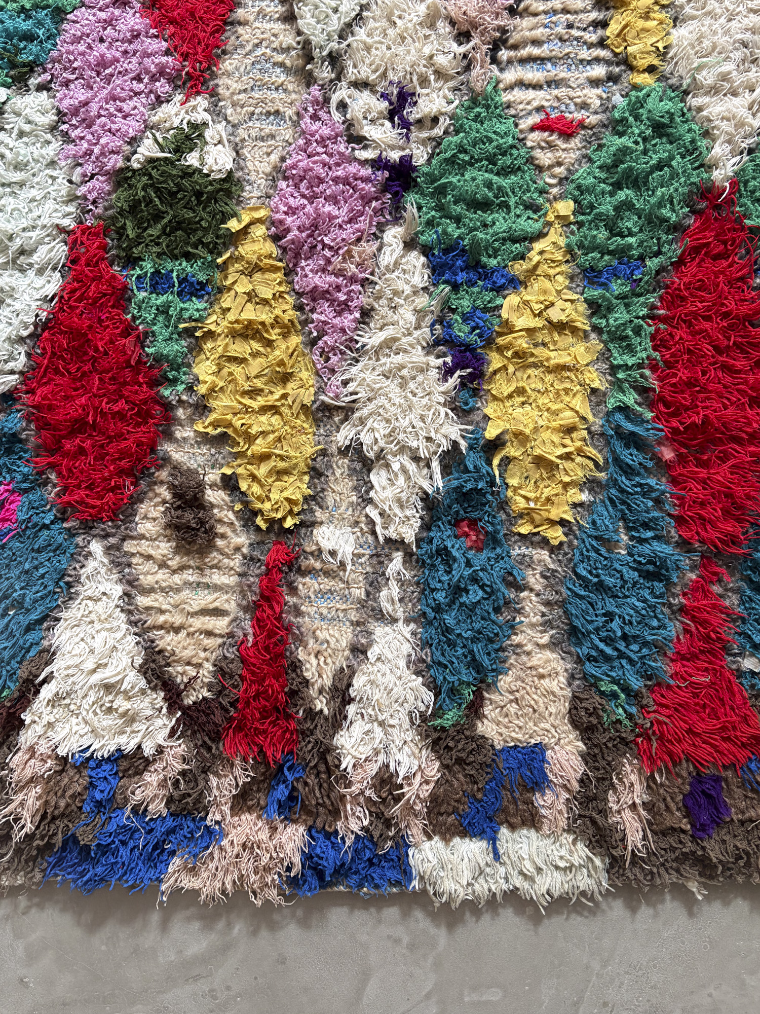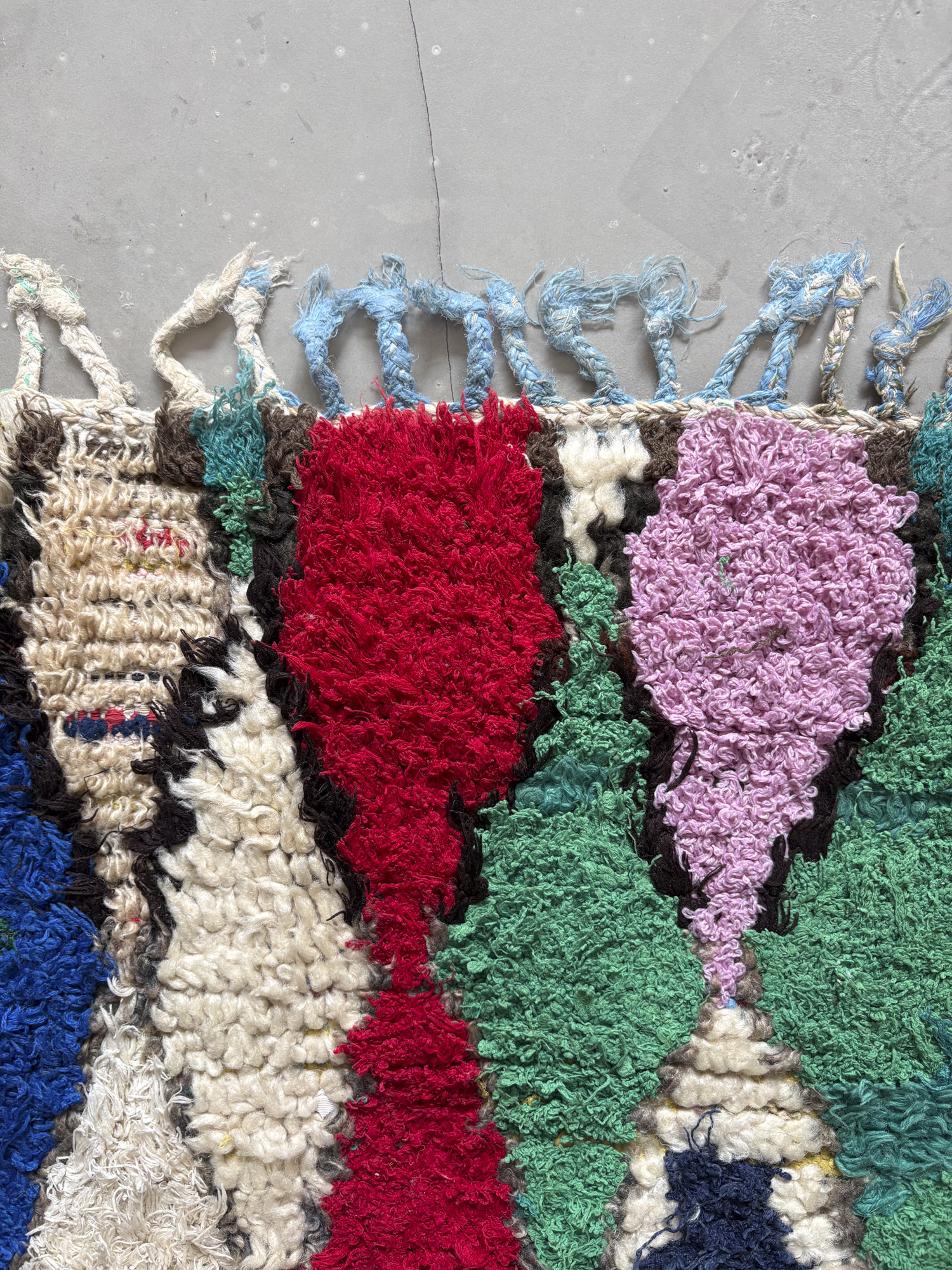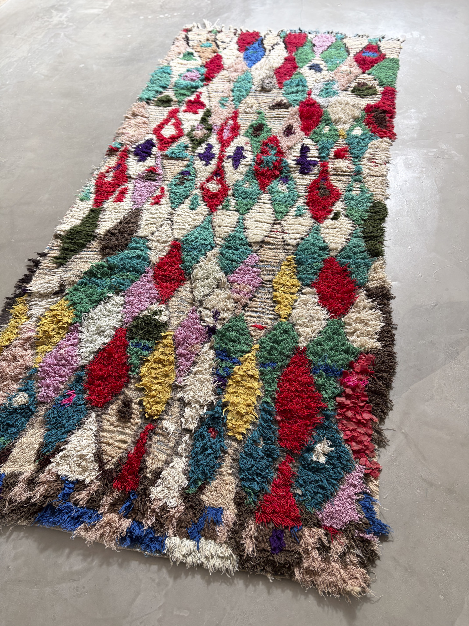 Esta alfombra está hecha a mano y es una pieza vintage, por lo que puede presentar irregularidades propias de su elaboración y del paso del tiempo. Las variaciones en el tejido, el grosor de la fibra o el color forman parte de su naturaleza artesanal y no deben considerarse defectos.