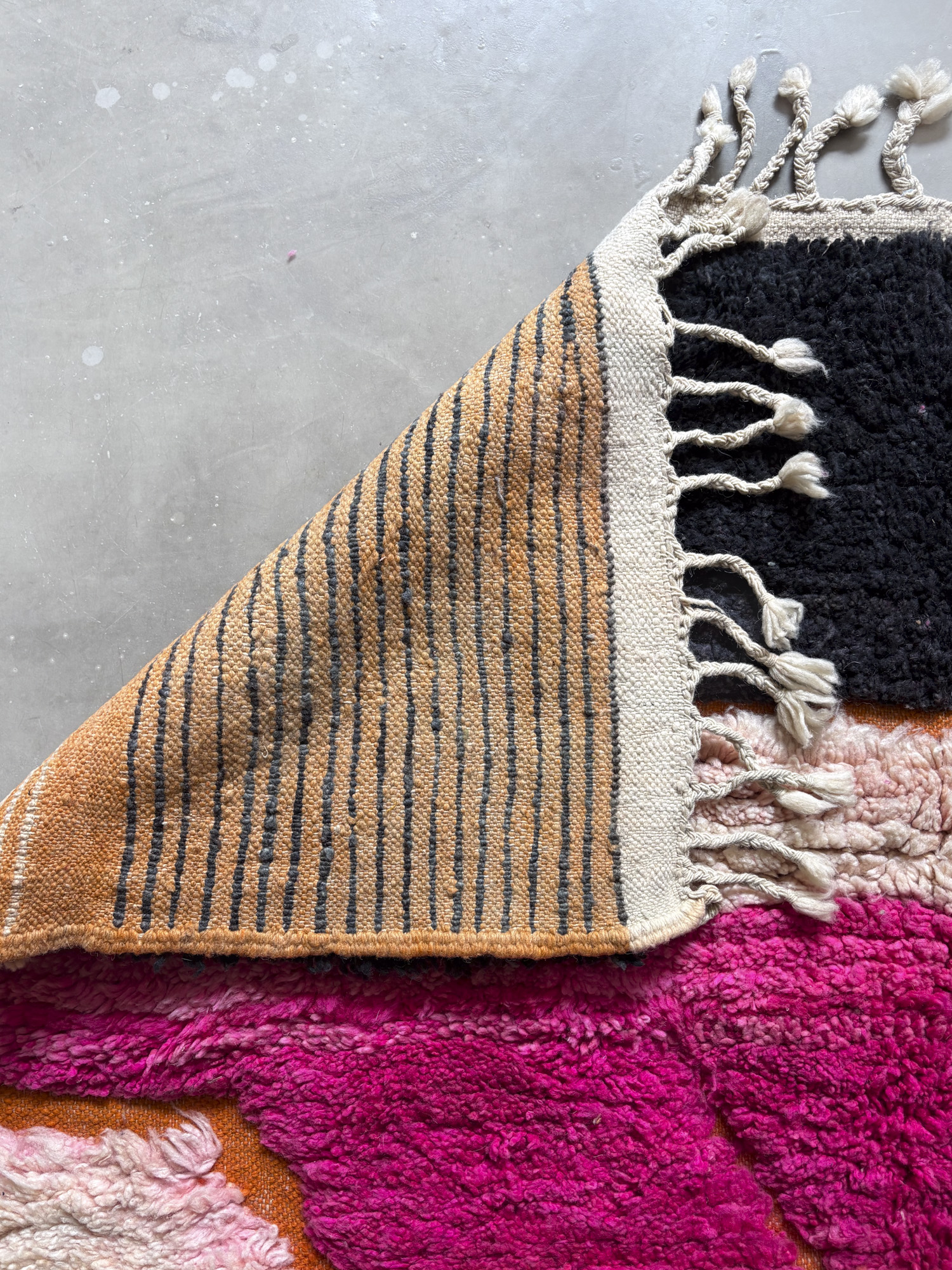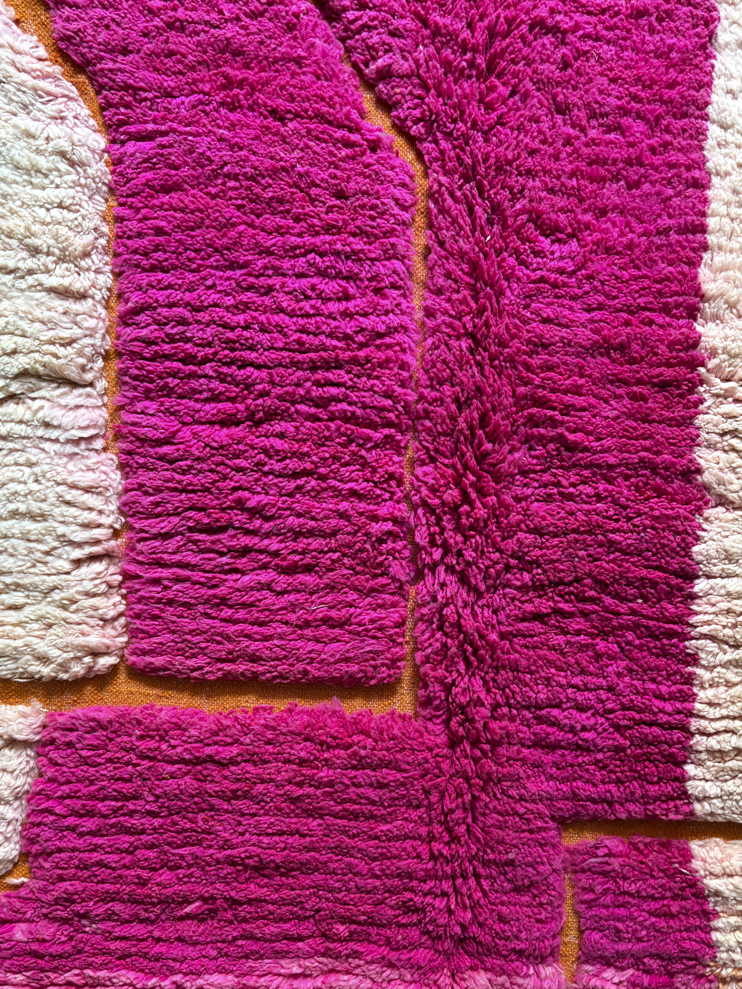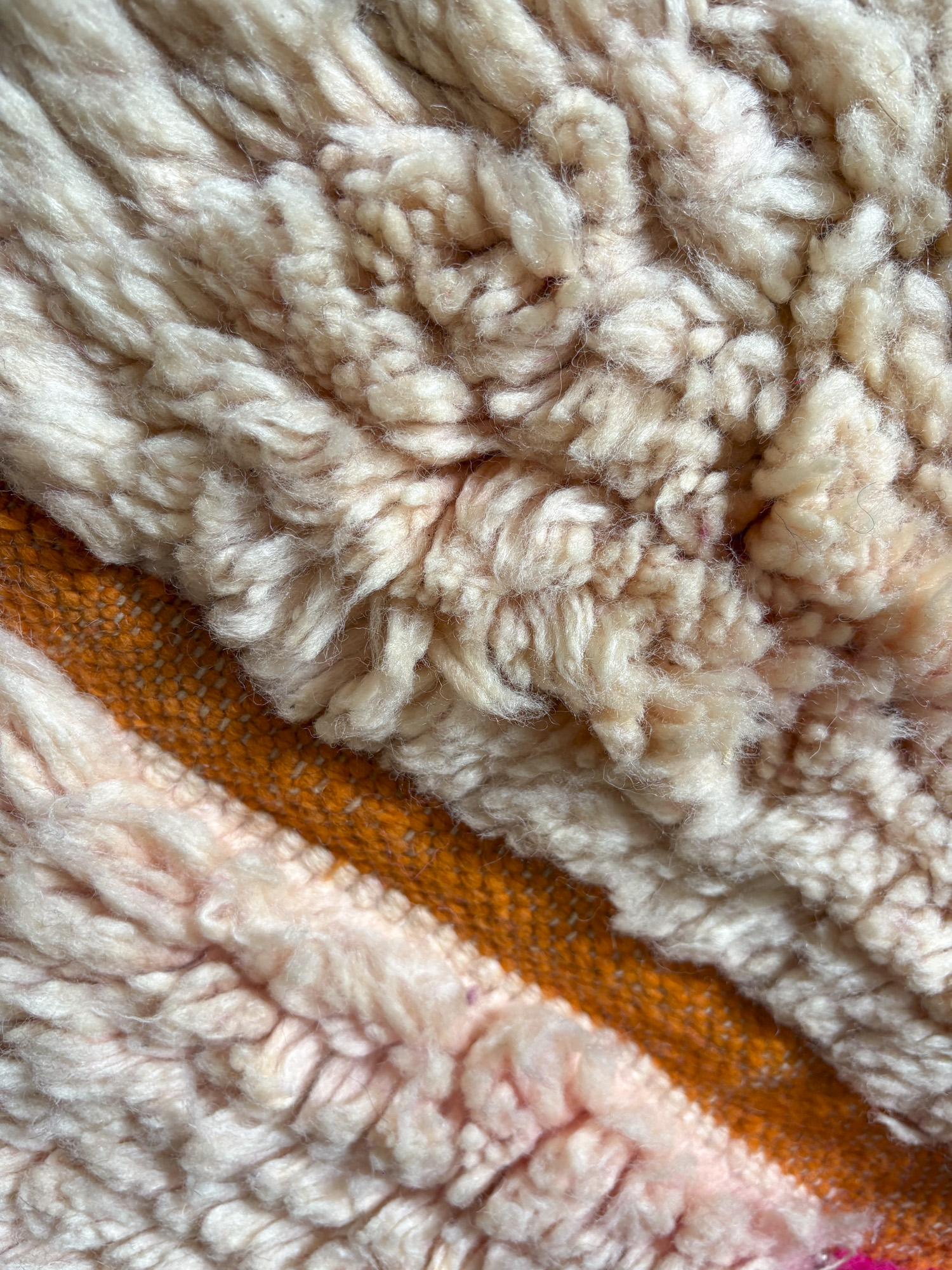 Esta alfombra está hecha a mano y es una pieza vintage, por lo que puede presentar irregularidades propias de su elaboración y del paso del tiempo. Las variaciones en el tejido, el grosor de la fibra o el color forman parte de su naturaleza artesanal y no deben considerarse defectos.