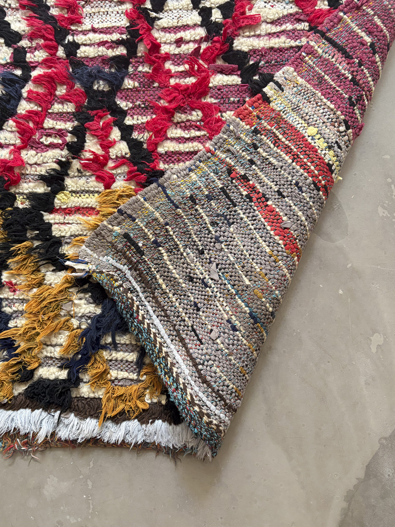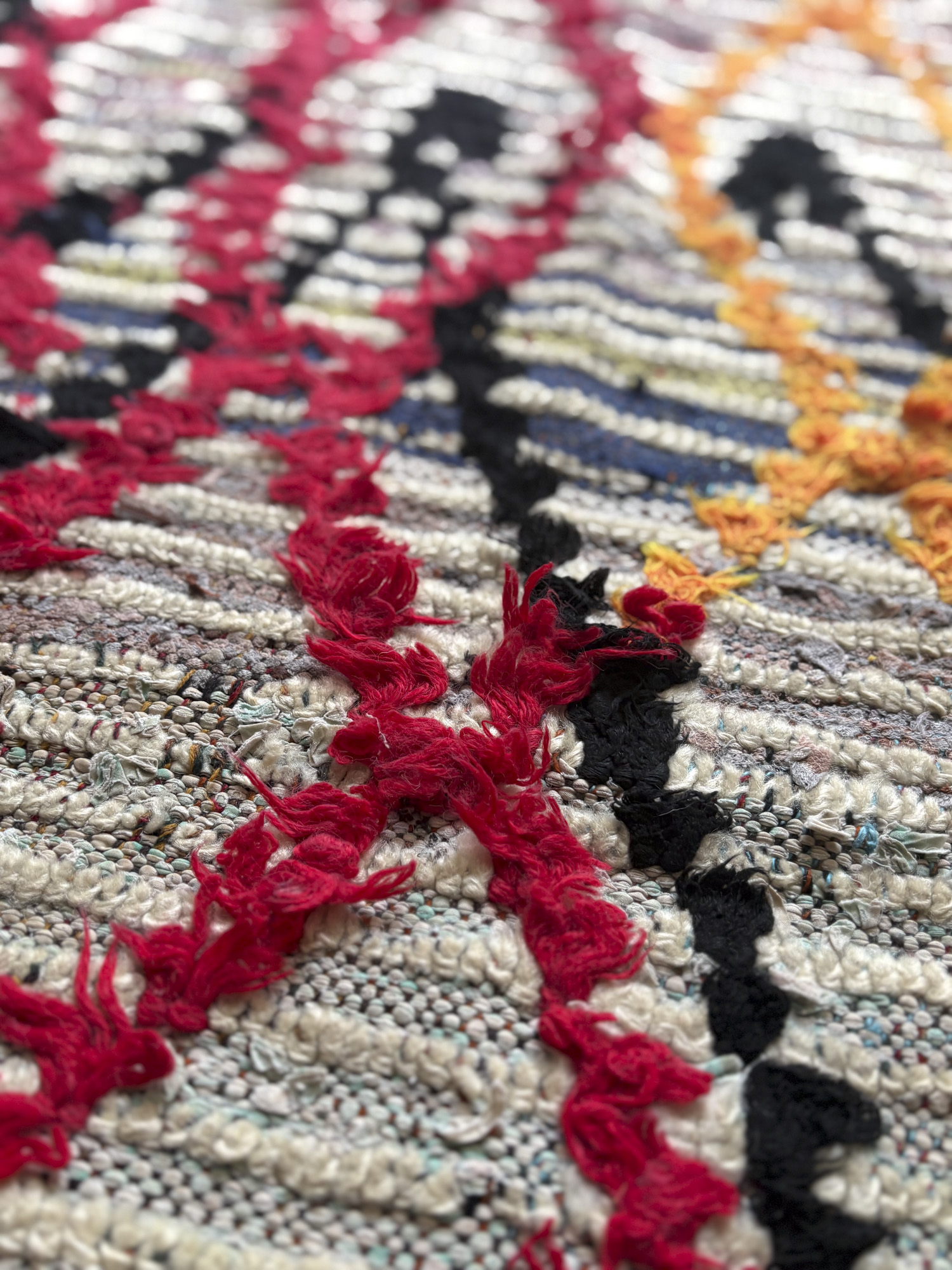 Esta alfombra está hecha a mano y es una pieza vintage, por lo que puede presentar irregularidades propias de su elaboración y del paso del tiempo. Las variaciones en el tejido, el grosor de la fibra o el color forman parte de su naturaleza artesanal y no deben considerarse defectos.