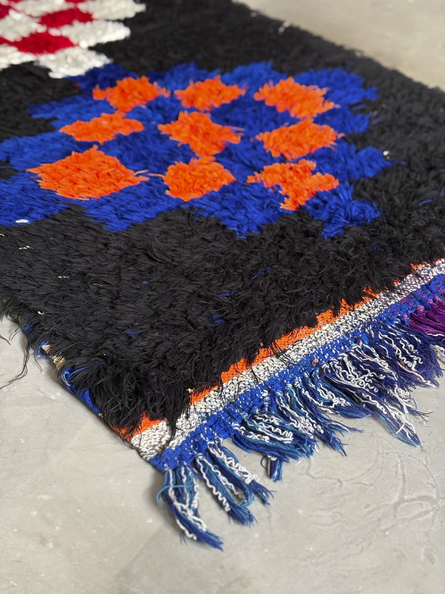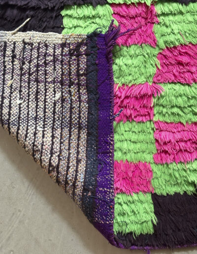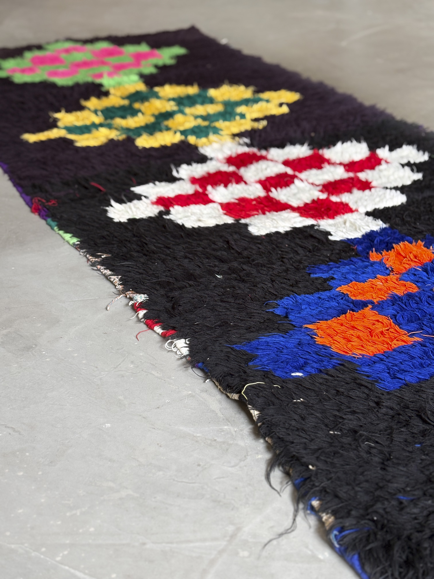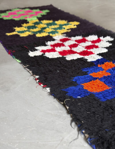 Esta alfombra está hecha a mano y es una pieza vintage, por lo que puede presentar irregularidades propias de su elaboración y del paso del tiempo. Las variaciones en el tejido, el grosor de la fibra o el color forman parte de su naturaleza artesanal y no deben considerarse defectos.