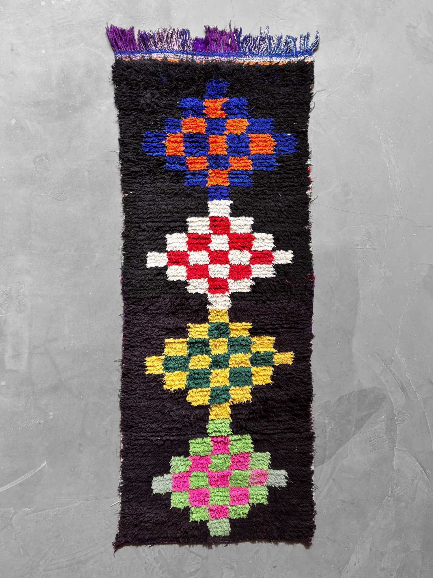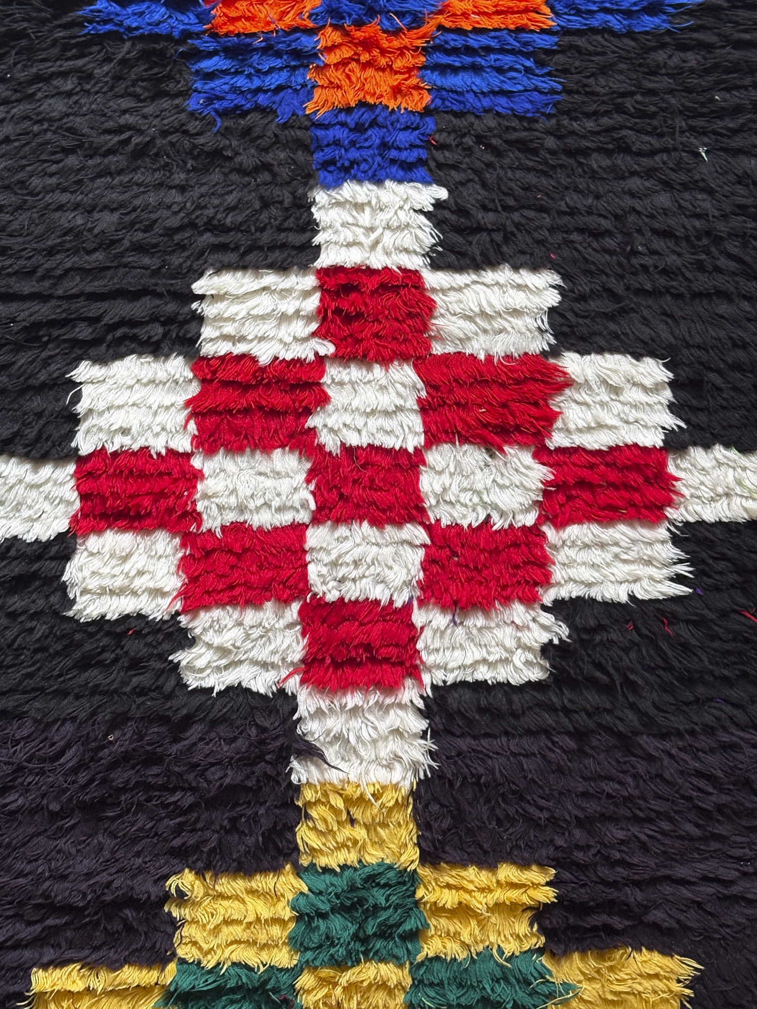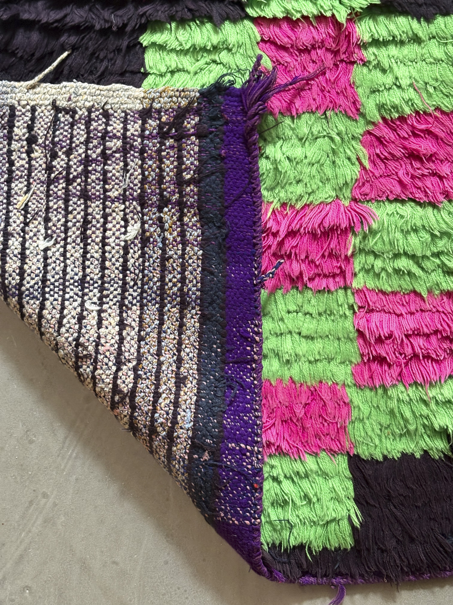Esta alfombra está hecha a mano y es una pieza vintage, por lo que puede presentar irregularidades propias de su elaboración y del paso del tiempo. Las variaciones en el tejido, el grosor de la fibra o el color forman parte de su naturaleza artesanal y no deben considerarse defectos.